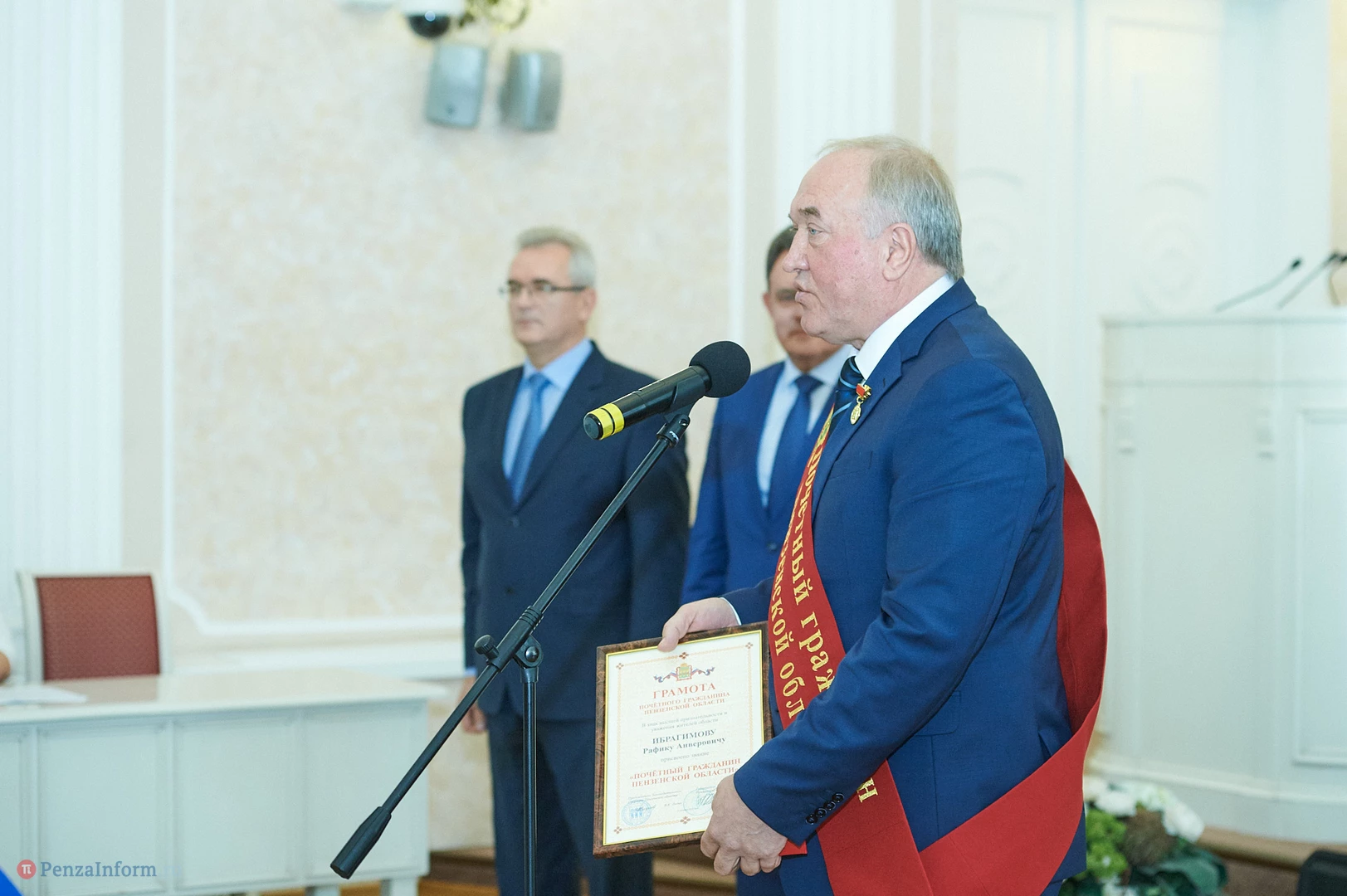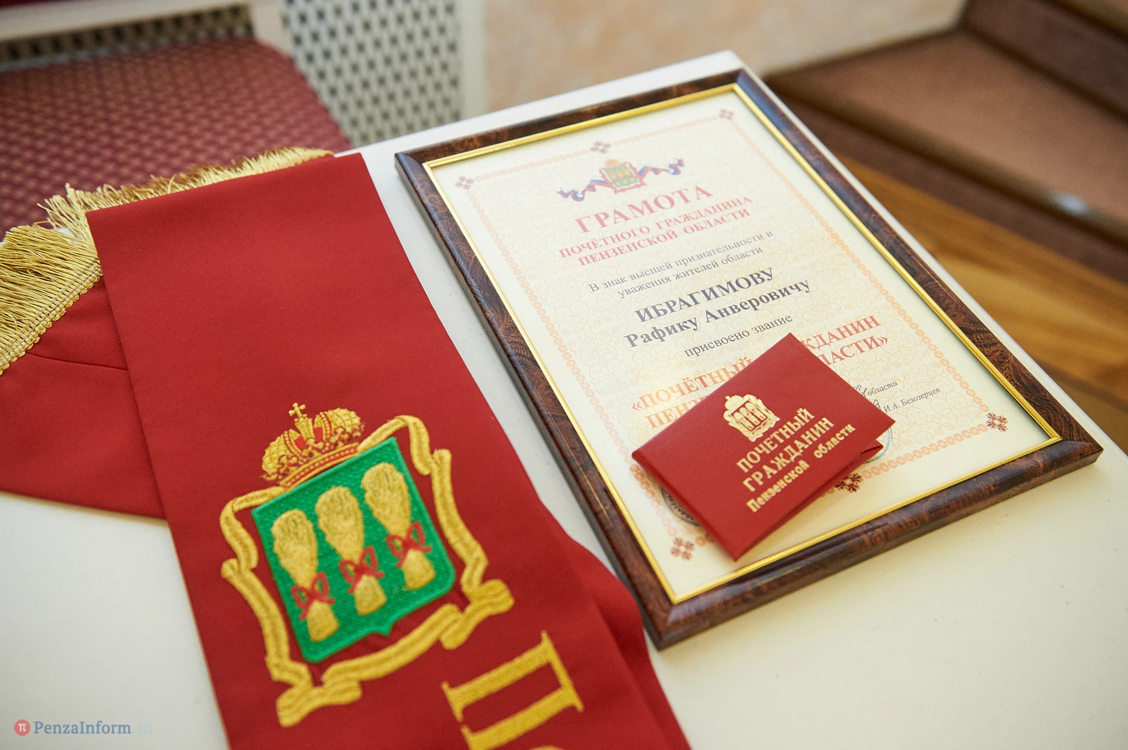 Губернатор Пензенской области Иван Белозерцев вручил Рафику Анверовичу Ибрагимову регалии почетного гражданина Пензенской области: красную наградную ленту, удостоверение и почетный знак. Ибрагимов как никто другой заслуживает этого почетного звания: в буквальном смысле слова он, его семья и его компания строят город. А работа Рафика Анверовича по праву стала визитной карточкой Пензы.