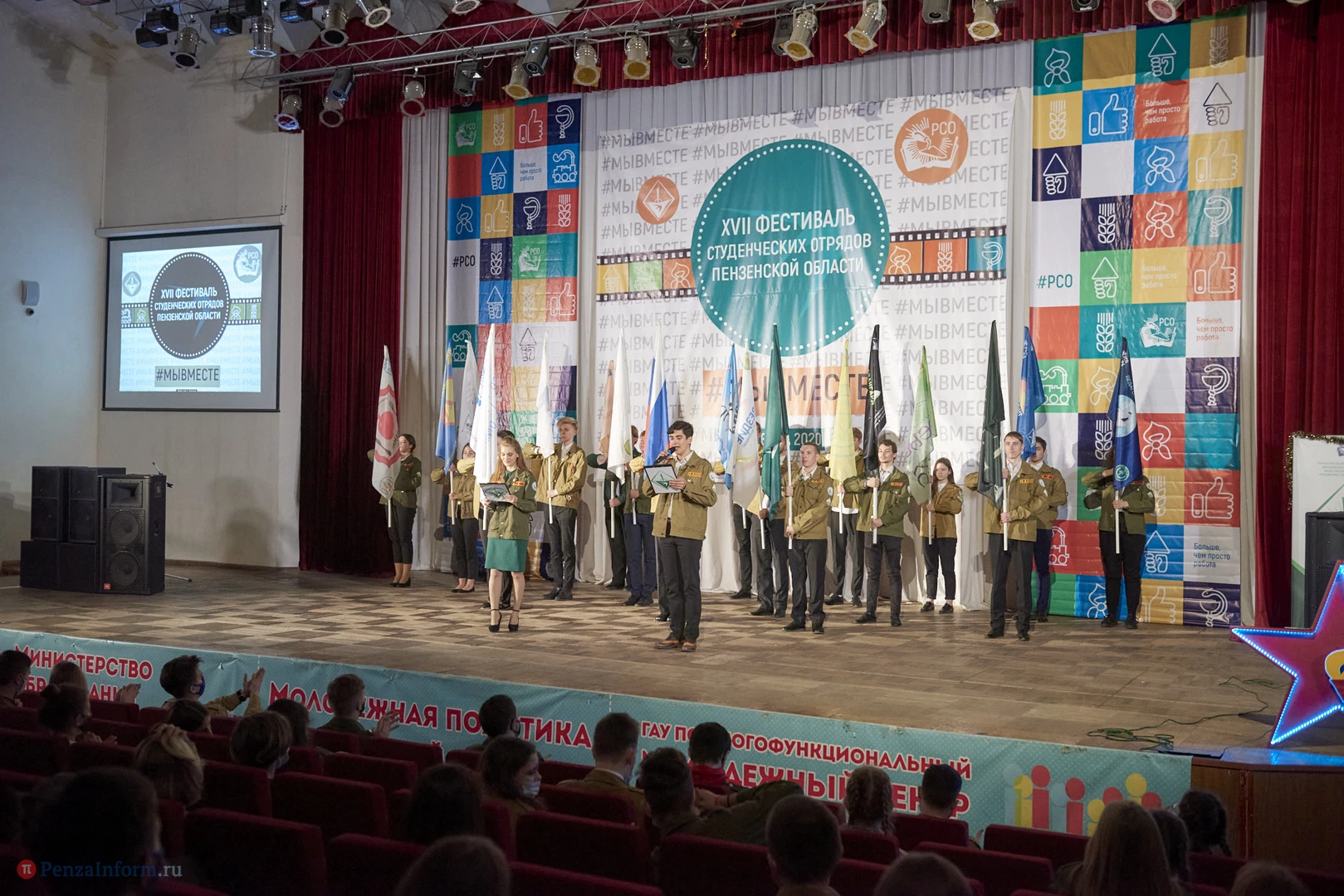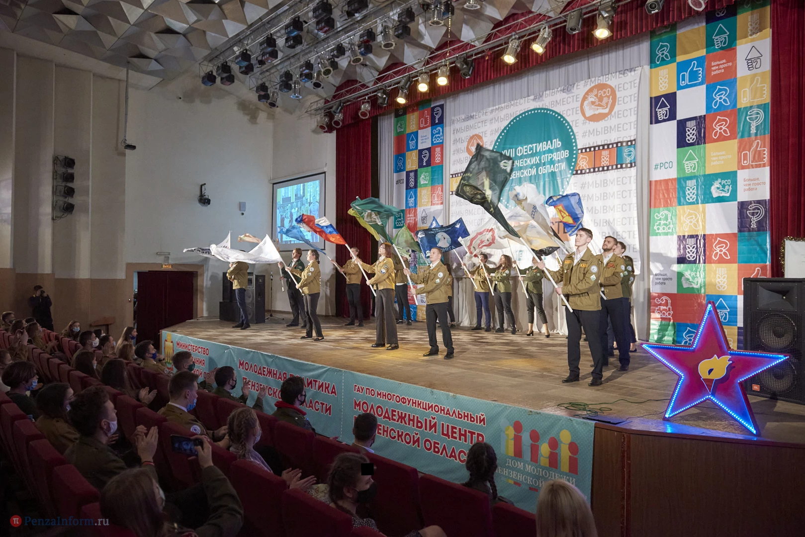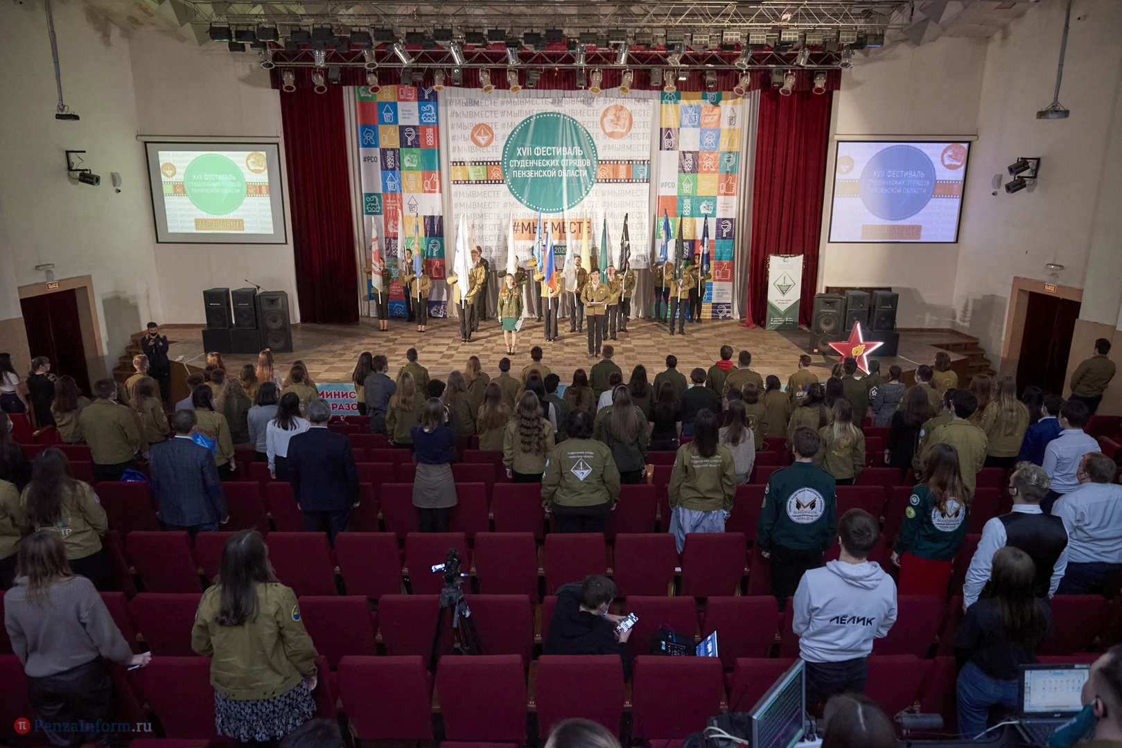 В Доме молодежи прошел XVII фестиваль студенческих отрядов Пензенской области. В связи со сложной эпидемической обстановкой большинство бойцов наблюдали за мероприятием в прямом эфире. Перед началом стуленты провели спевку, прозвучали отрядные песни. На торжественной части были подведены итоги уходящего года.