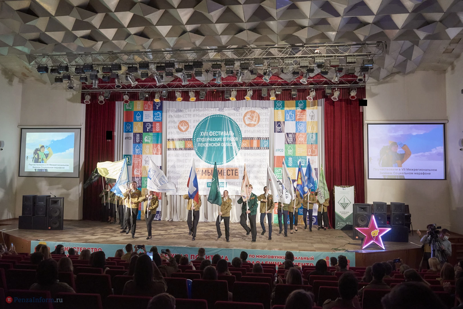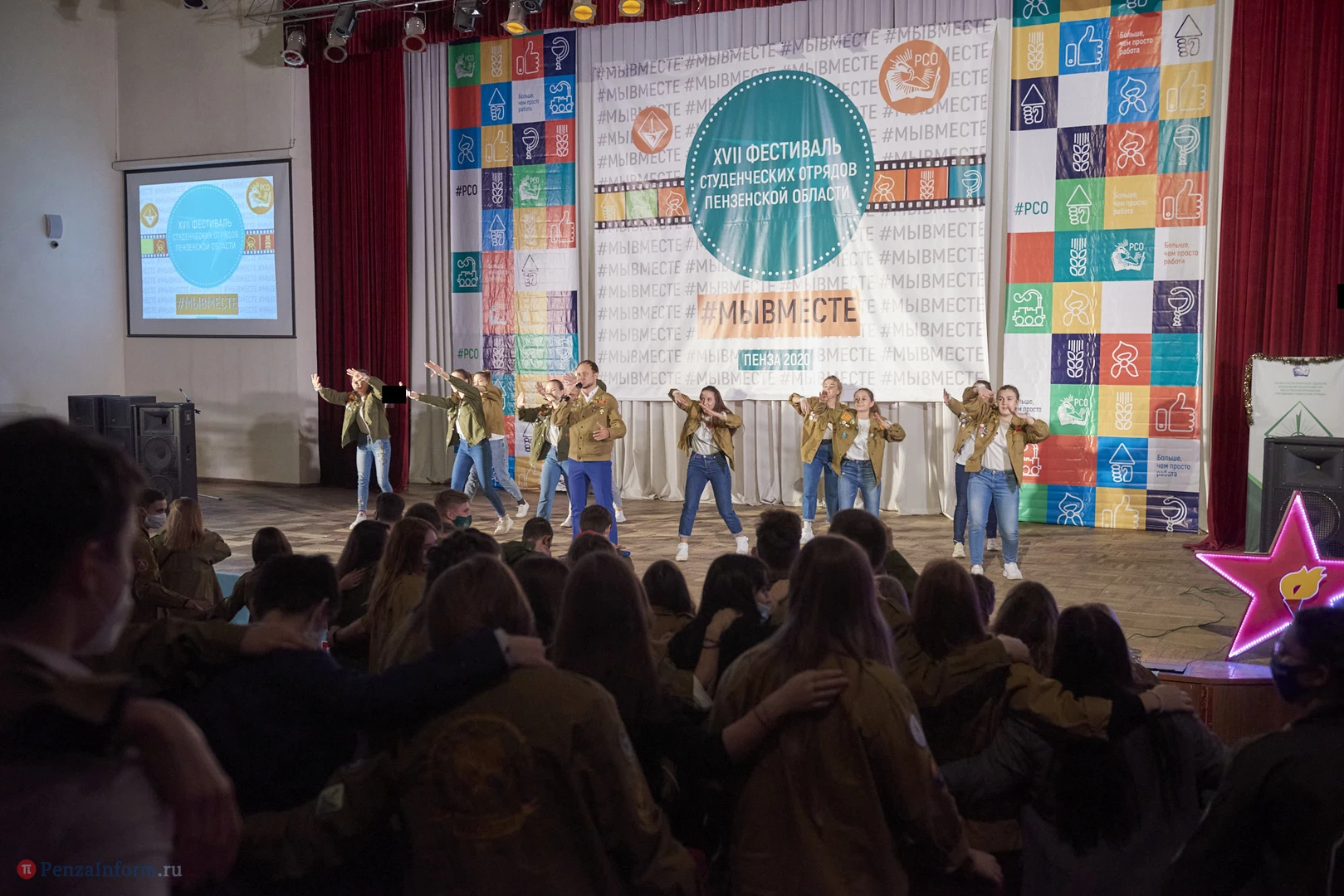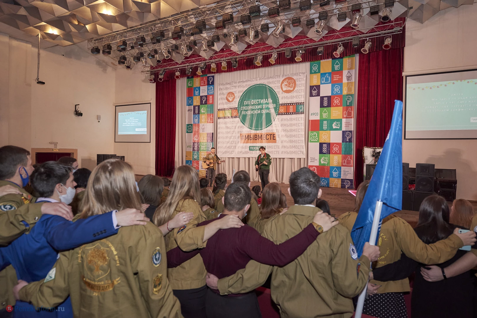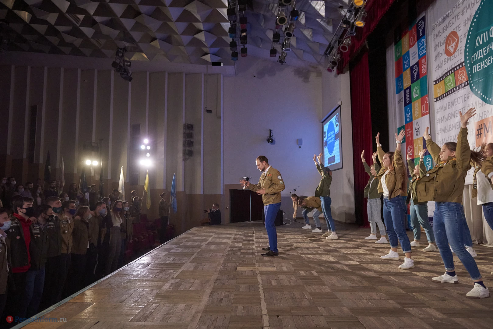 В Доме молодежи прошел XVII фестиваль студенческих отрядов Пензенской области. В связи со сложной эпидемической обстановкой большинство бойцов наблюдали за мероприятием в прямом эфире. Перед началом стуленты провели спевку, прозвучали отрядные песни. На торжественной части были подведены итоги уходящего года.