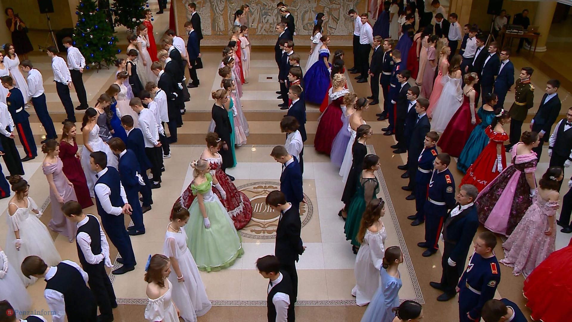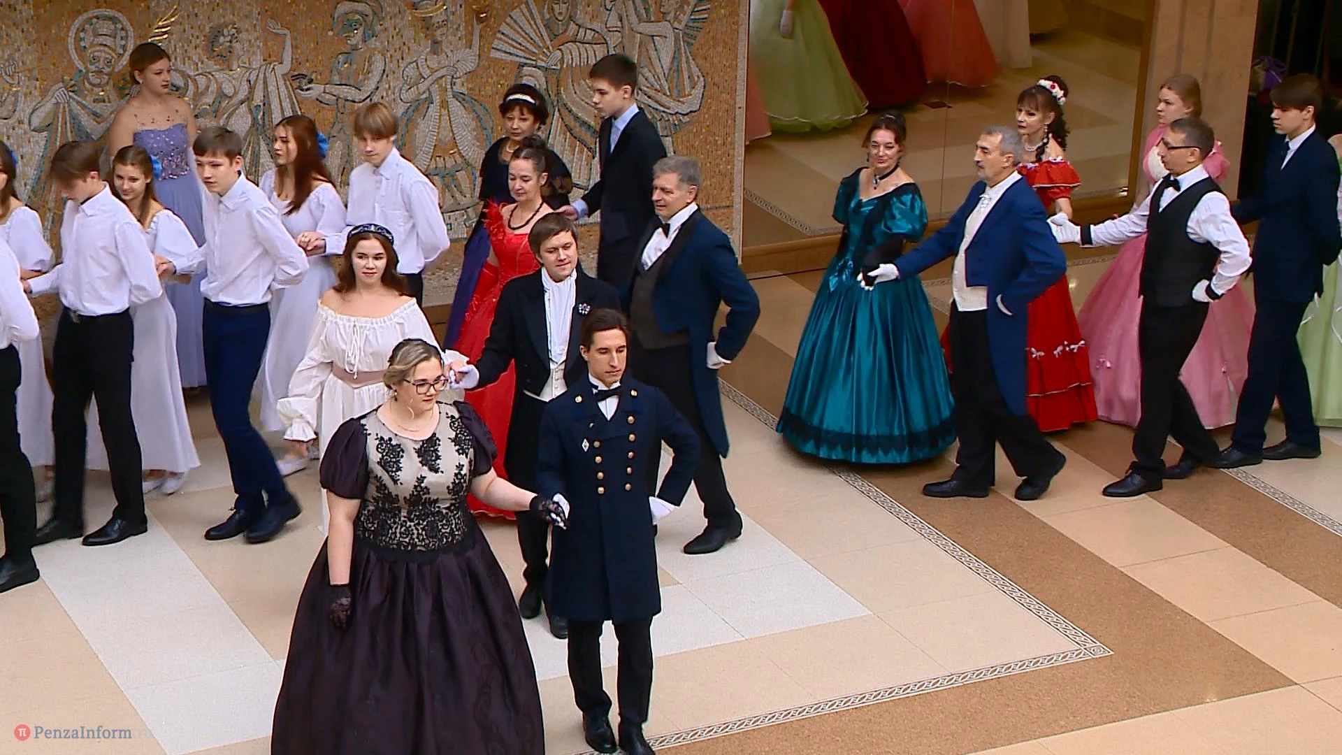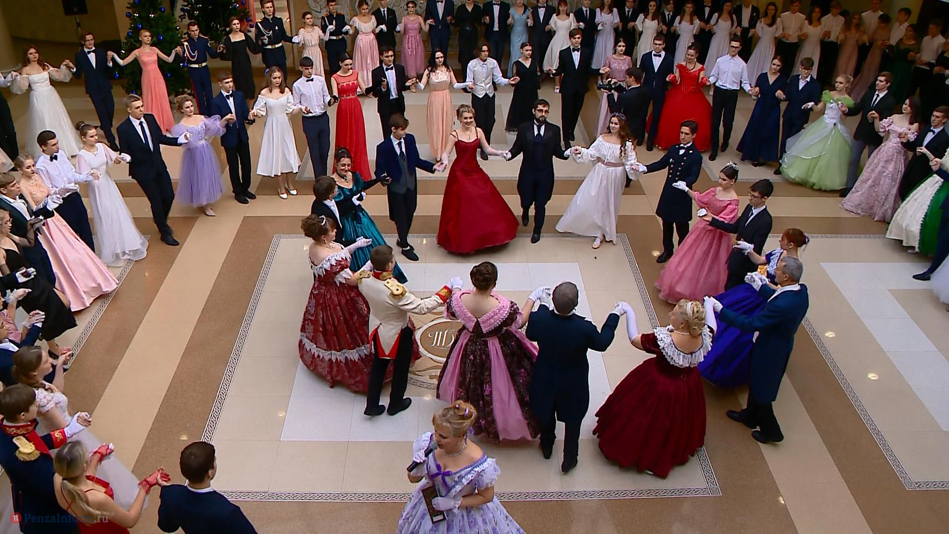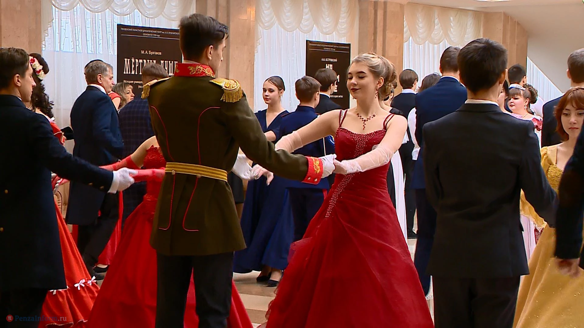 14 января в фойе областного драмтеатра в Пензе состоялся школьный рождественский бал. На мероприятие приехали пары девушек и юношей из 13 муниципальных образований. Между танцами они узнавали исторические особенности проведения таких вечеров, знакомились и общались. К барышням и кавалерам, исполнявшим полонез и другие танцы, присоединились участники студии «Комплимент».