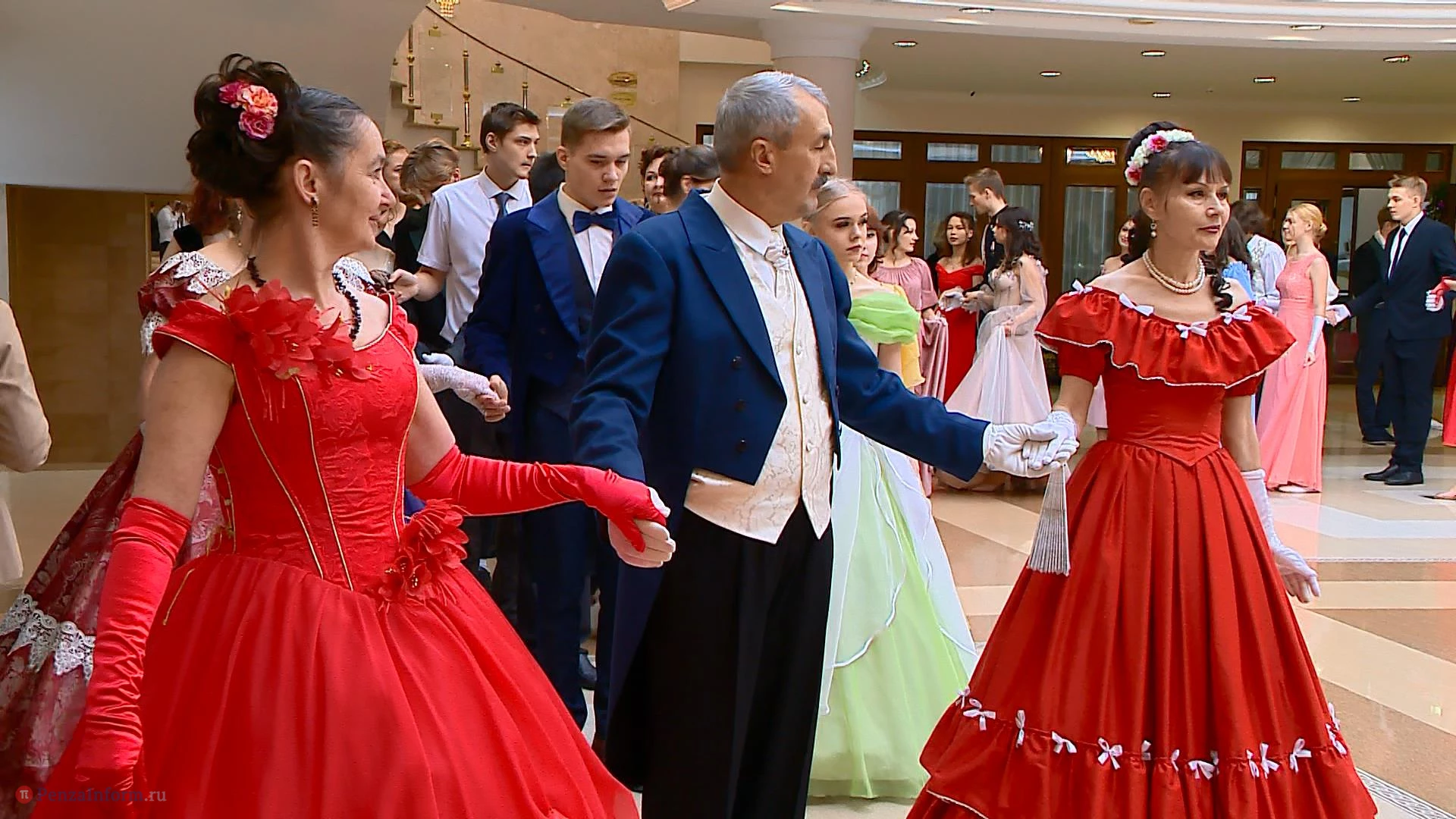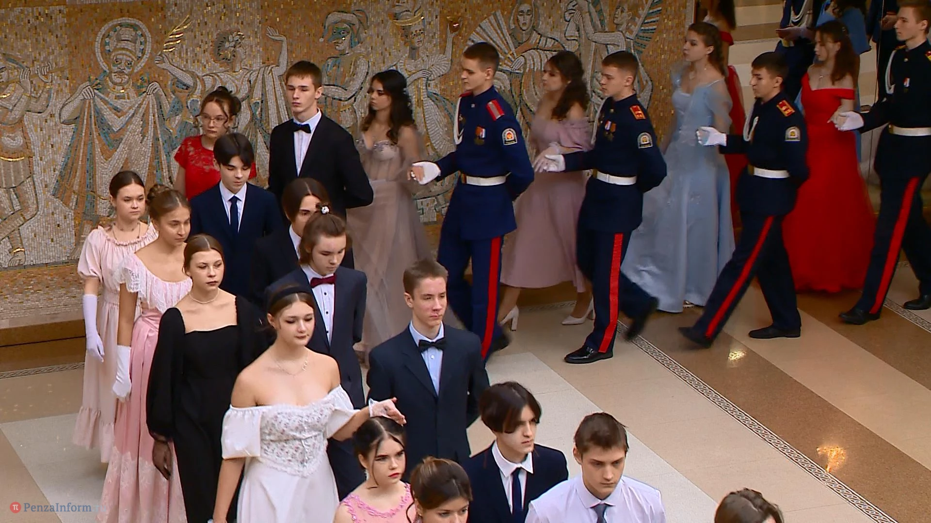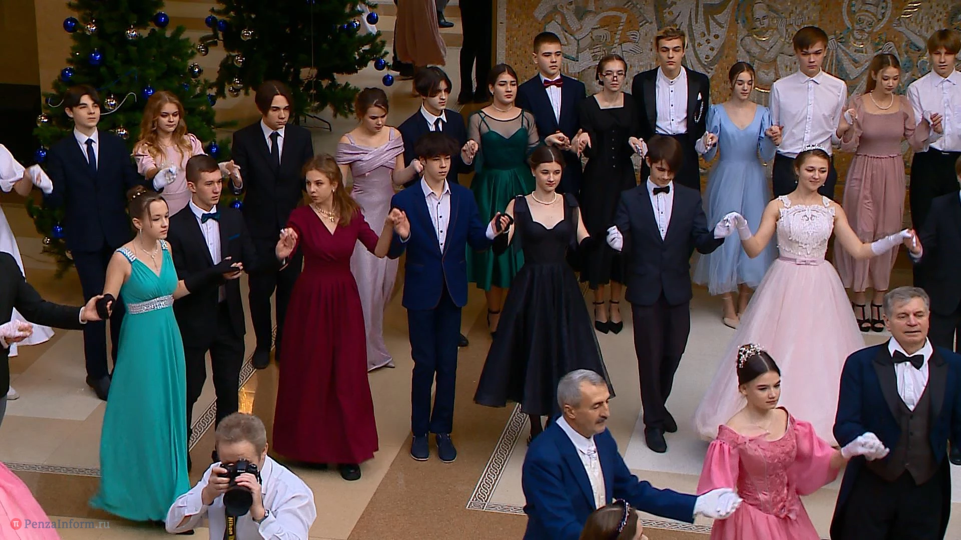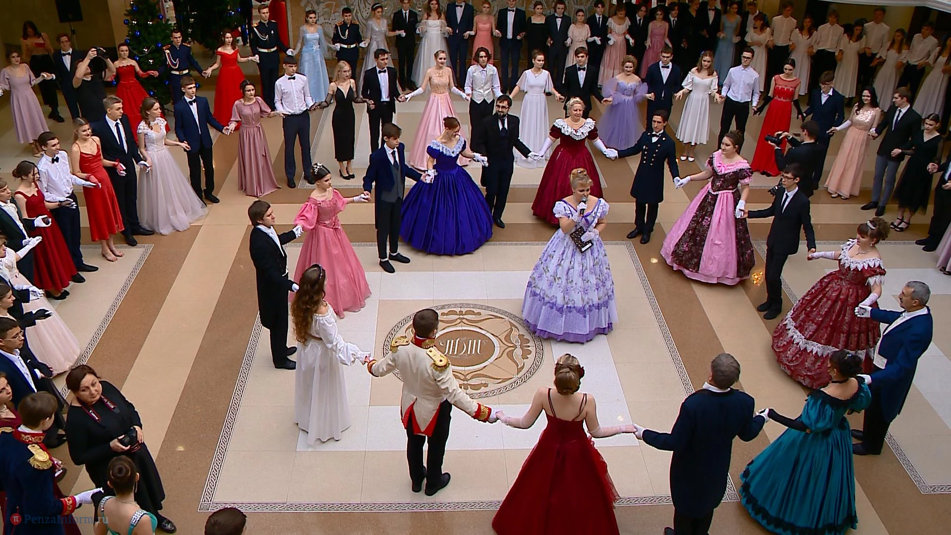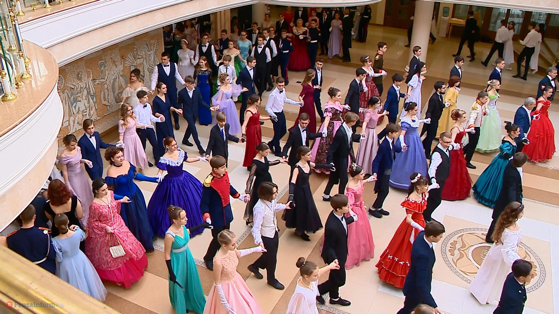 14 января в фойе областного драмтеатра в Пензе состоялся школьный рождественский бал. На мероприятие приехали пары девушек и юношей из 13 муниципальных образований. Между танцами они узнавали исторические особенности проведения таких вечеров, знакомились и общались. К барышням и кавалерам, исполнявшим полонез и другие танцы, присоединились участники студии «Комплимент».