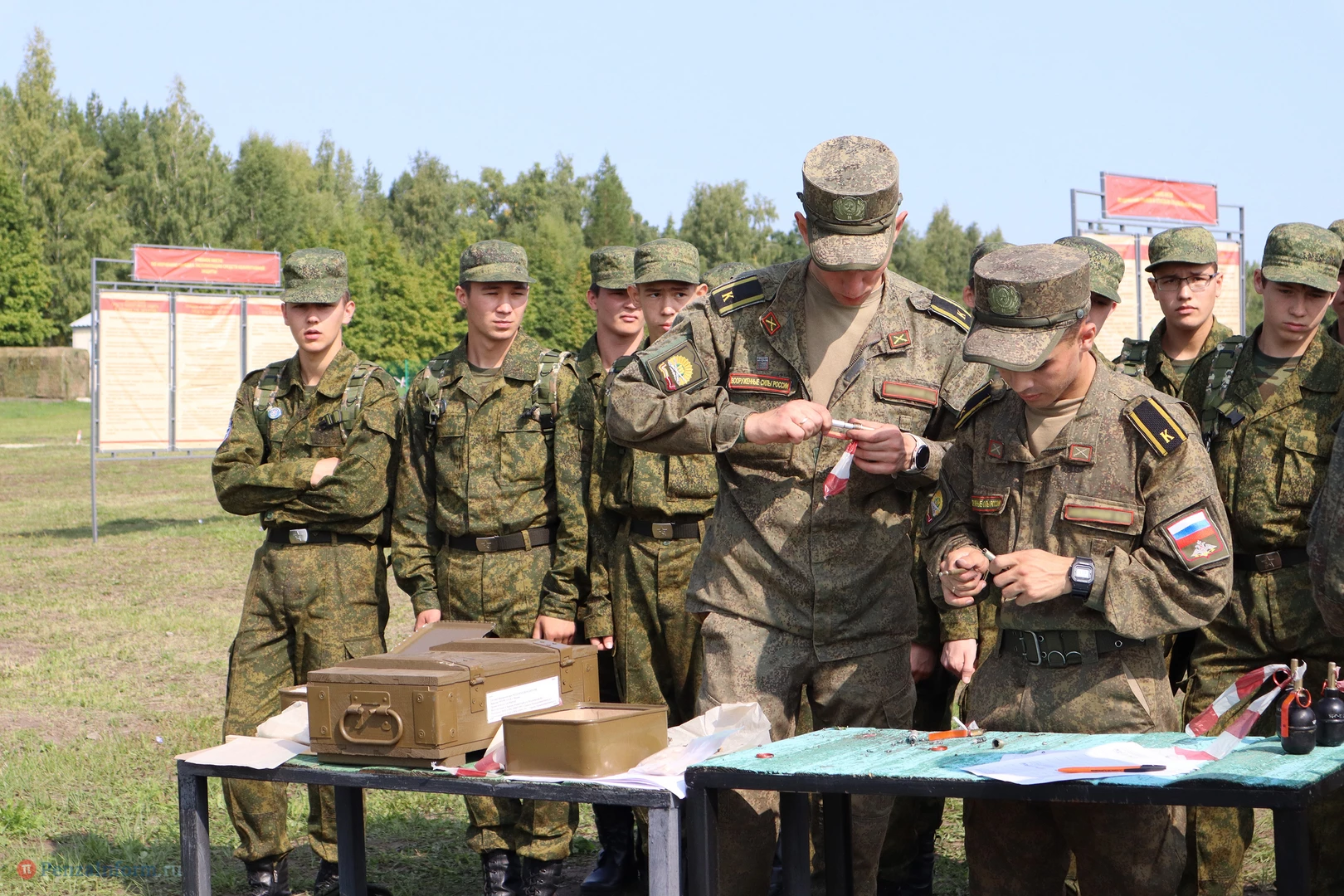 Юноши стреляли из боевого оружия, устанавливали противотанковые и противопехотные мины, метали имитационные гранаты, работали с приборами наблюдения и разведки и преодолевали «зараженный» участок местности.