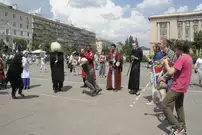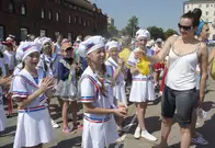 На площади Ленина в этот день собрались тысячи человек. Бело-сине-алые цвета присутствовали не только на флагах, но и на телах.