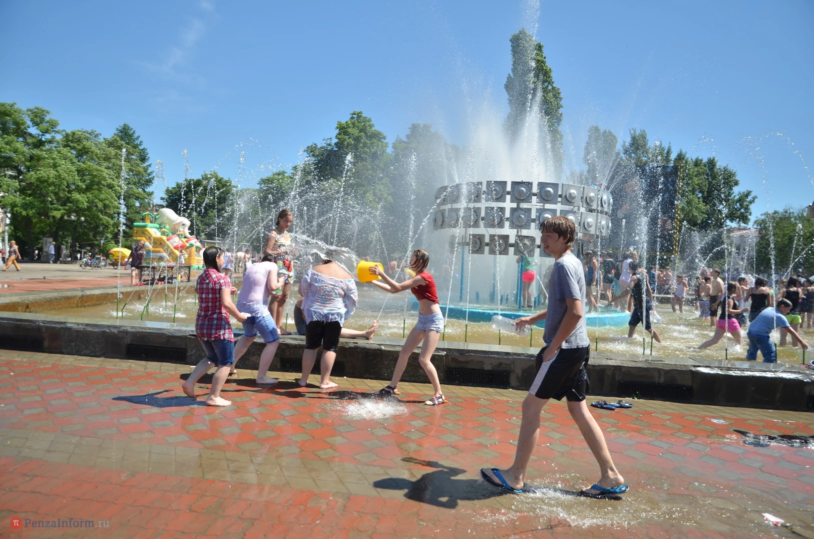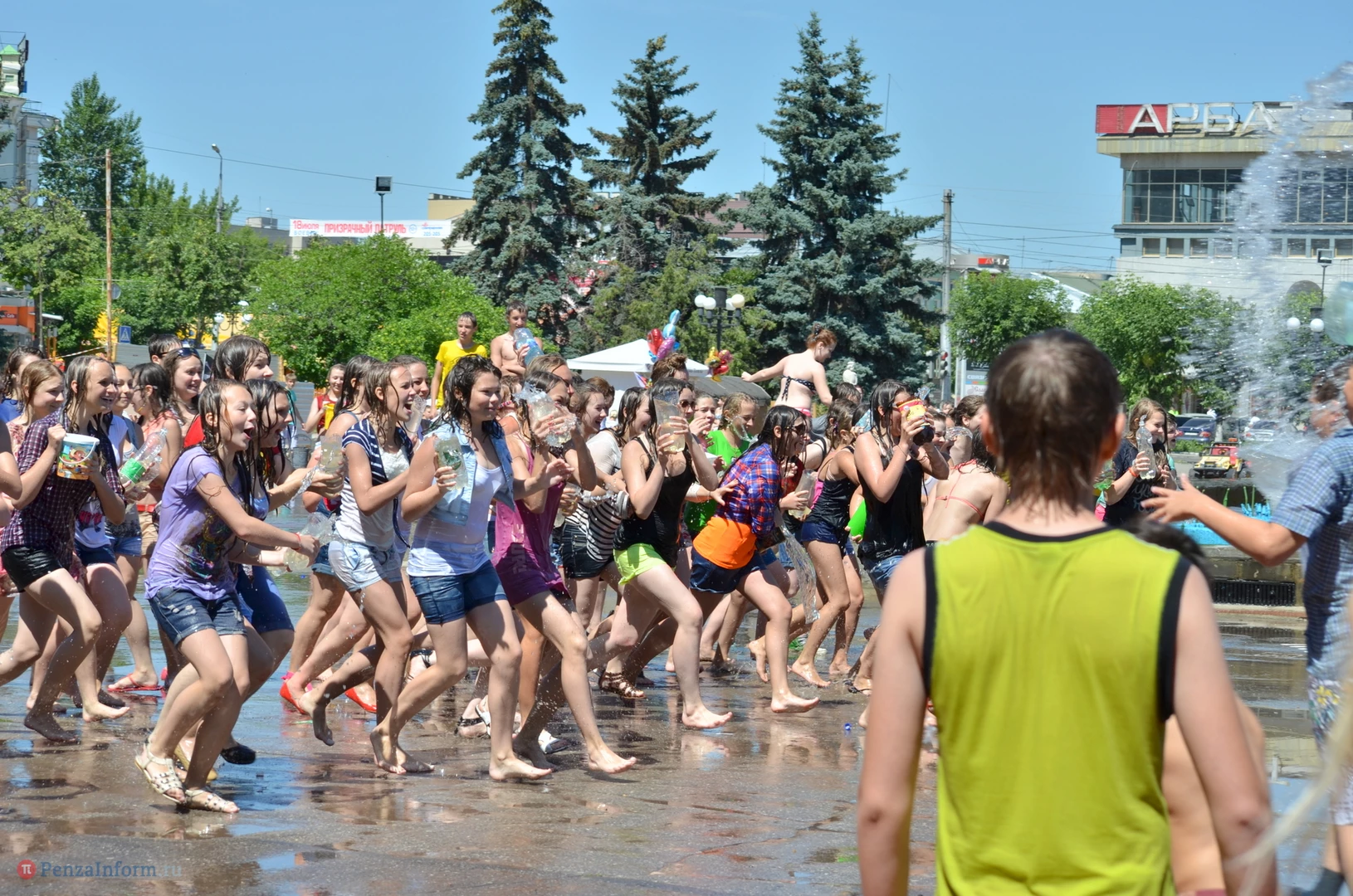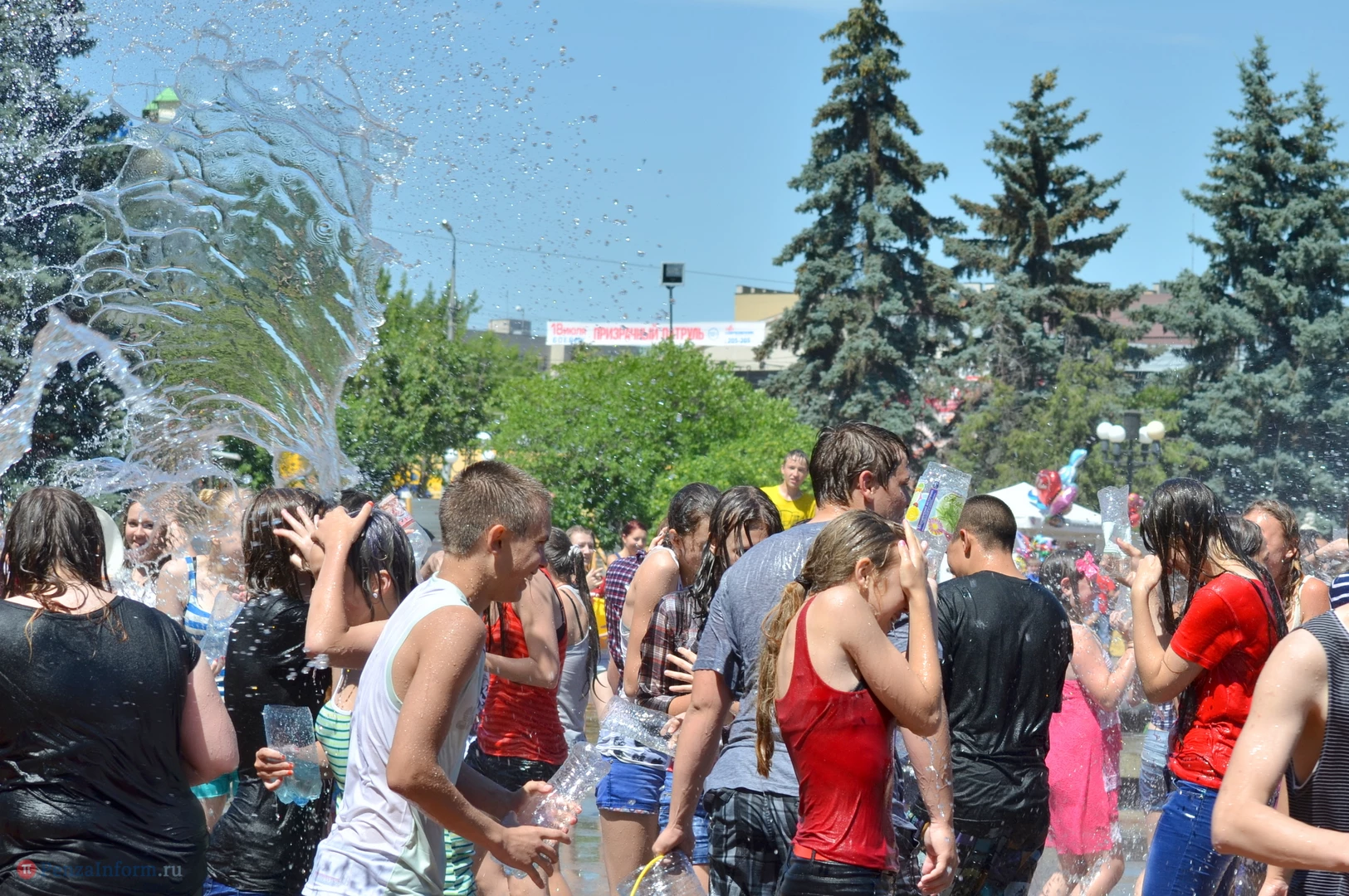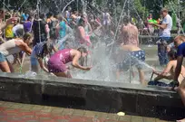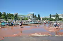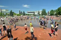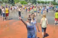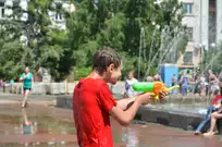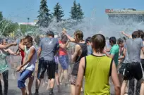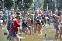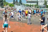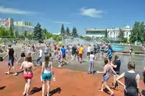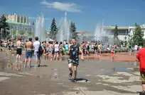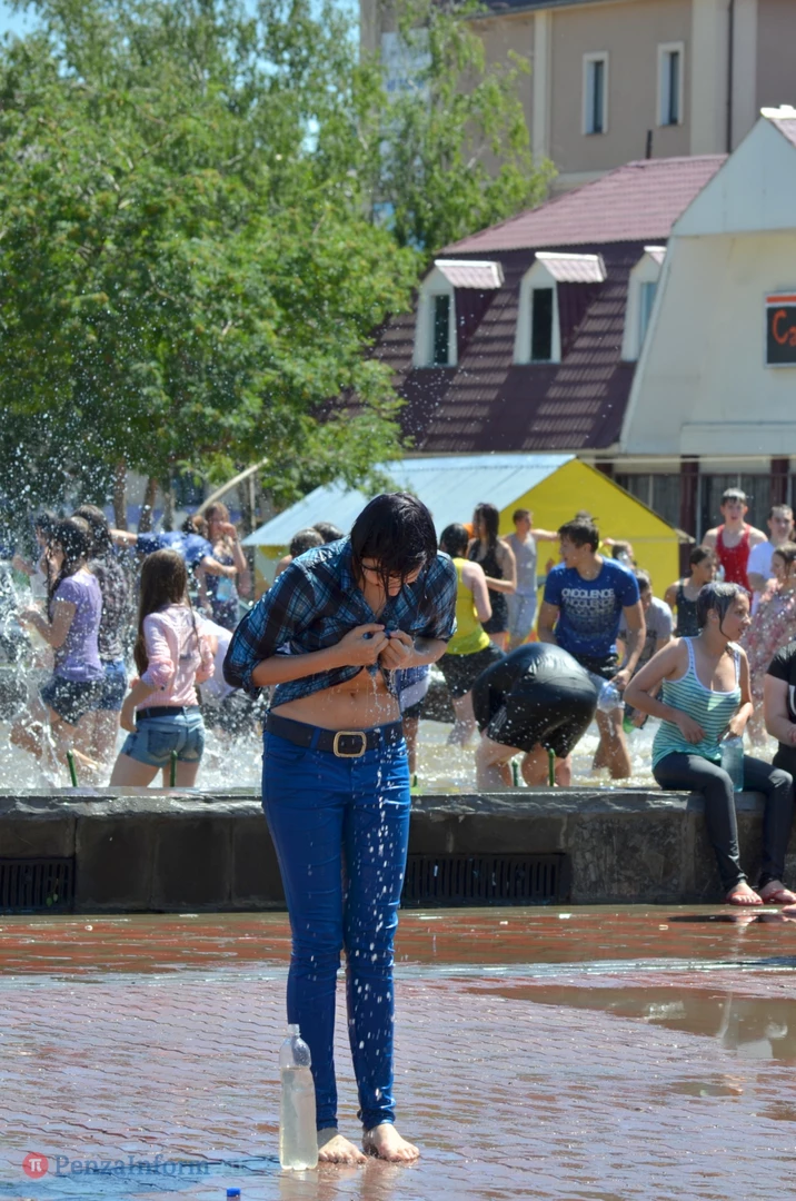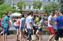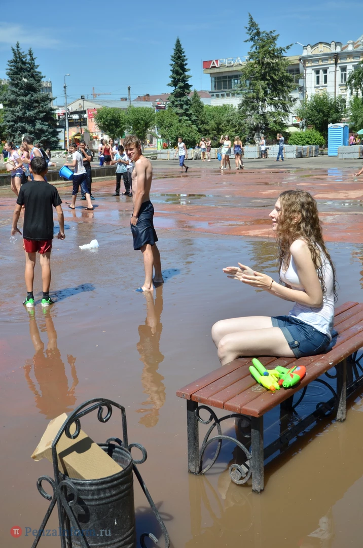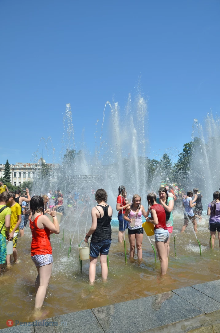 На Фонтанной площади произошло настоящее побоище. В ход шли пистолеты, бутылки, банки и тяжелая артиллерия - ведра. Вся площадь была залита водой. В раскаленном городе дети получили возможность вдоволь понарушать - побегать по фонтану, облить водой всех и вся. Самое веселье началось в час дня, когда начали иссякать боеприпасы - был включен фонтан.
