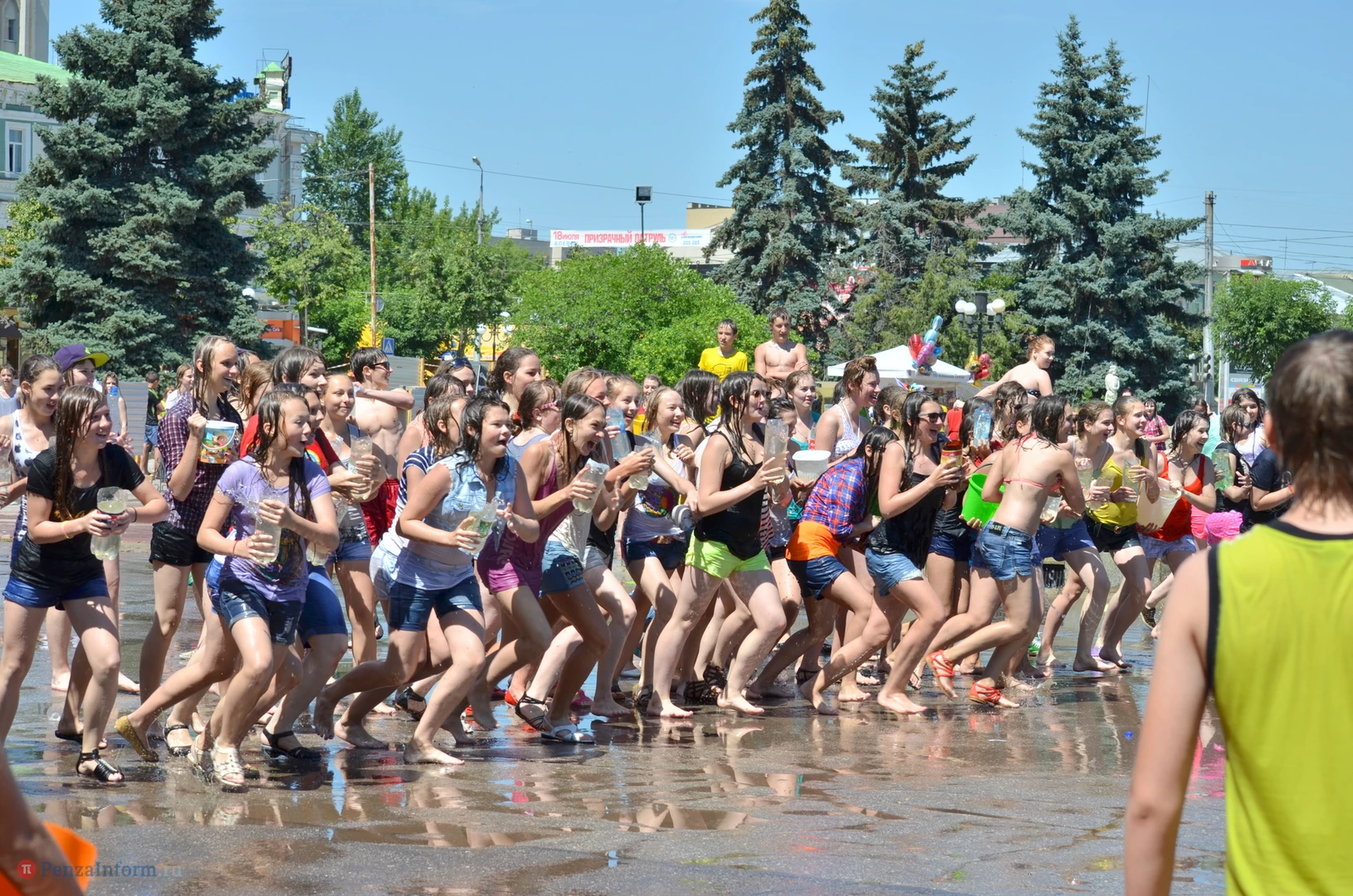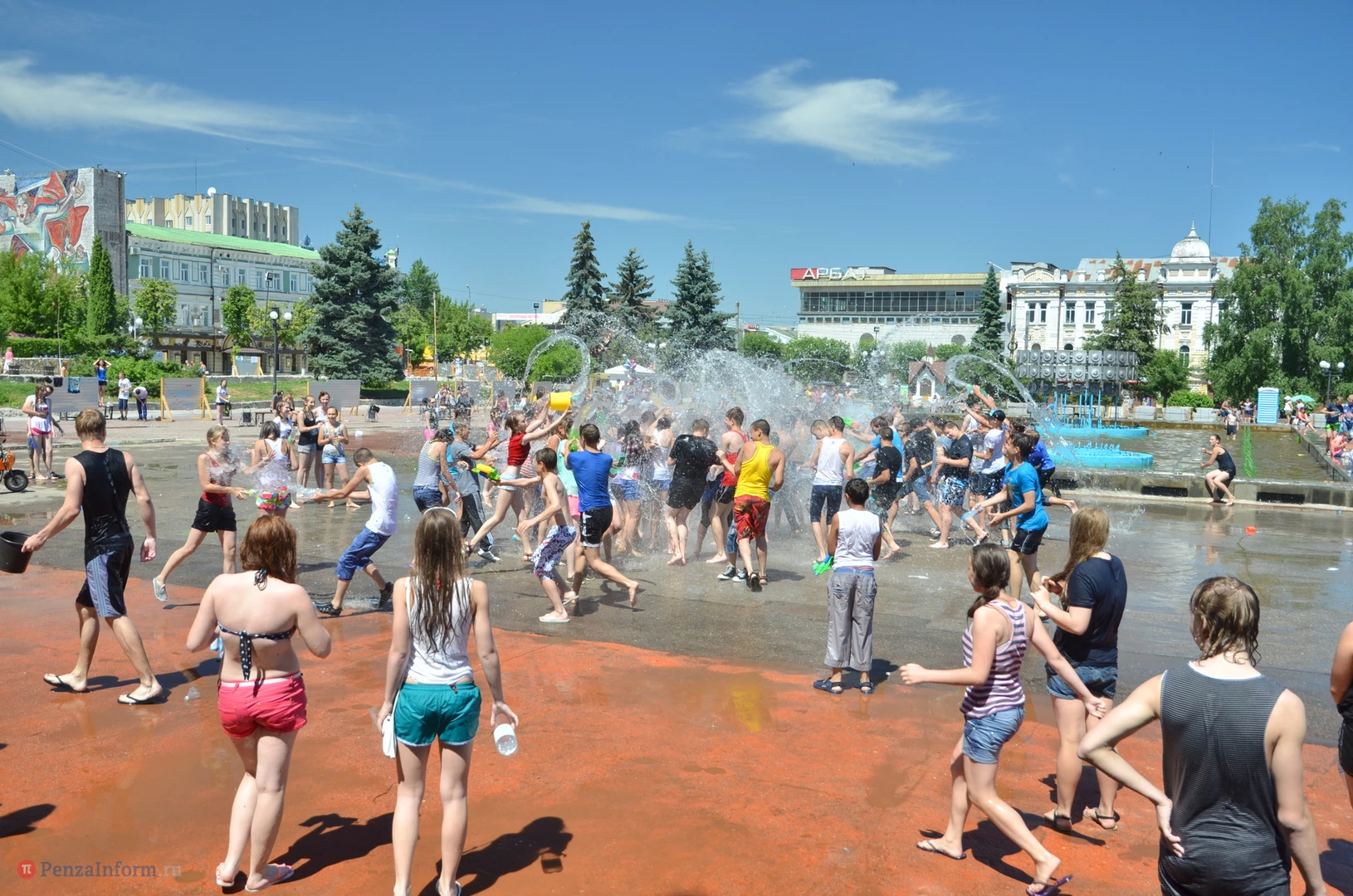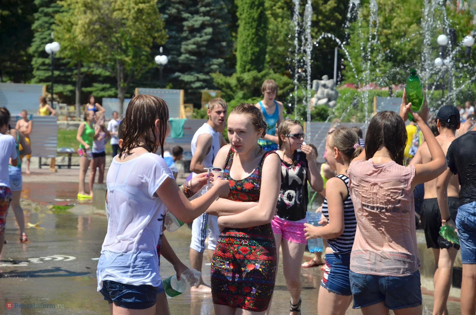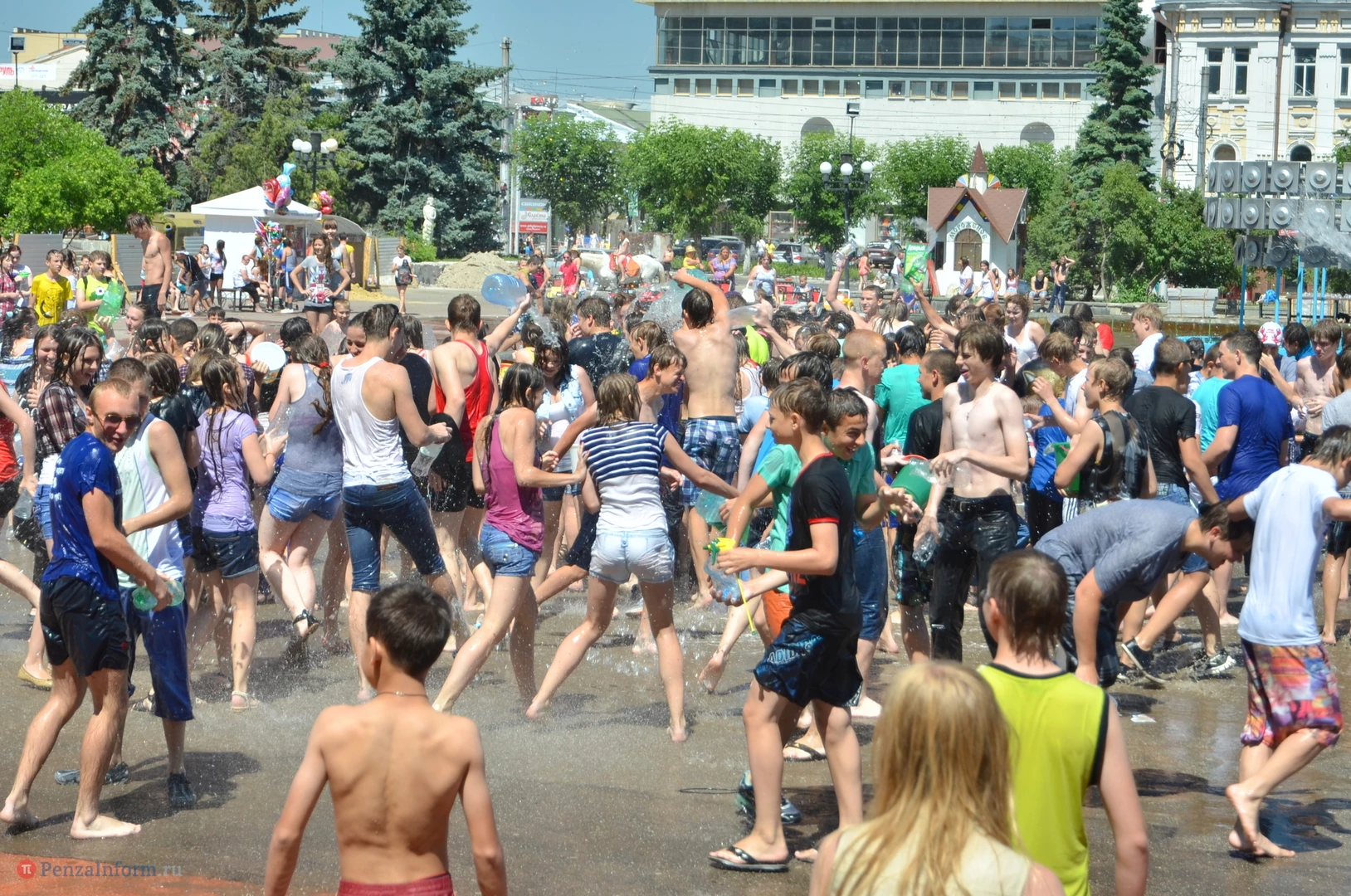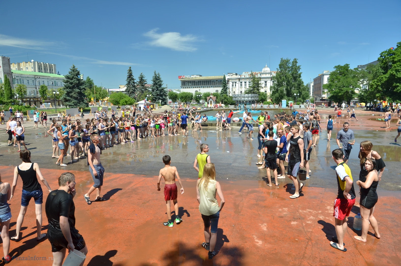На Фонтанной площади произошло настоящее побоище. В ход шли пистолеты, бутылки, банки и тяжелая артиллерия - ведра. Вся площадь была залита водой. В раскаленном городе дети получили возможность вдоволь понарушать - побегать по фонтану, облить водой всех и вся. Самое веселье началось в час дня, когда начали иссякать боеприпасы - был включен фонтан.