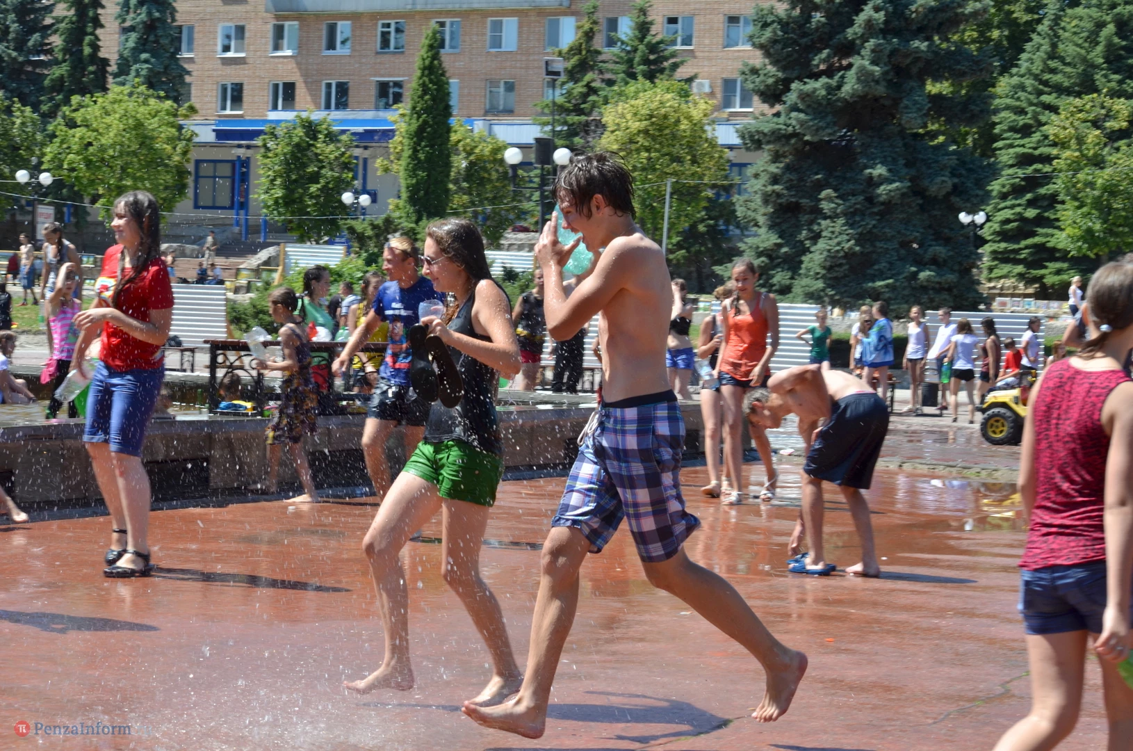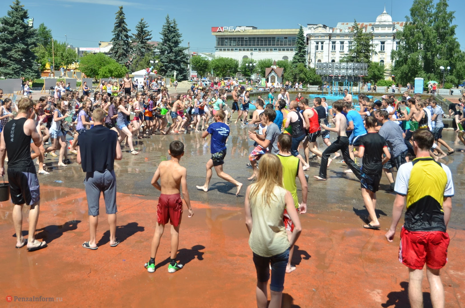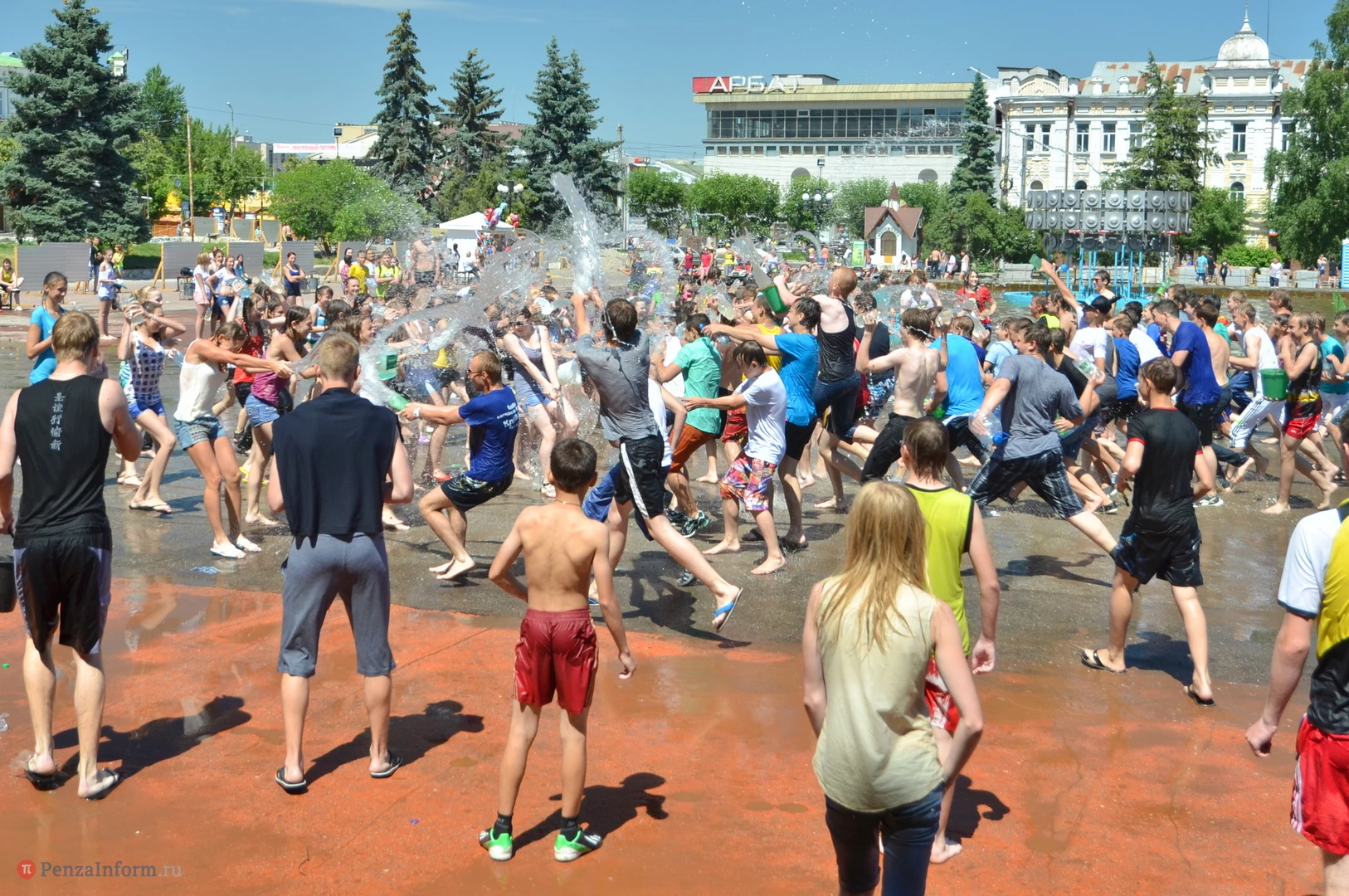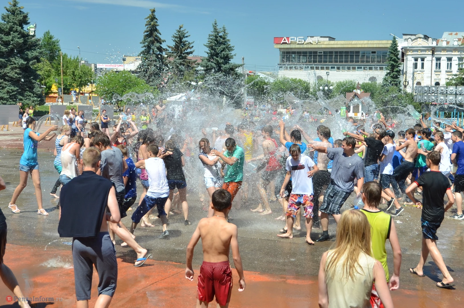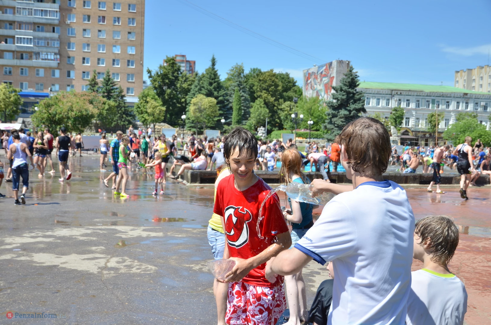 На Фонтанной площади произошло настоящее побоище. В ход шли пистолеты, бутылки, банки и тяжелая артиллерия - ведра. Вся площадь была залита водой. В раскаленном городе дети получили возможность вдоволь понарушать - побегать по фонтану, облить водой всех и вся. Самое веселье началось в час дня, когда начали иссякать боеприпасы - был включен фонтан.