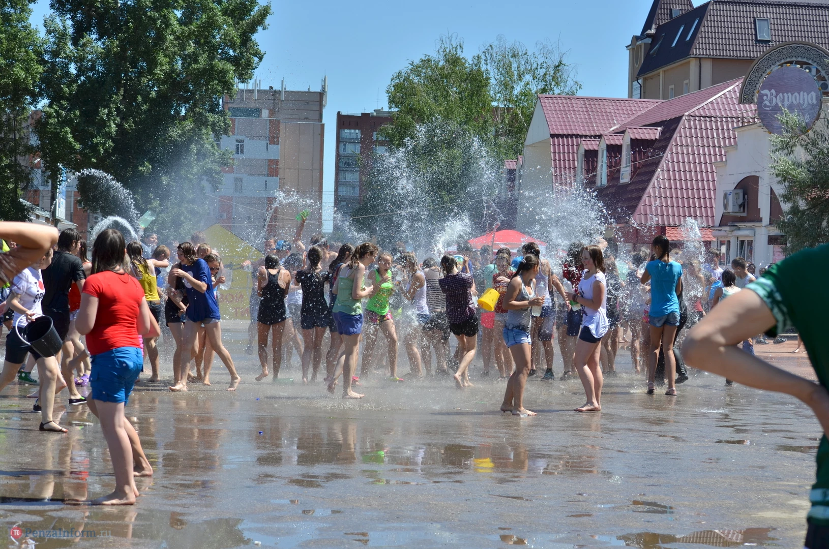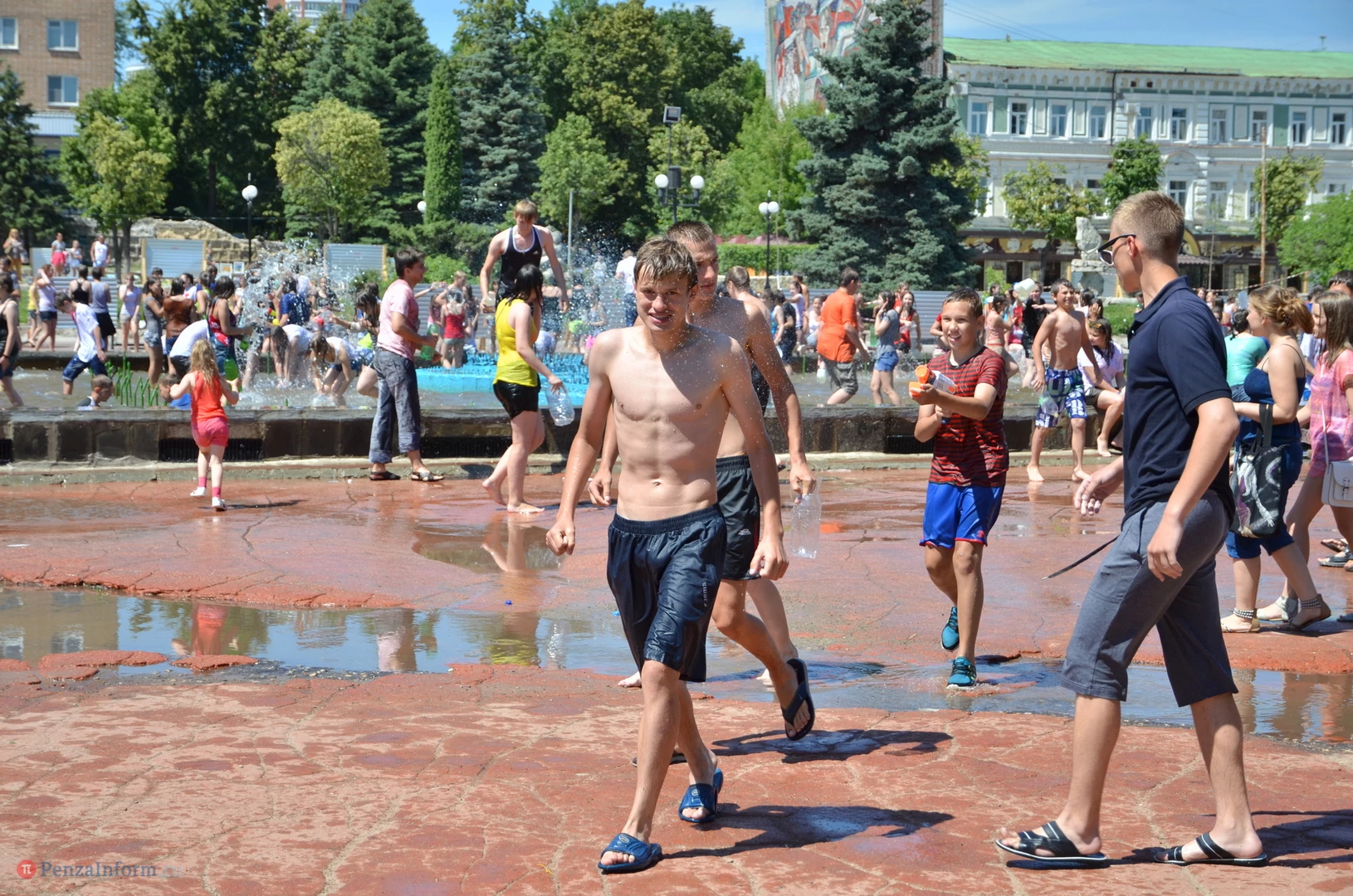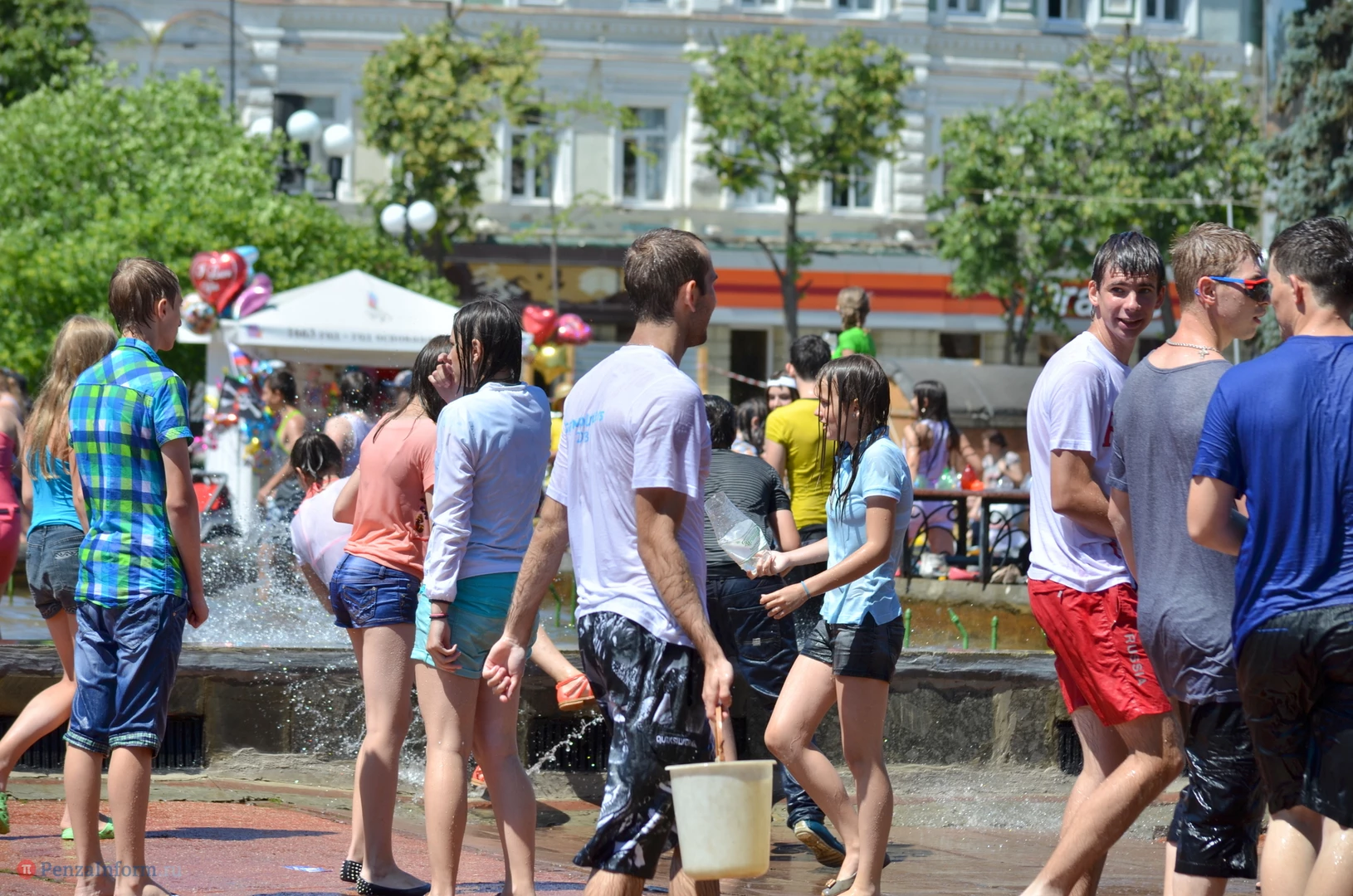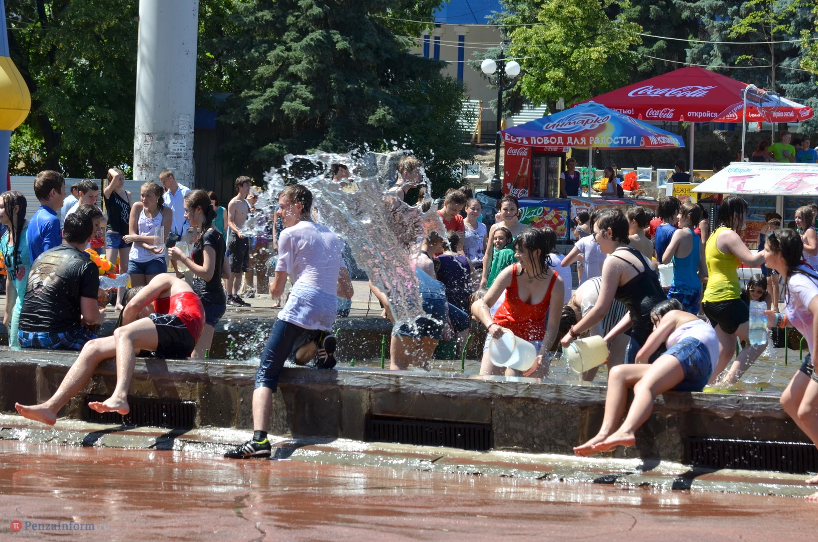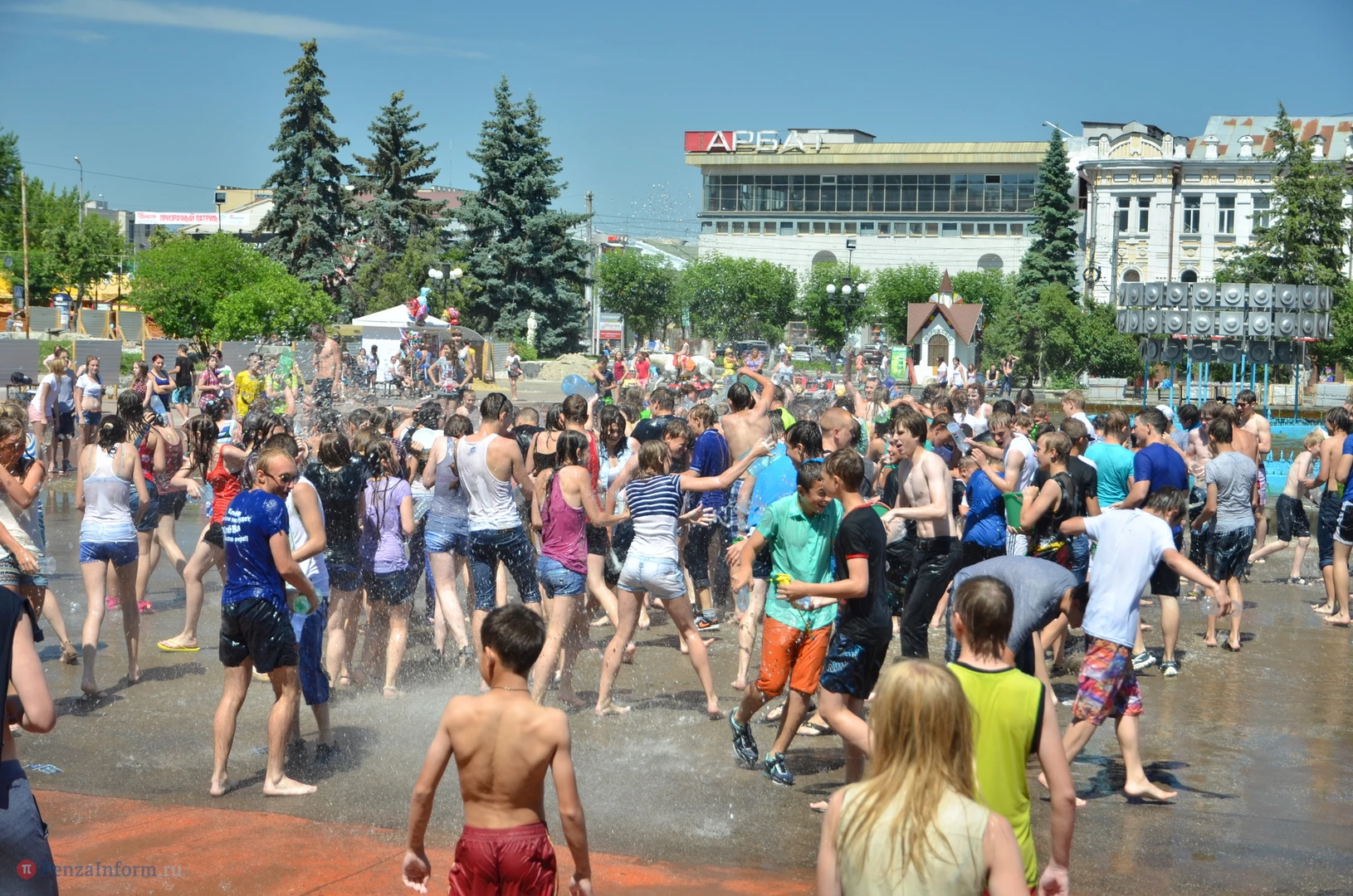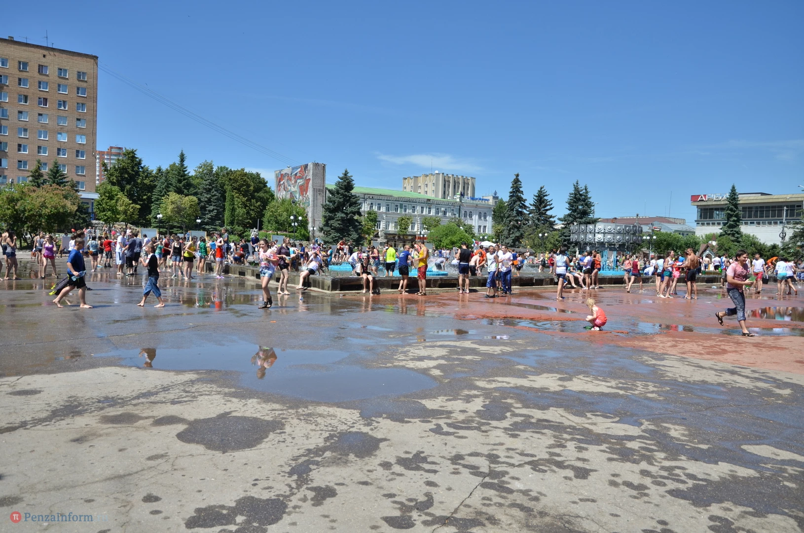 На Фонтанной площади произошло настоящее побоище. В ход шли пистолеты, бутылки, банки и тяжелая артиллерия - ведра. Вся площадь была залита водой. В раскаленном городе дети получили возможность вдоволь понарушать - побегать по фонтану, облить водой всех и вся. Самое веселье началось в час дня, когда начали иссякать боеприпасы - был включен фонтан.