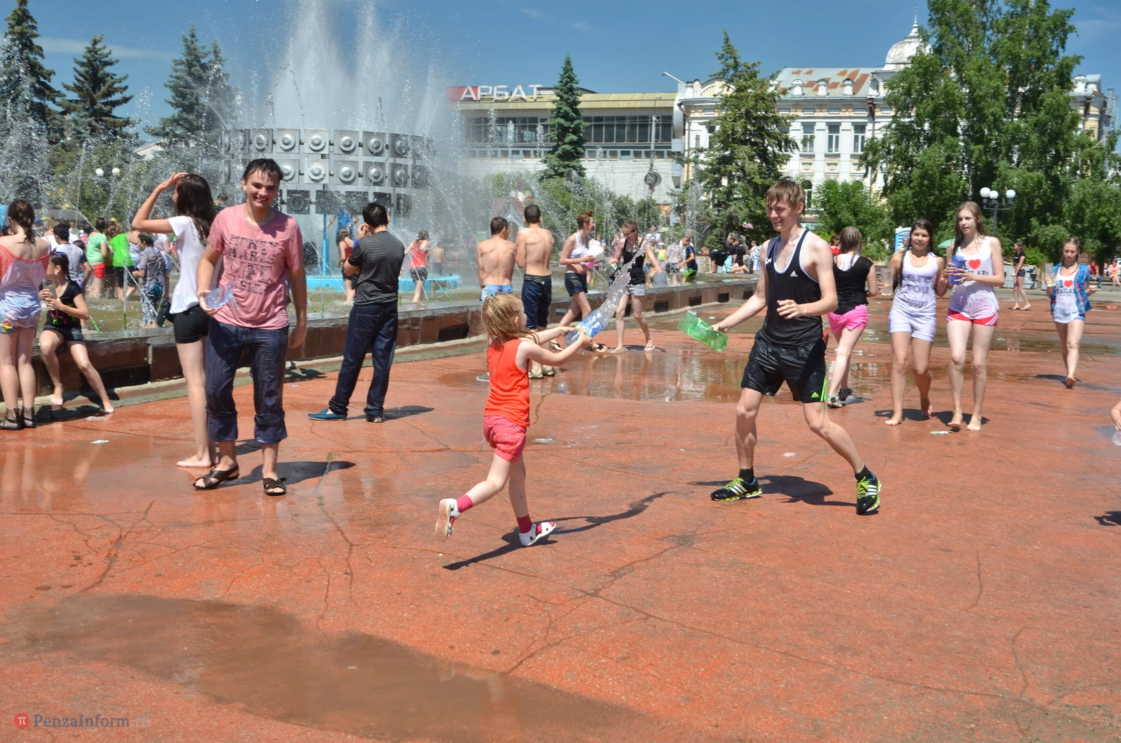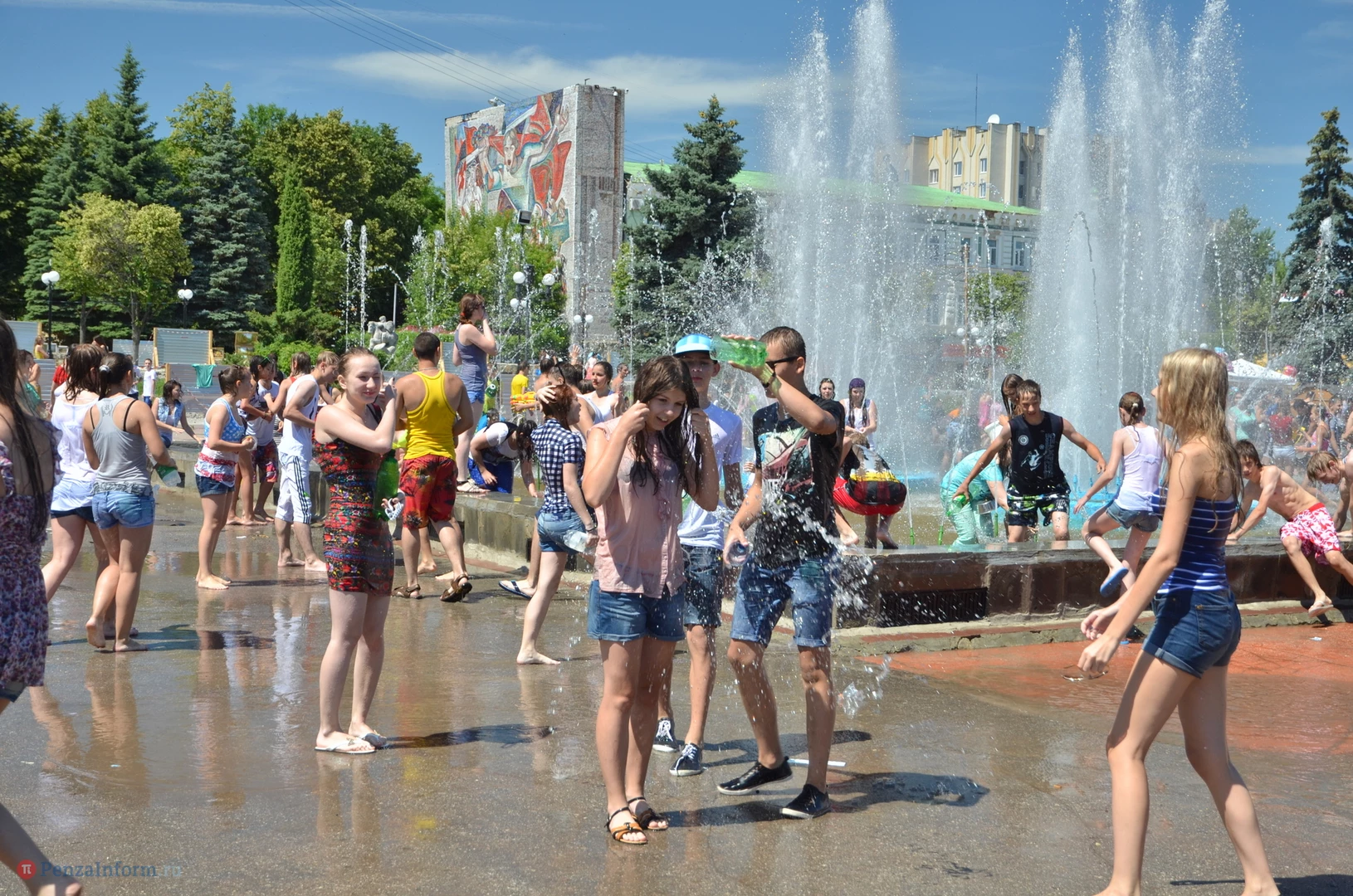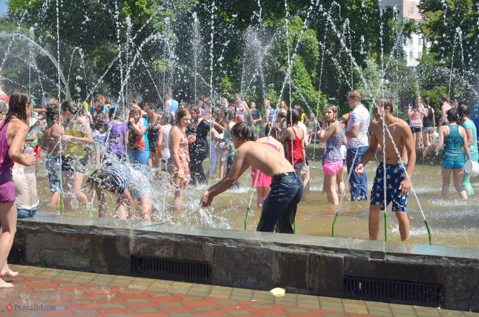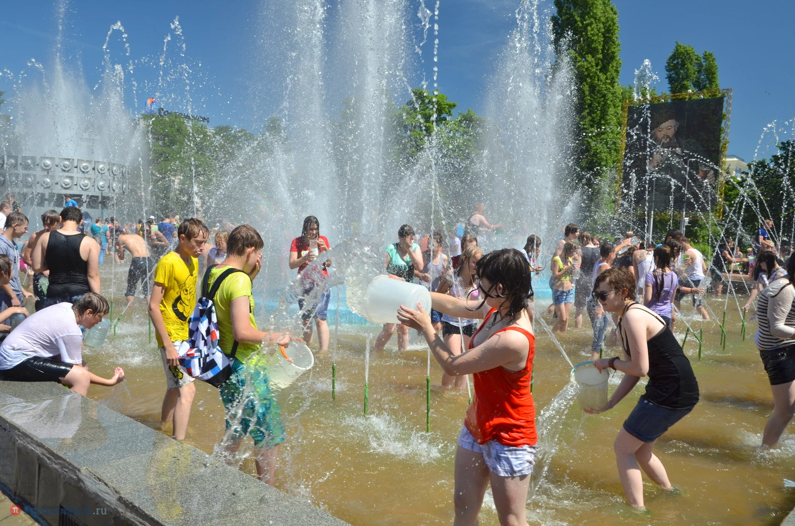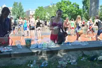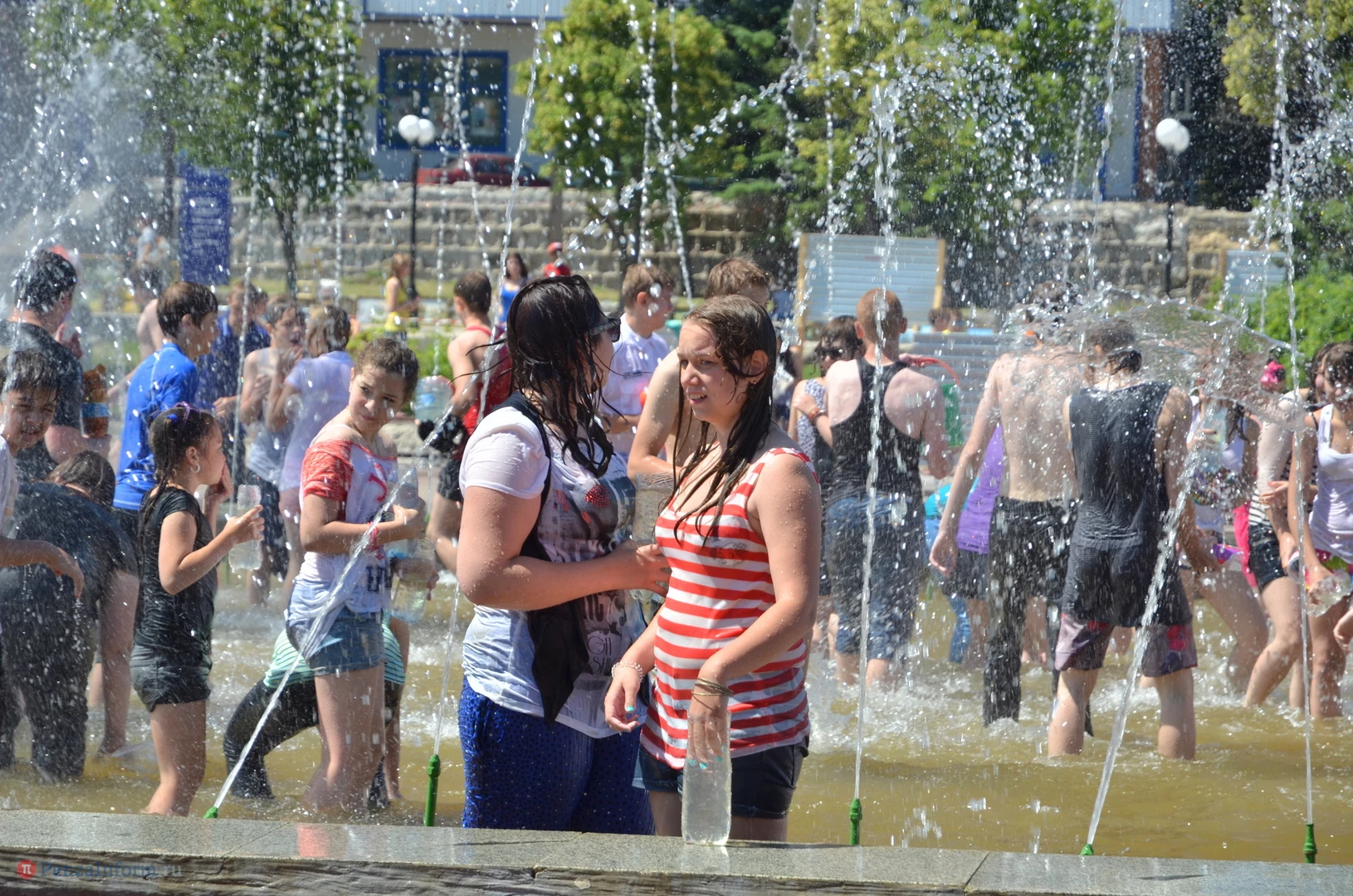 На Фонтанной площади произошло настоящее побоище. В ход шли пистолеты, бутылки, банки и тяжелая артиллерия - ведра. Вся площадь была залита водой. В раскаленном городе дети получили возможность вдоволь понарушать - побегать по фонтану, облить водой всех и вся. Самое веселье началось в час дня, когда начали иссякать боеприпасы - был включен фонтан.