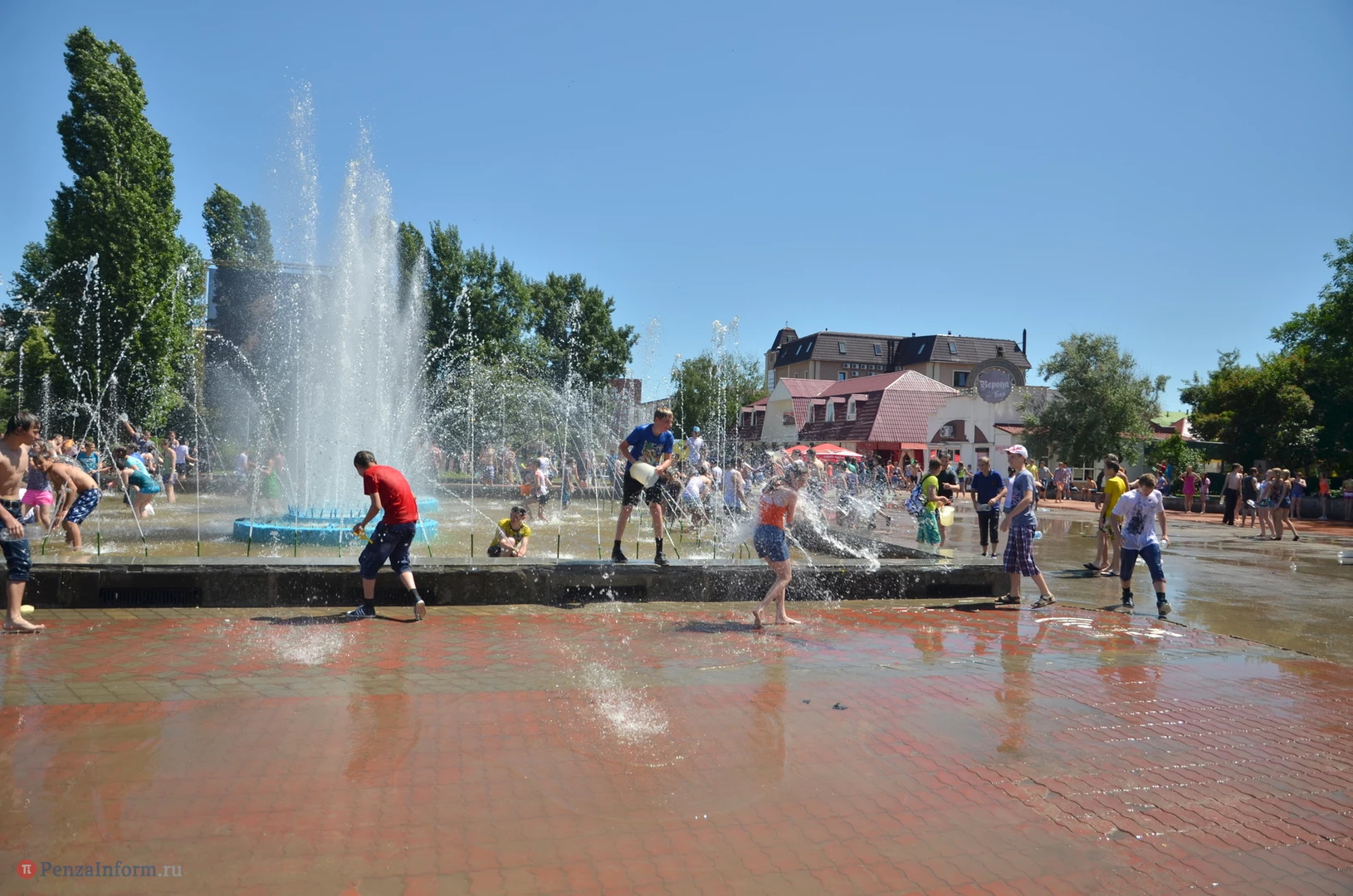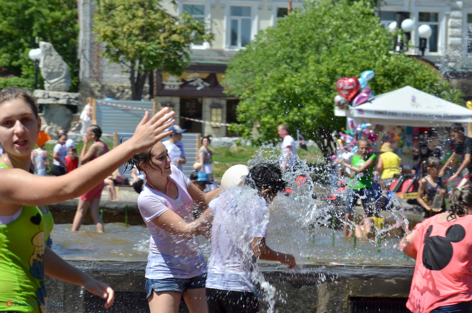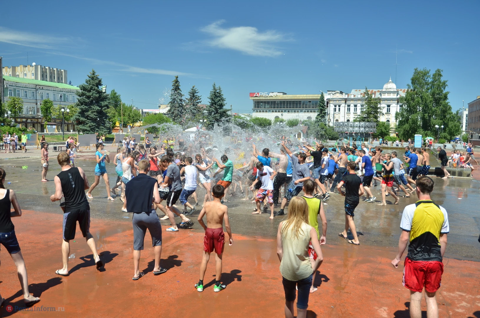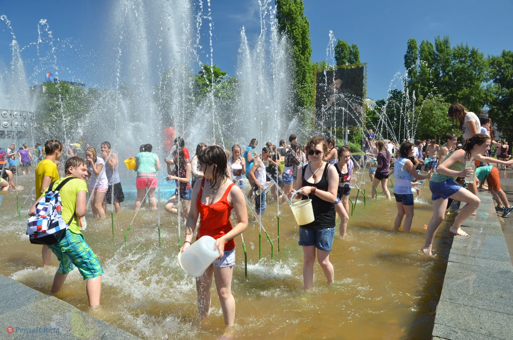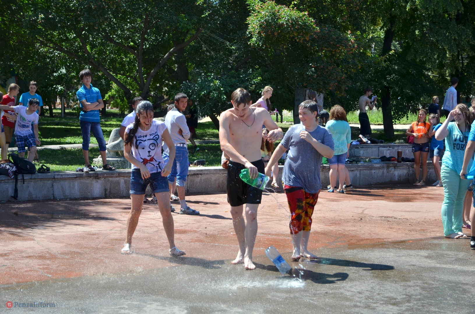 На Фонтанной площади произошло настоящее побоище. В ход шли пистолеты, бутылки, банки и тяжелая артиллерия - ведра. Вся площадь была залита водой. В раскаленном городе дети получили возможность вдоволь понарушать - побегать по фонтану, облить водой всех и вся. Самое веселье началось в час дня, когда начали иссякать боеприпасы - был включен фонтан.