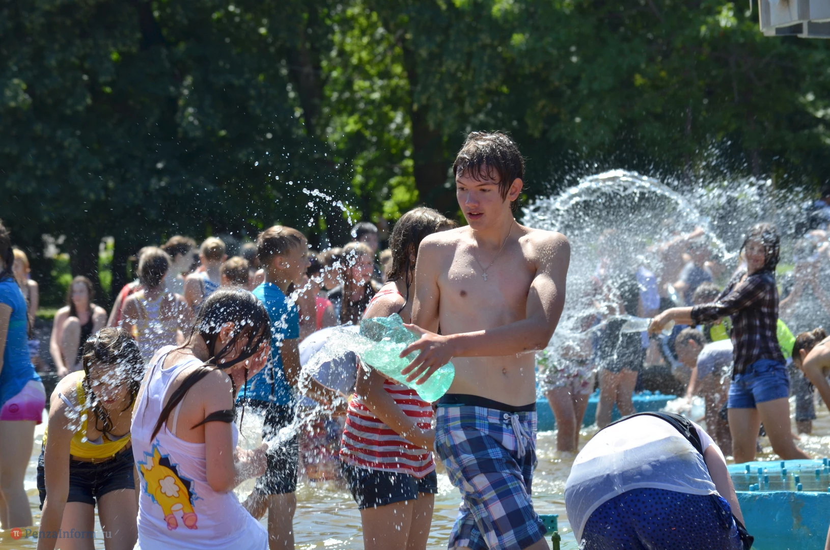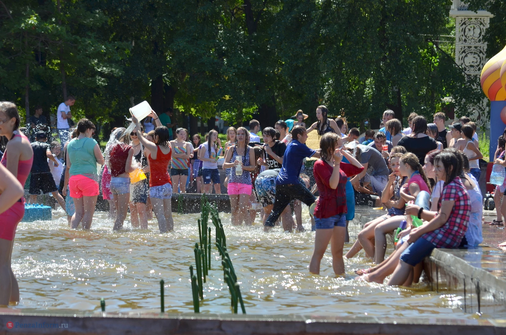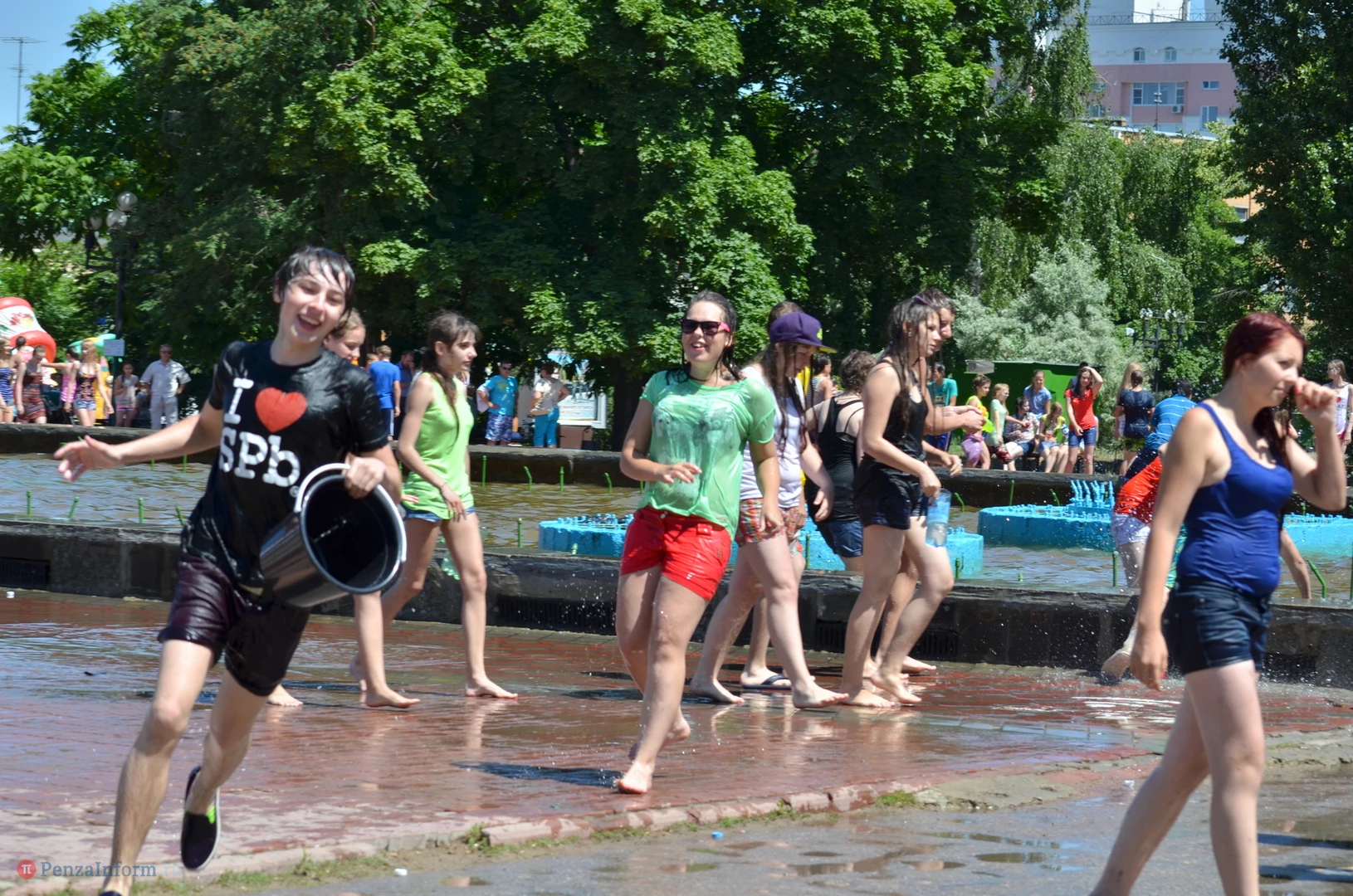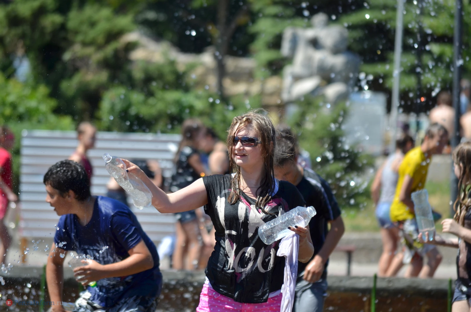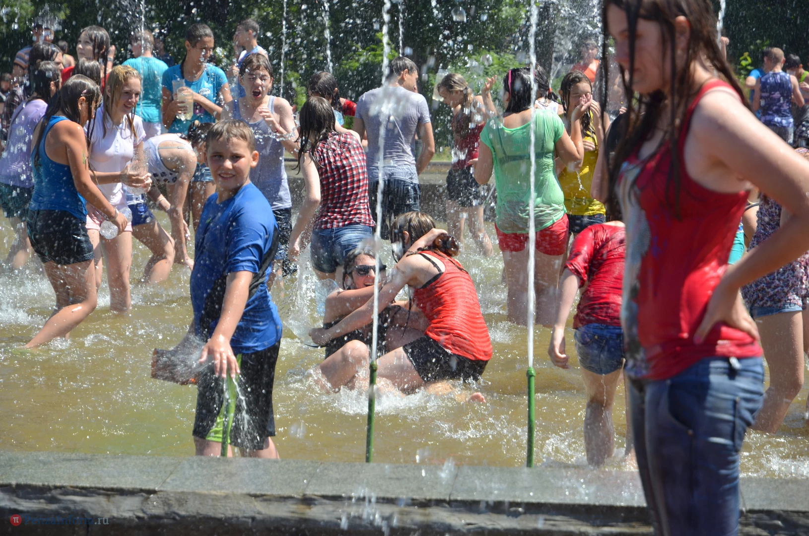 На Фонтанной площади произошло настоящее побоище. В ход шли пистолеты, бутылки, банки и тяжелая артиллерия - ведра. Вся площадь была залита водой. В раскаленном городе дети получили возможность вдоволь понарушать - побегать по фонтану, облить водой всех и вся. Самое веселье началось в час дня, когда начали иссякать боеприпасы - был включен фонтан.