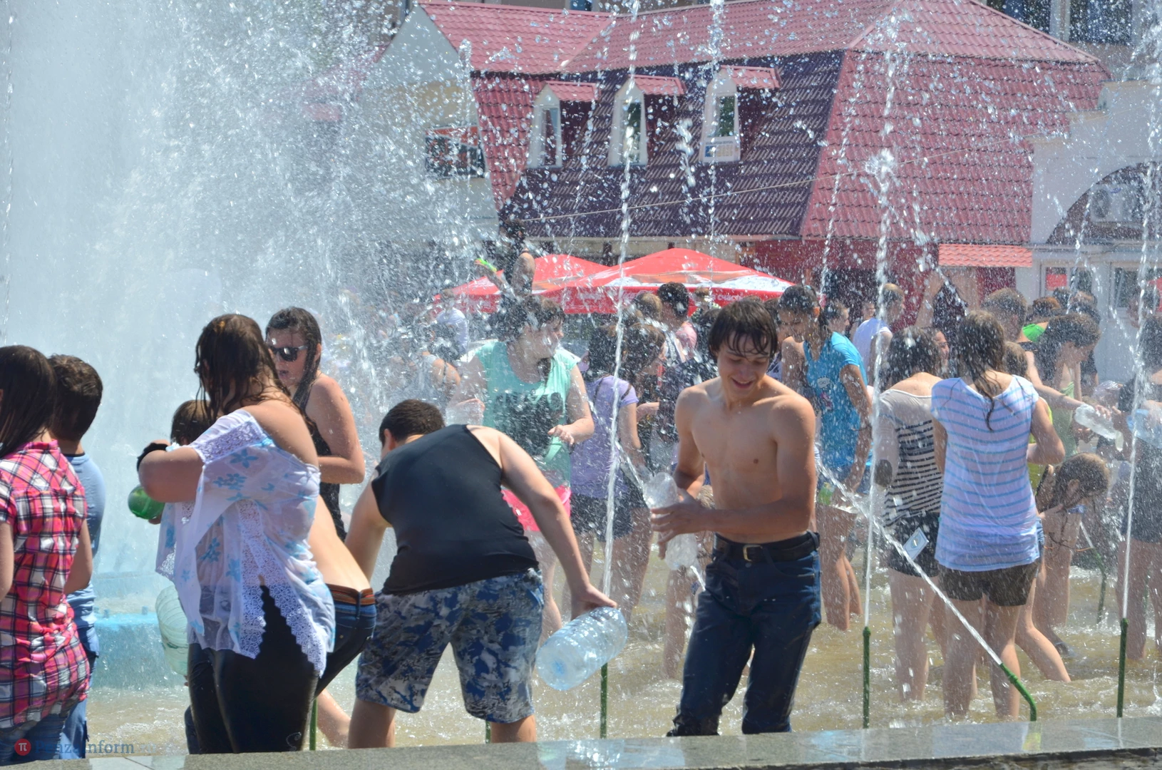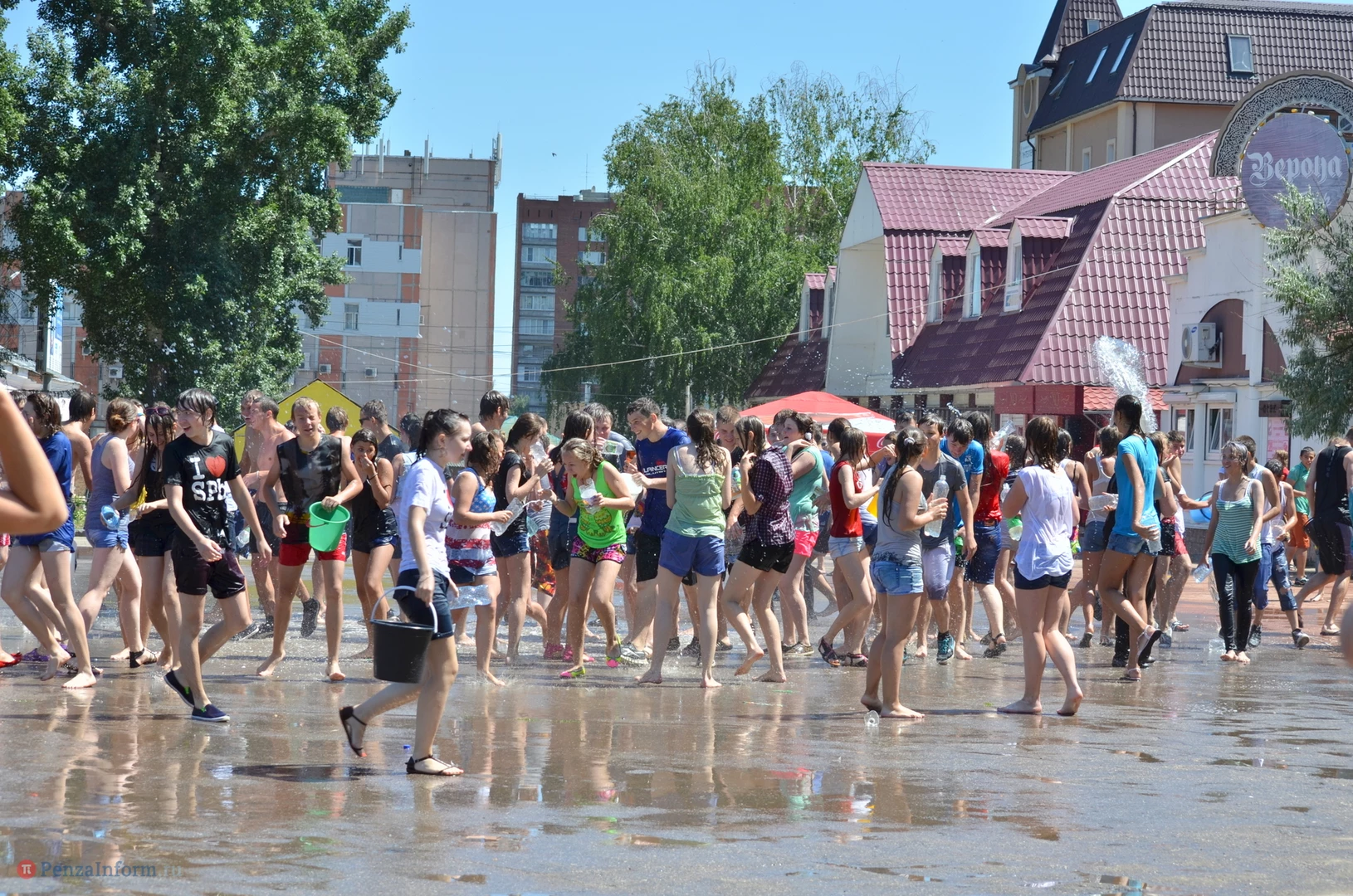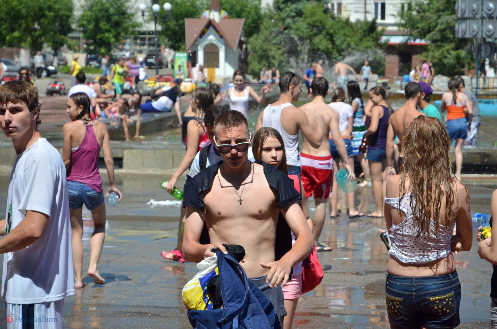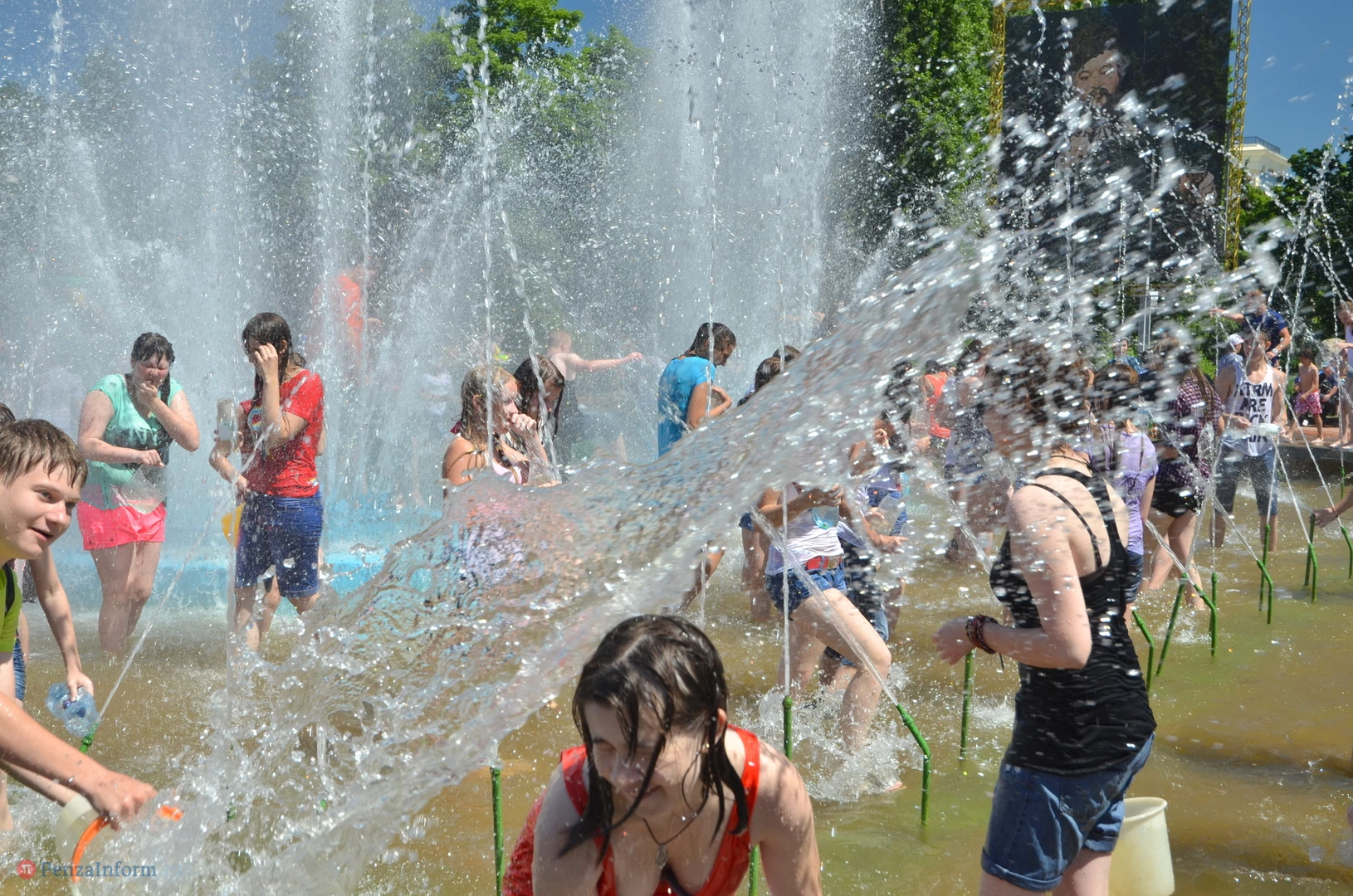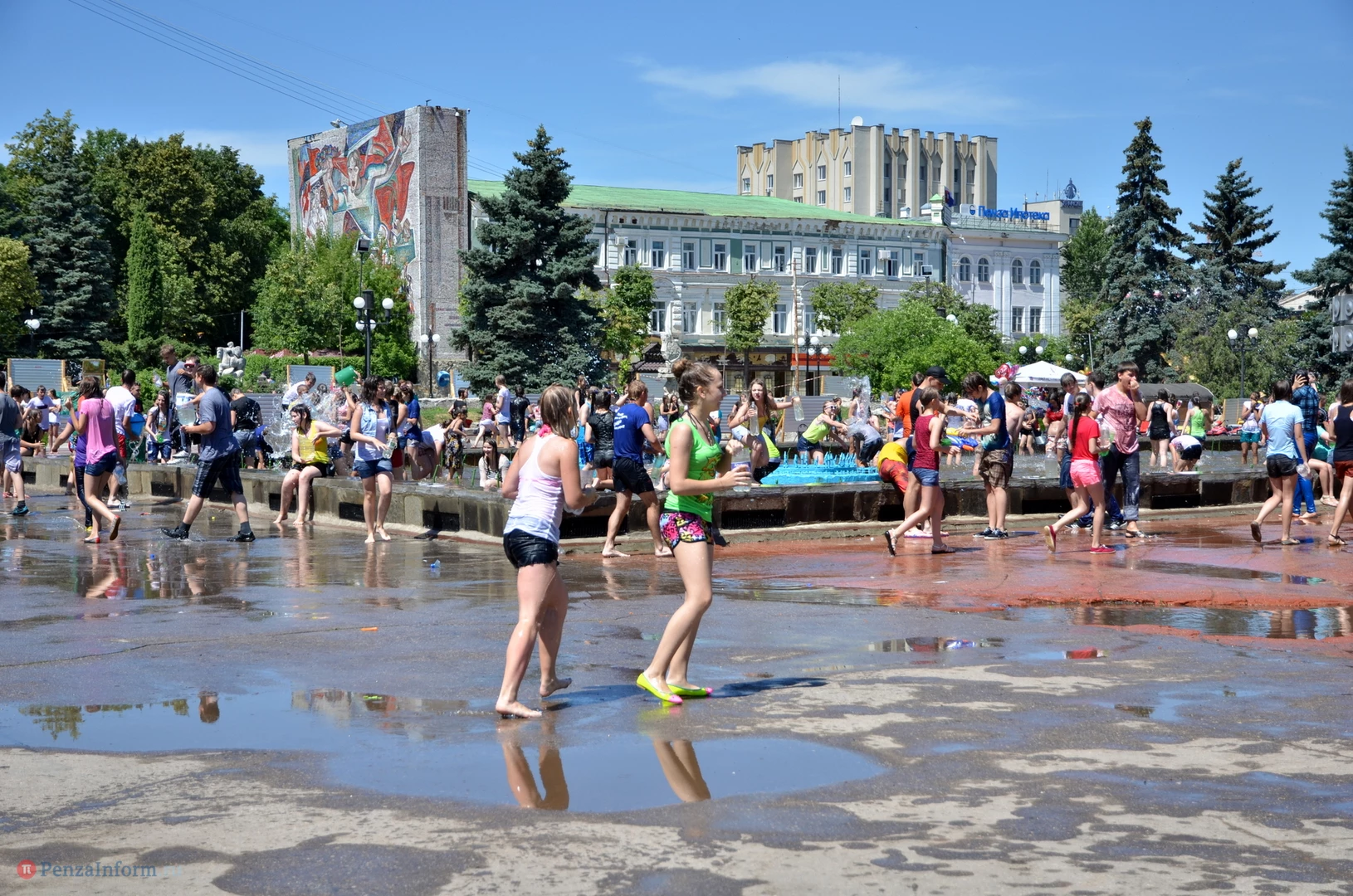 На Фонтанной площади произошло настоящее побоище. В ход шли пистолеты, бутылки, банки и тяжелая артиллерия - ведра. Вся площадь была залита водой. В раскаленном городе дети получили возможность вдоволь понарушать - побегать по фонтану, облить водой всех и вся. Самое веселье началось в час дня, когда начали иссякать боеприпасы - был включен фонтан.