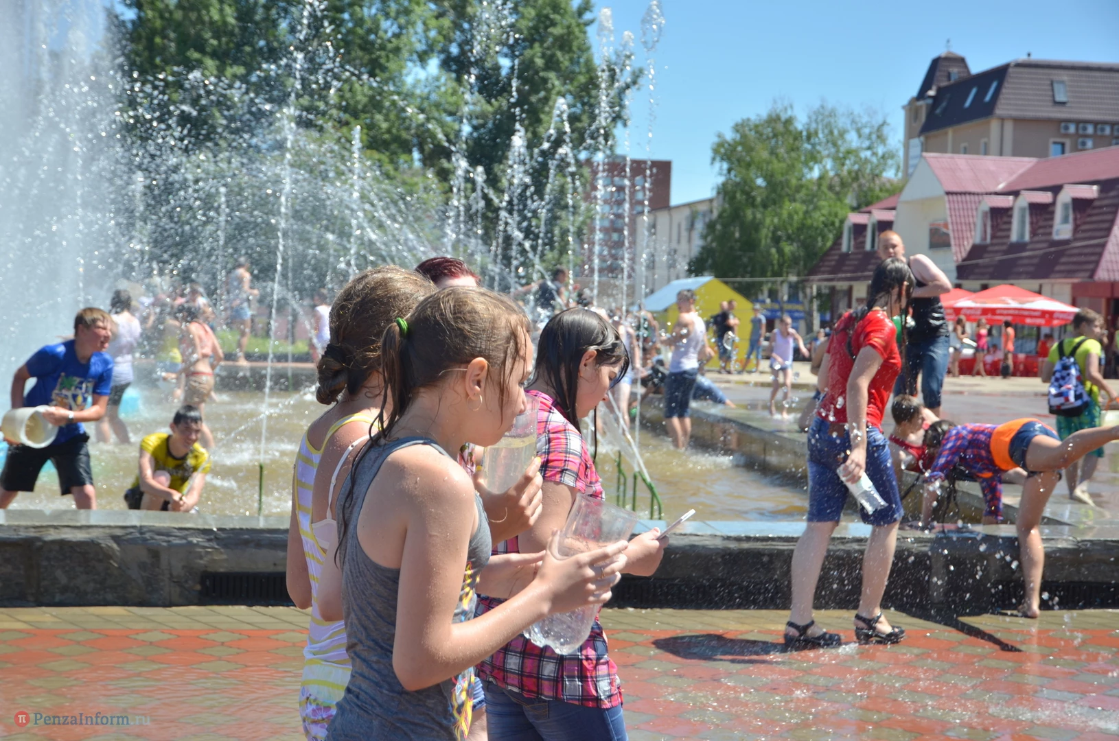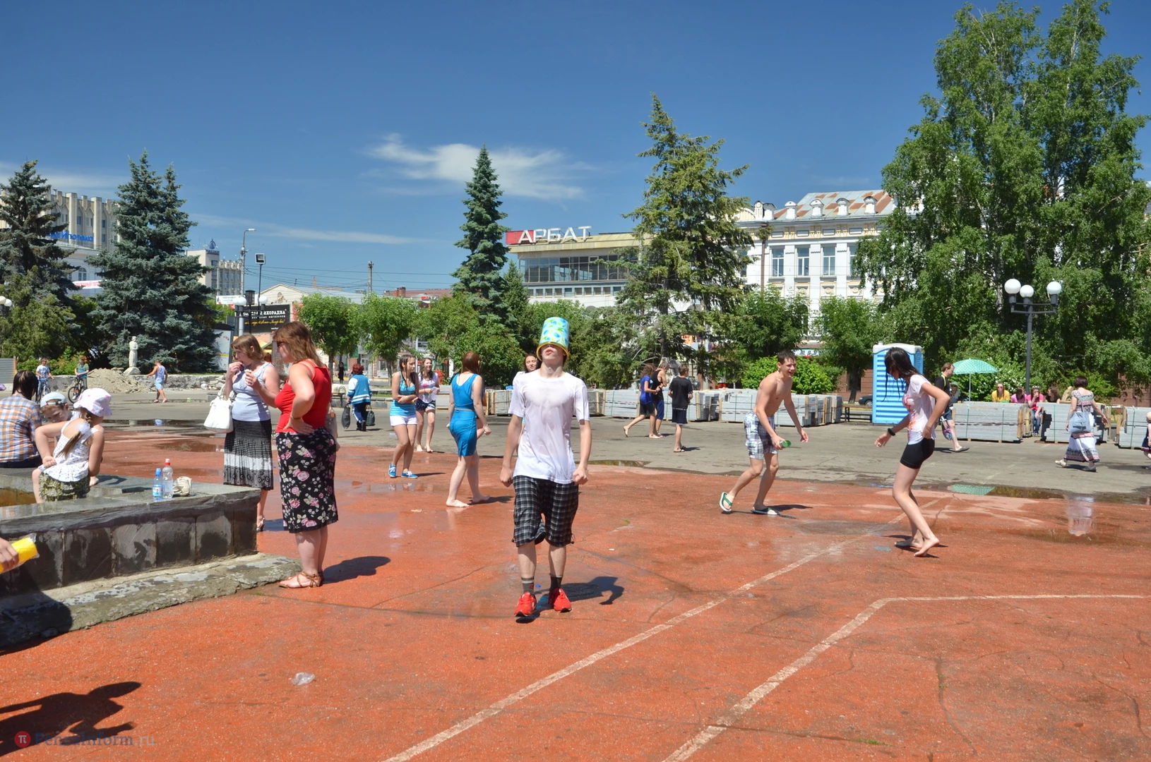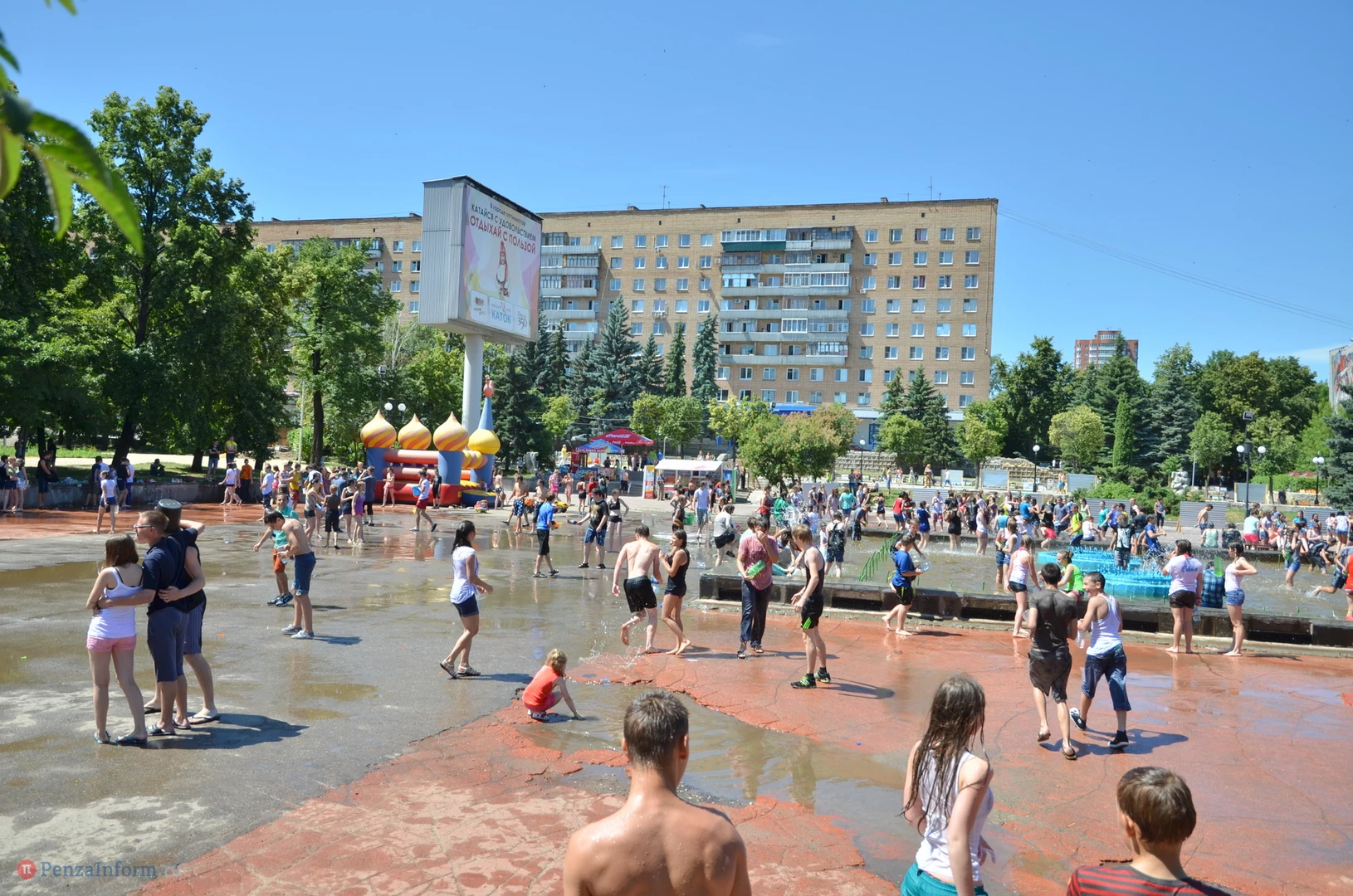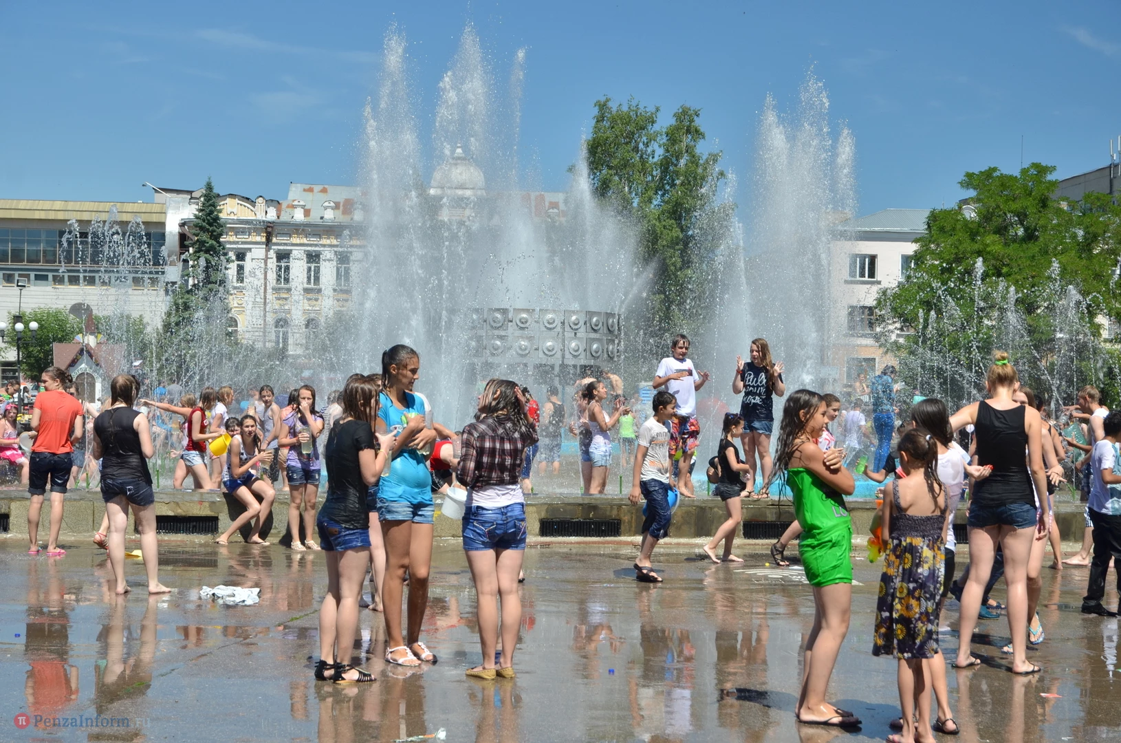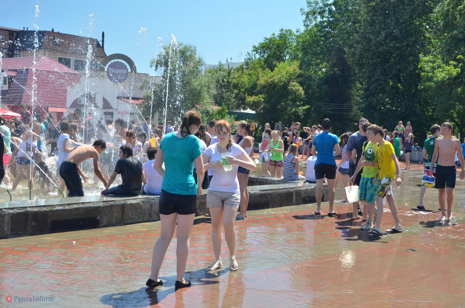 На Фонтанной площади произошло настоящее побоище. В ход шли пистолеты, бутылки, банки и тяжелая артиллерия - ведра. Вся площадь была залита водой. В раскаленном городе дети получили возможность вдоволь понарушать - побегать по фонтану, облить водой всех и вся. Самое веселье началось в час дня, когда начали иссякать боеприпасы - был включен фонтан.