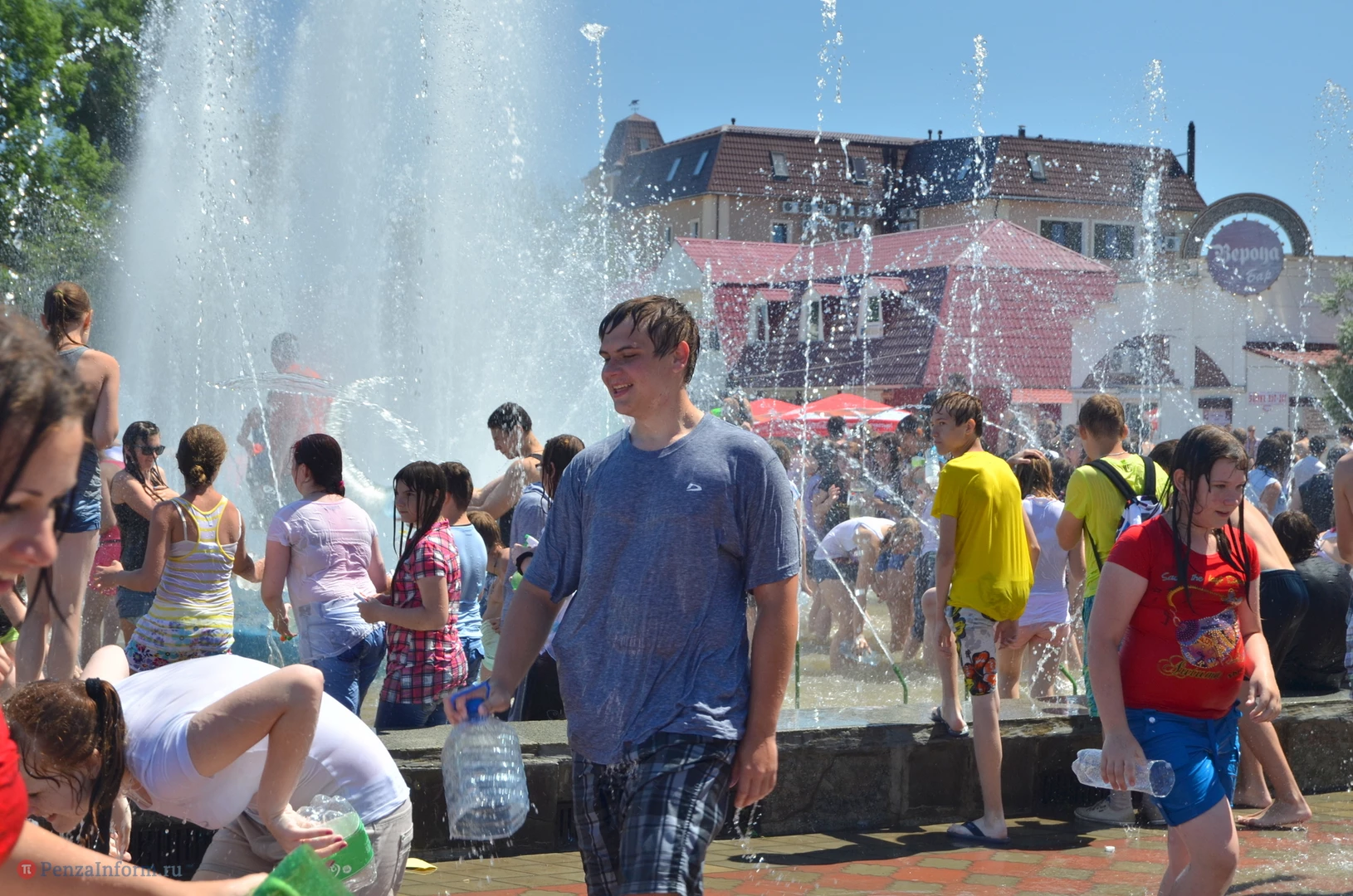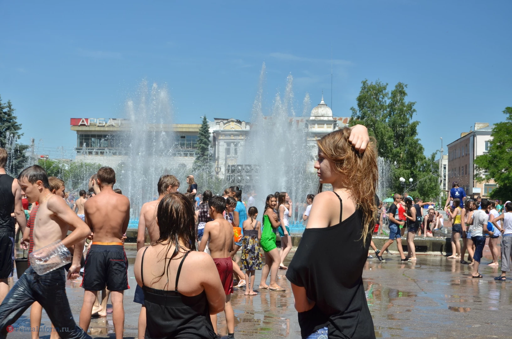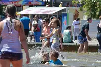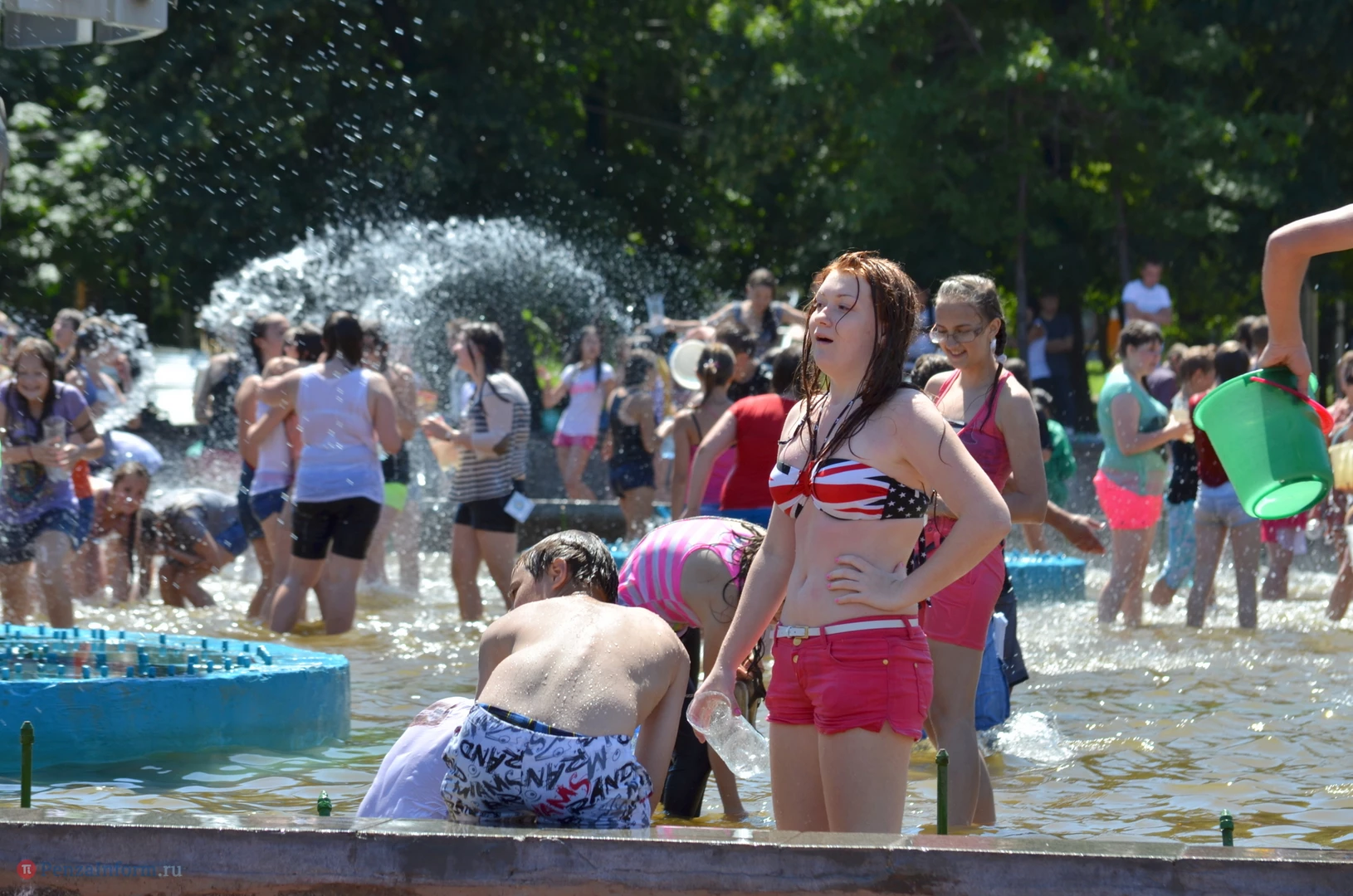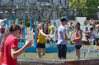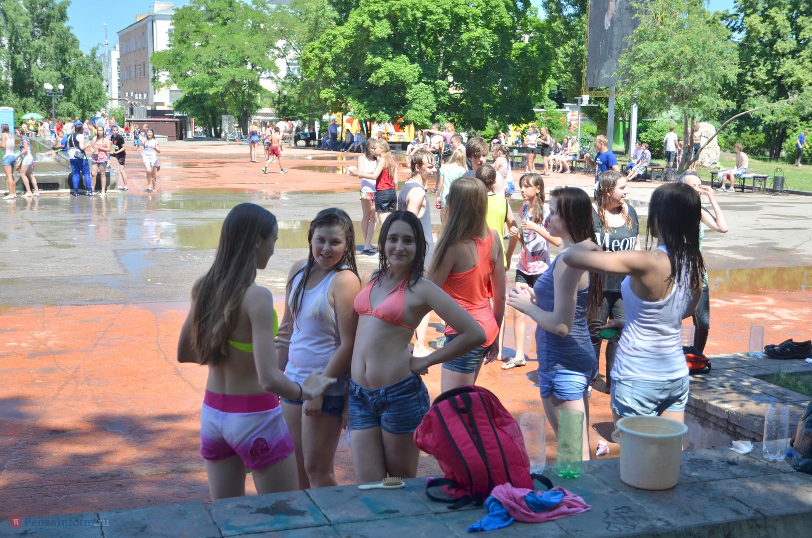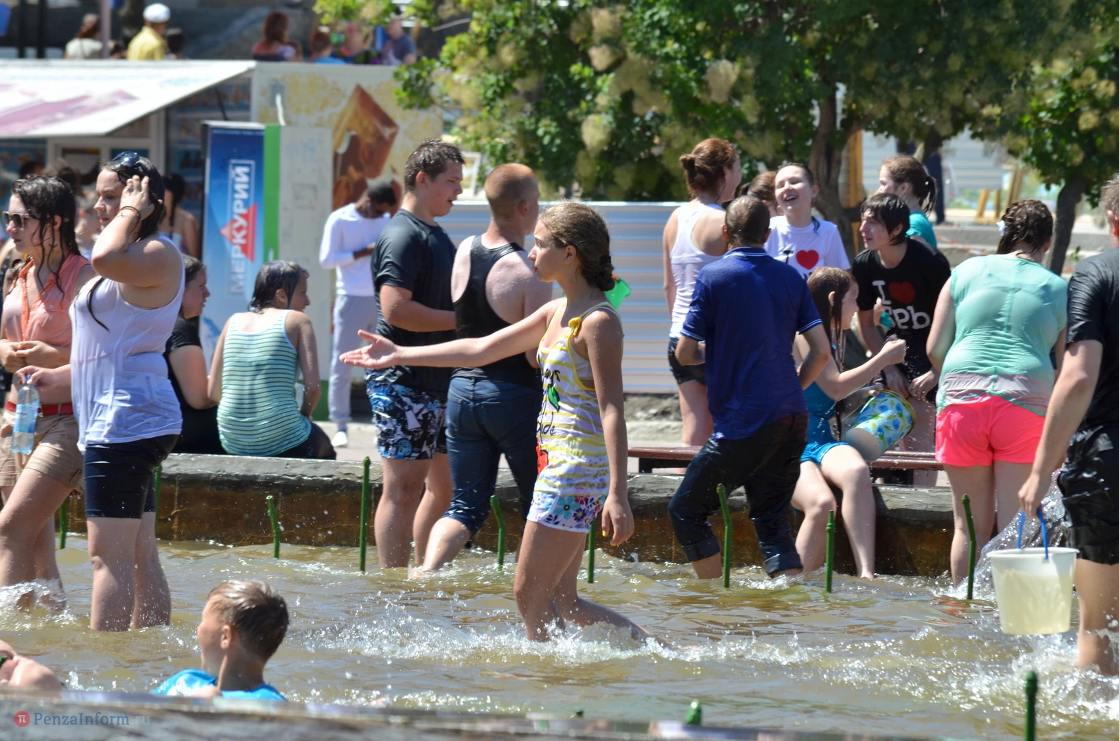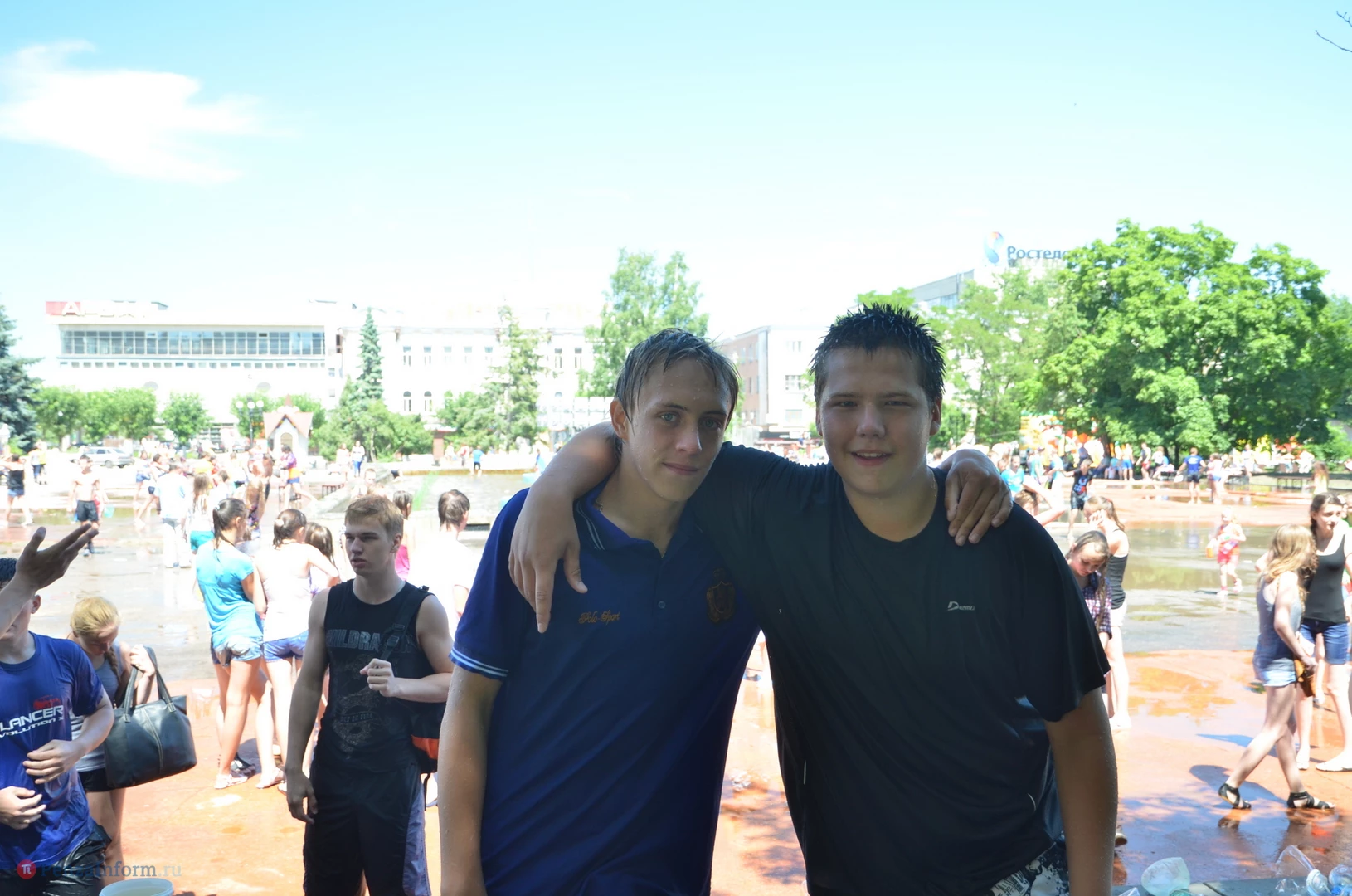 На Фонтанной площади произошло настоящее побоище. В ход шли пистолеты, бутылки, банки и тяжелая артиллерия - ведра. Вся площадь была залита водой. В раскаленном городе дети получили возможность вдоволь понарушать - побегать по фонтану, облить водой всех и вся. Самое веселье началось в час дня, когда начали иссякать боеприпасы - был включен фонтан.