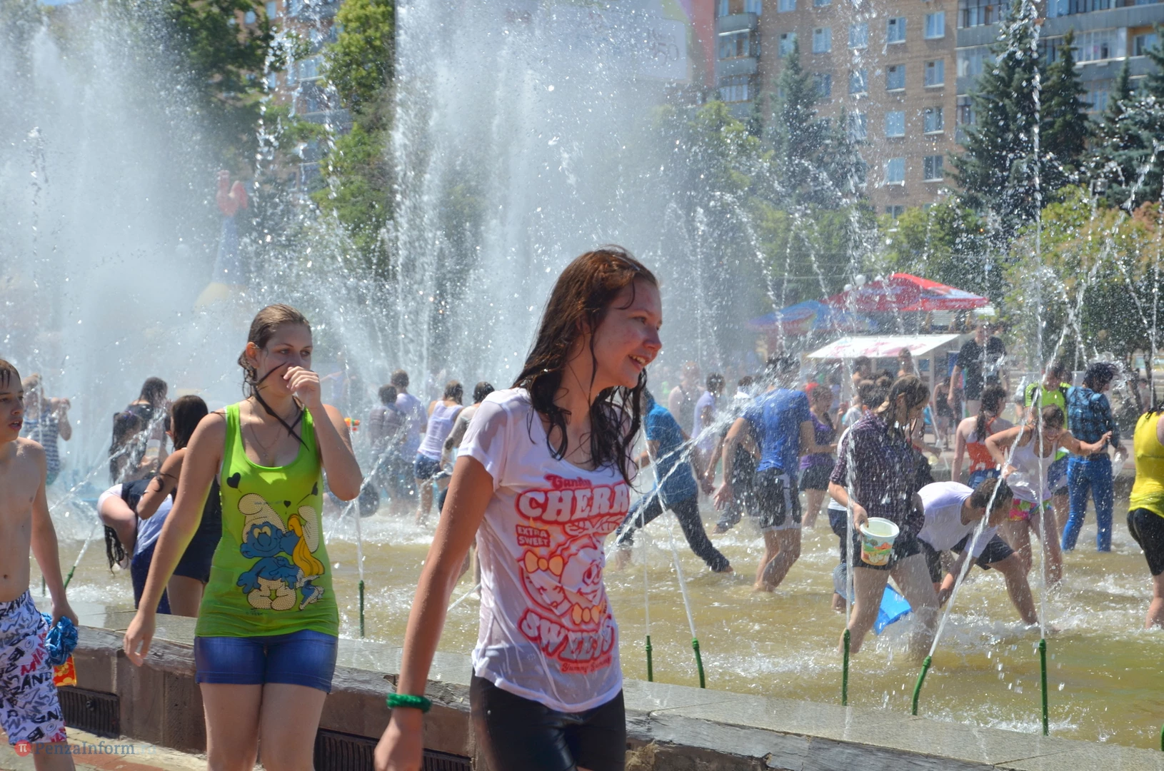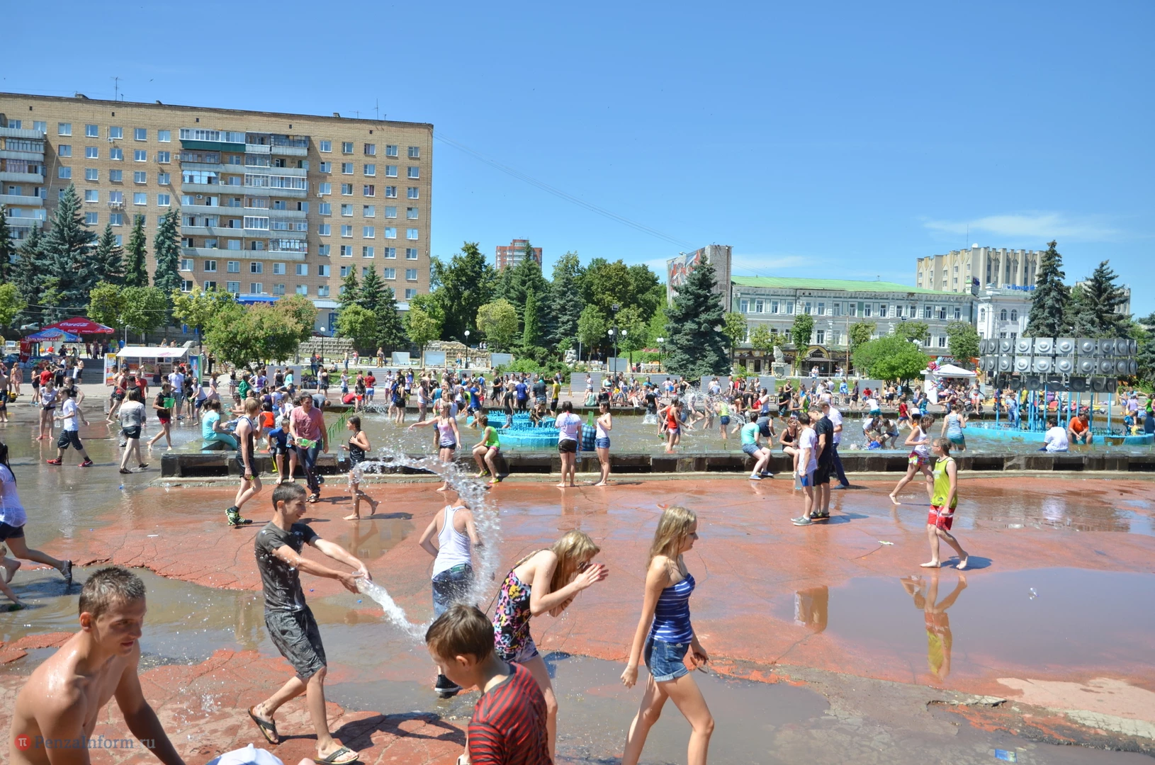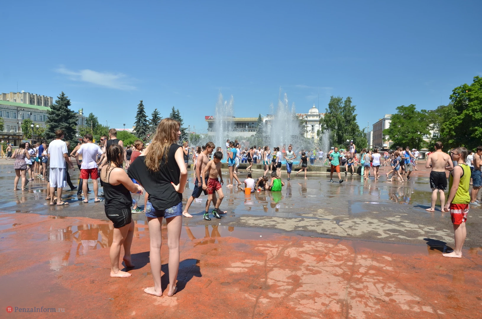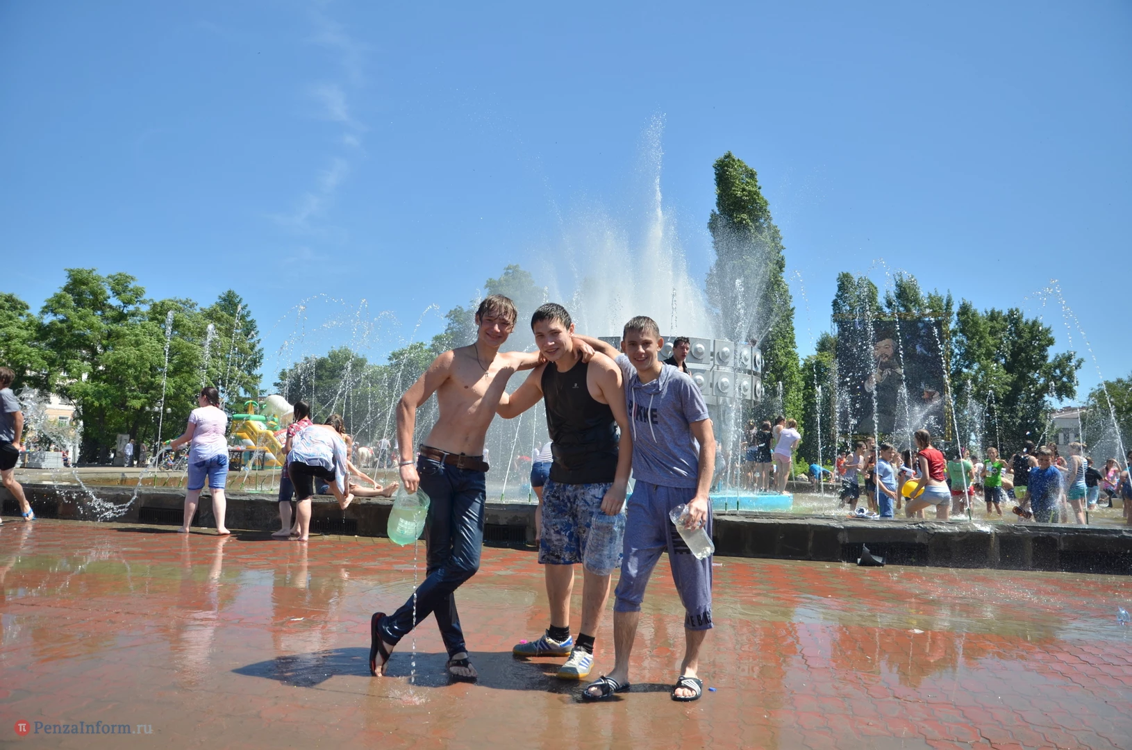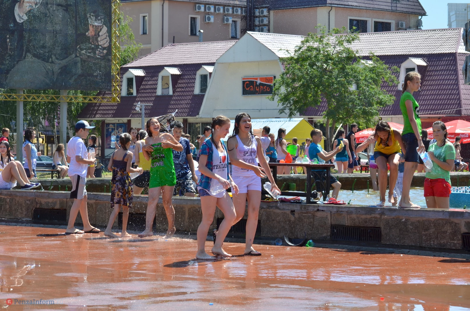 На Фонтанной площади произошло настоящее побоище. В ход шли пистолеты, бутылки, банки и тяжелая артиллерия - ведра. Вся площадь была залита водой. В раскаленном городе дети получили возможность вдоволь понарушать - побегать по фонтану, облить водой всех и вся. Самое веселье началось в час дня, когда начали иссякать боеприпасы - был включен фонтан.