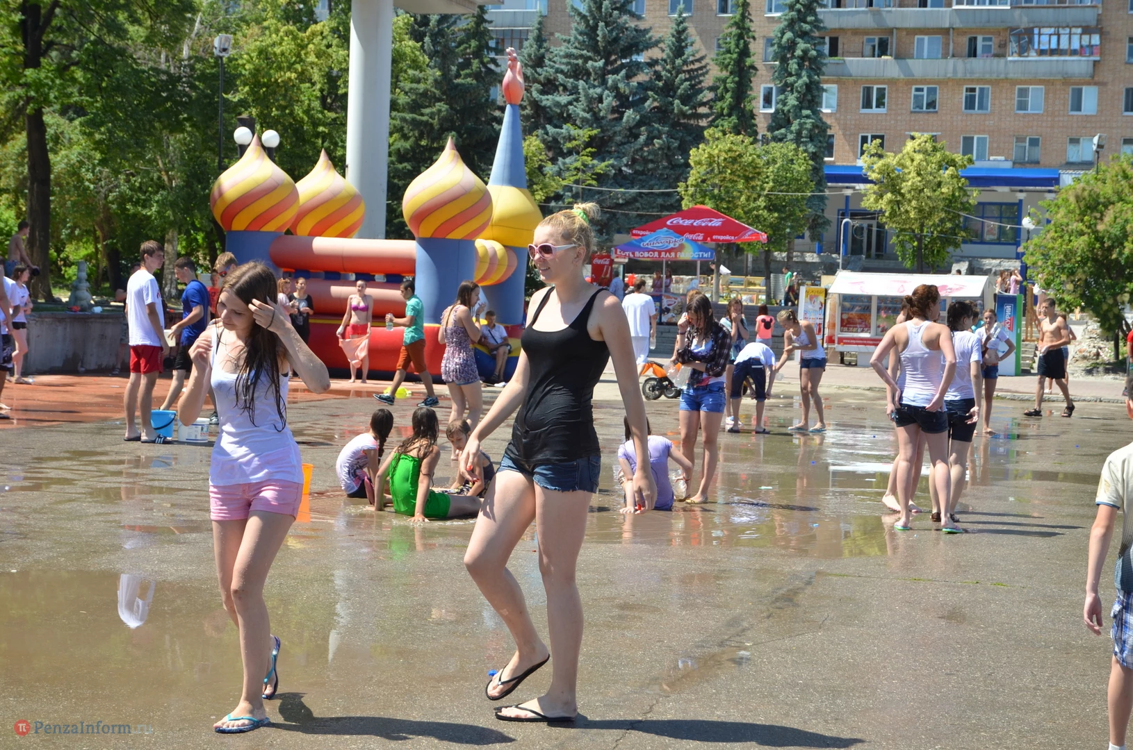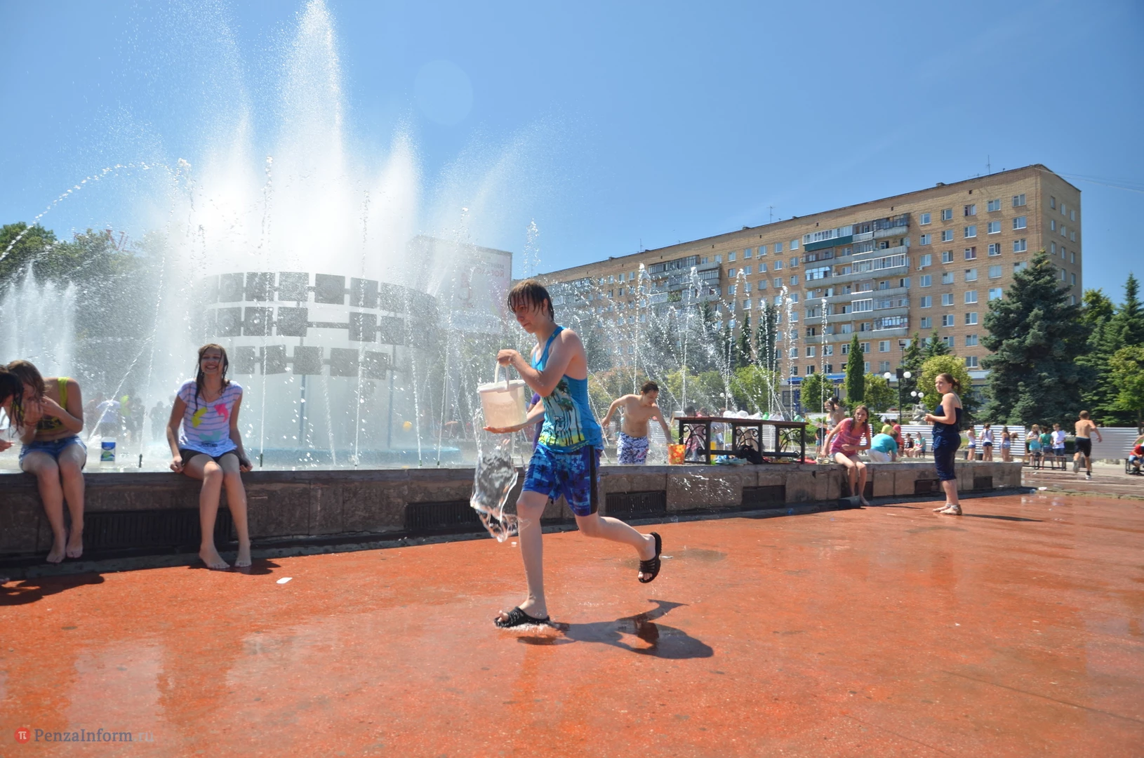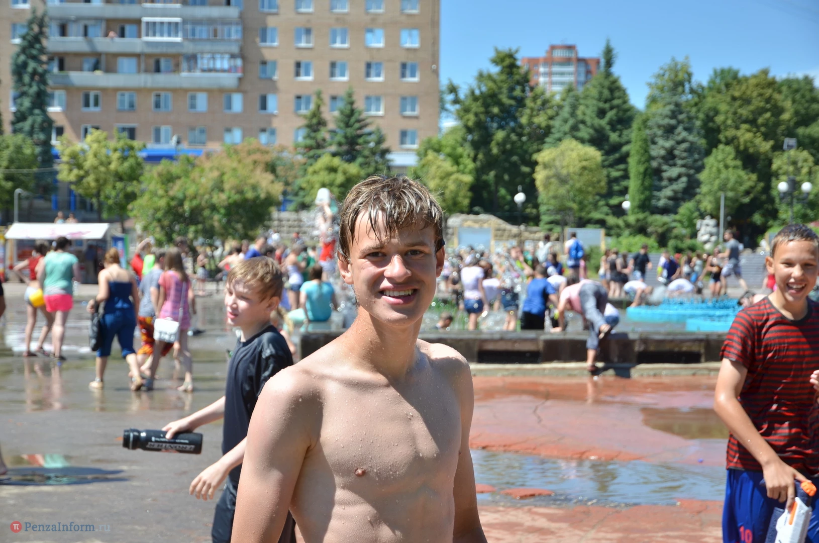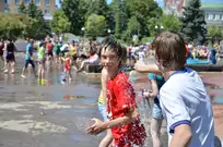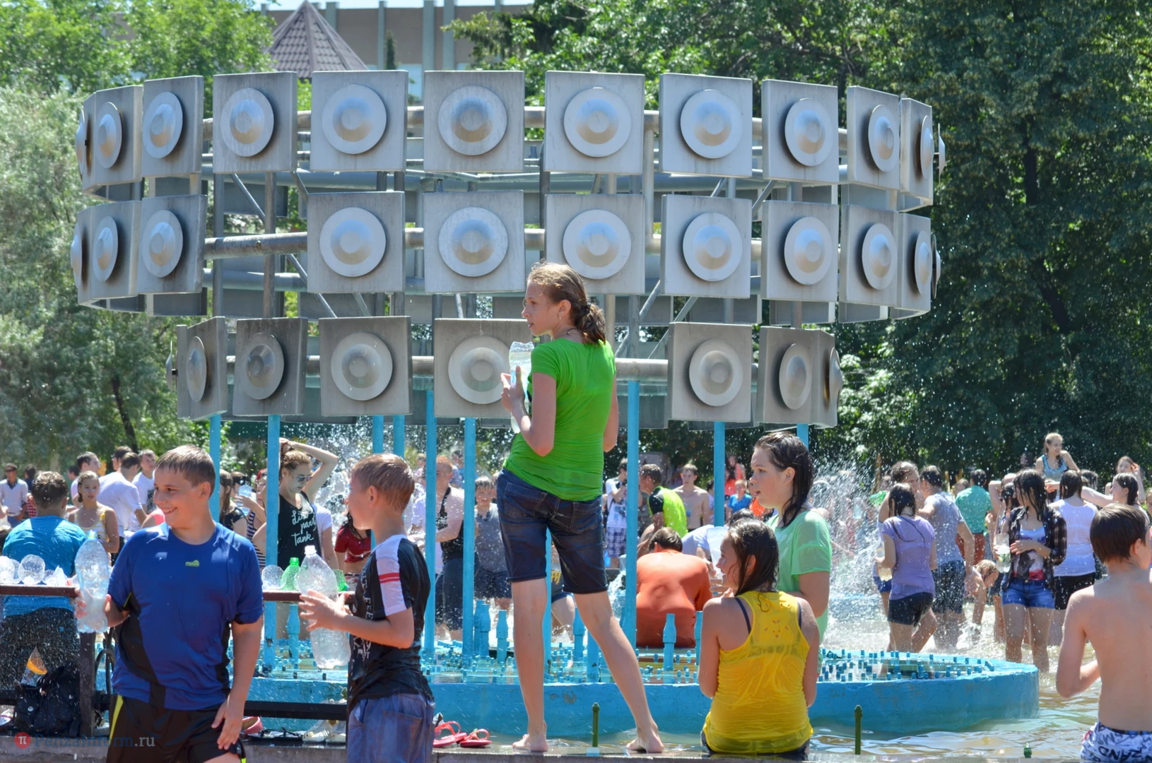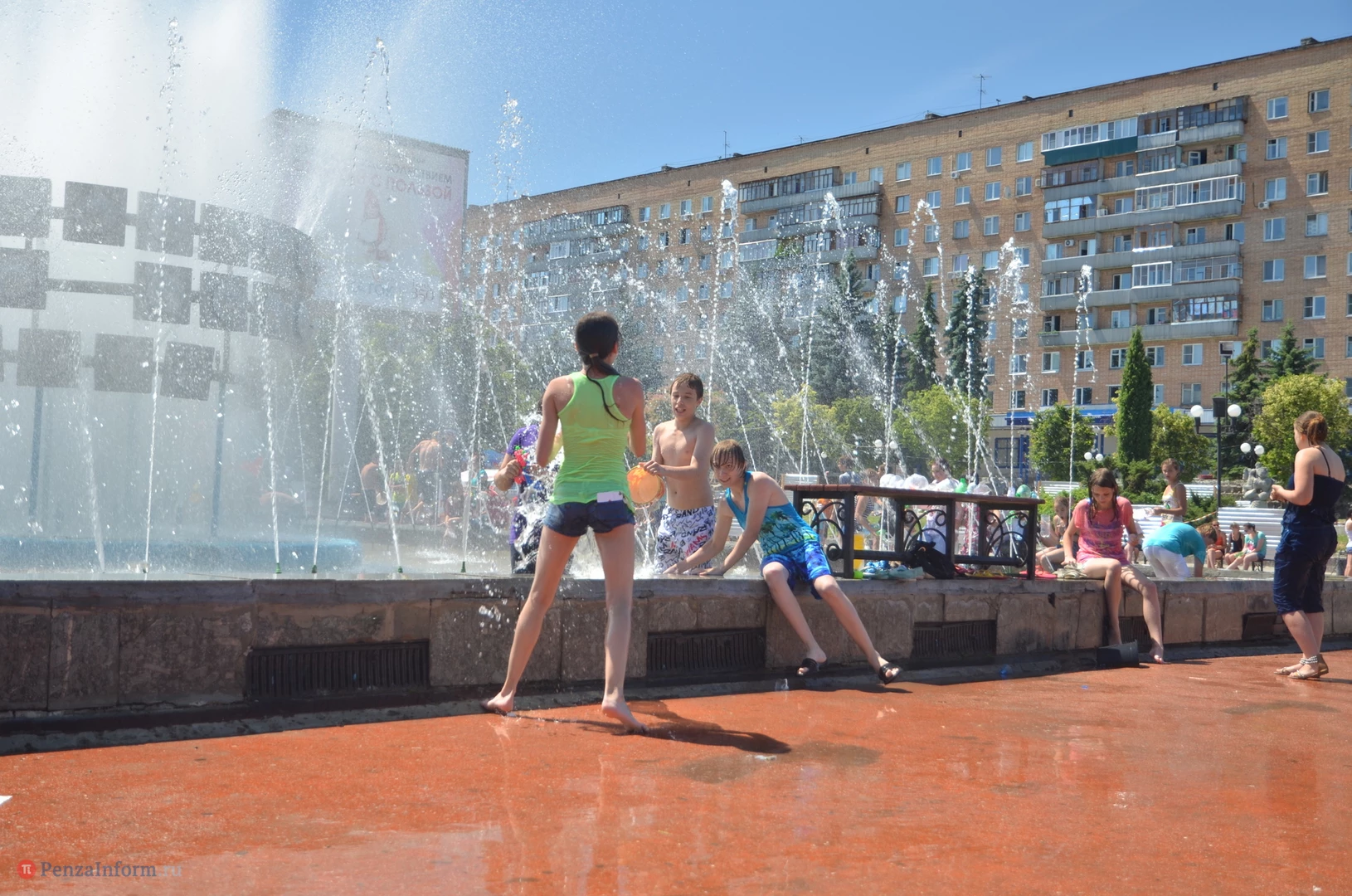 На Фонтанной площади произошло настоящее побоище. В ход шли пистолеты, бутылки, банки и тяжелая артиллерия - ведра. Вся площадь была залита водой. В раскаленном городе дети получили возможность вдоволь понарушать - побегать по фонтану, облить водой всех и вся. Самое веселье началось в час дня, когда начали иссякать боеприпасы - был включен фонтан.