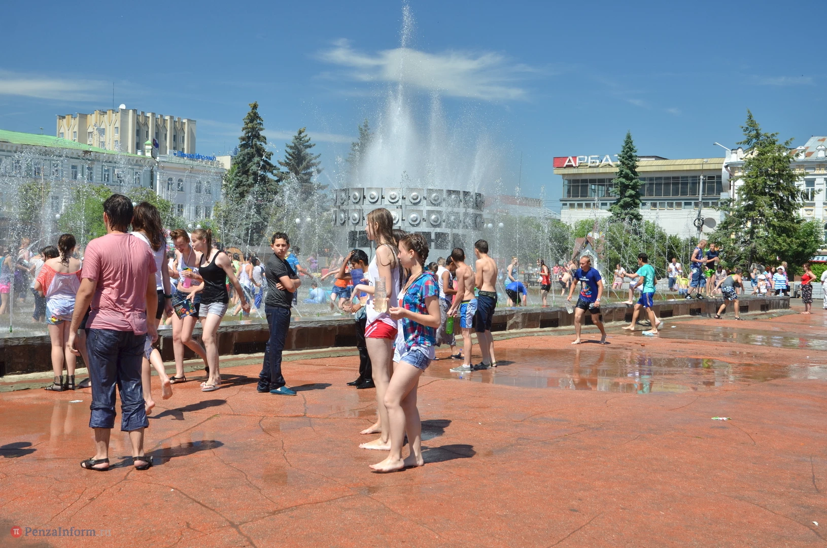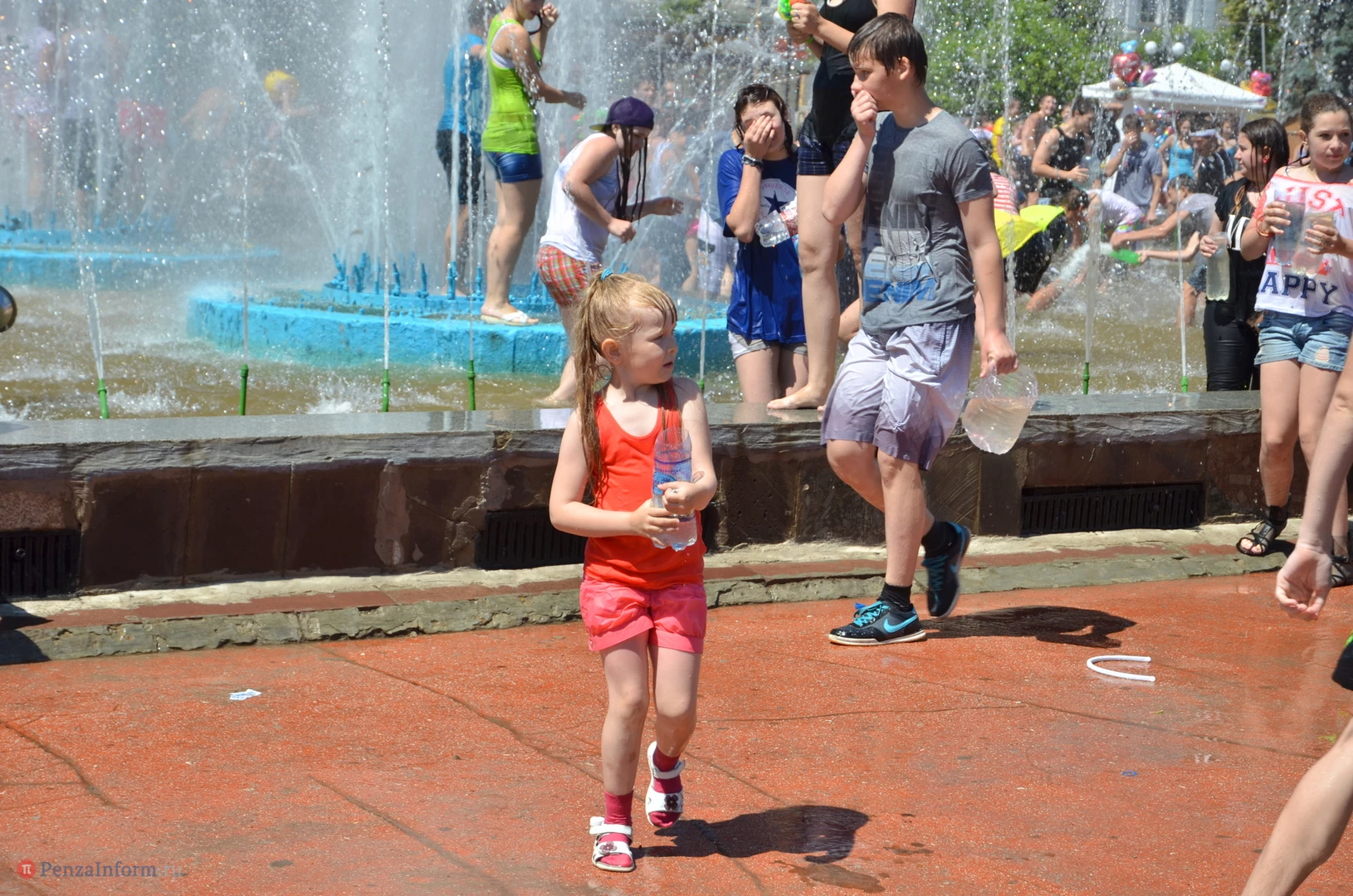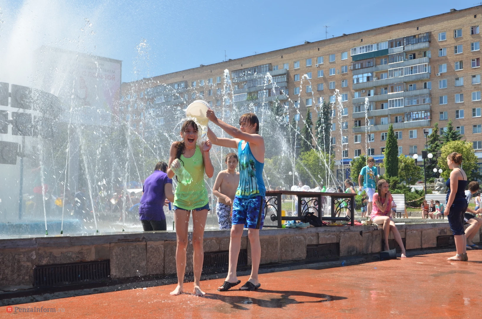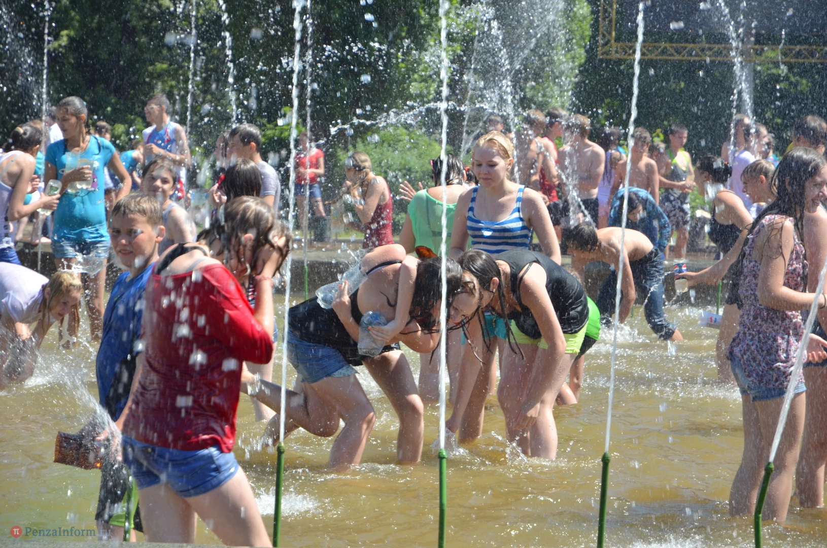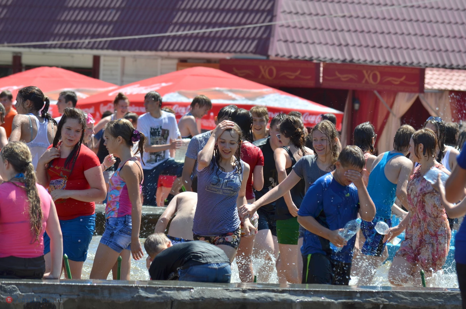 На Фонтанной площади произошло настоящее побоище. В ход шли пистолеты, бутылки, банки и тяжелая артиллерия - ведра. Вся площадь была залита водой. В раскаленном городе дети получили возможность вдоволь понарушать - побегать по фонтану, облить водой всех и вся. Самое веселье началось в час дня, когда начали иссякать боеприпасы - был включен фонтан.