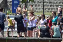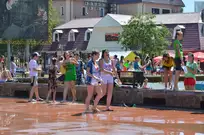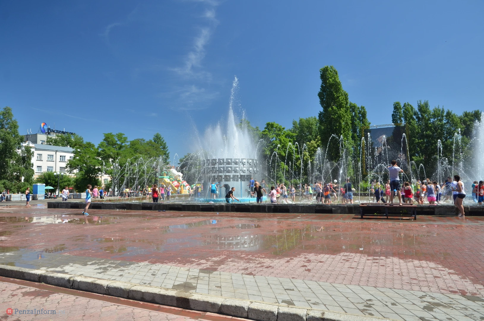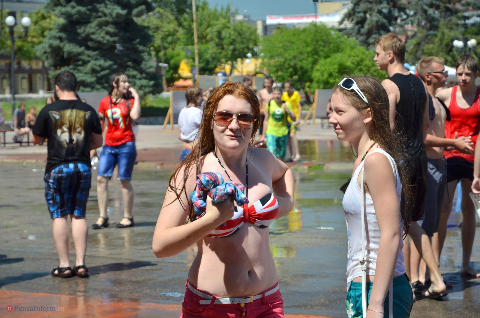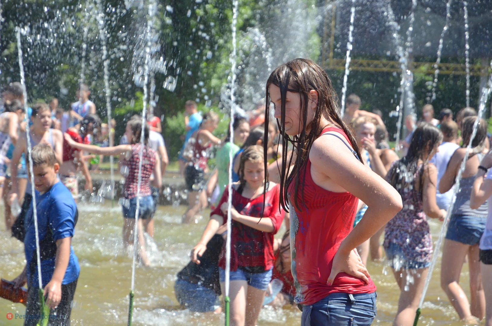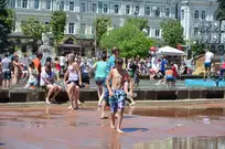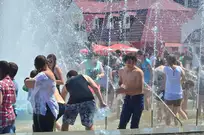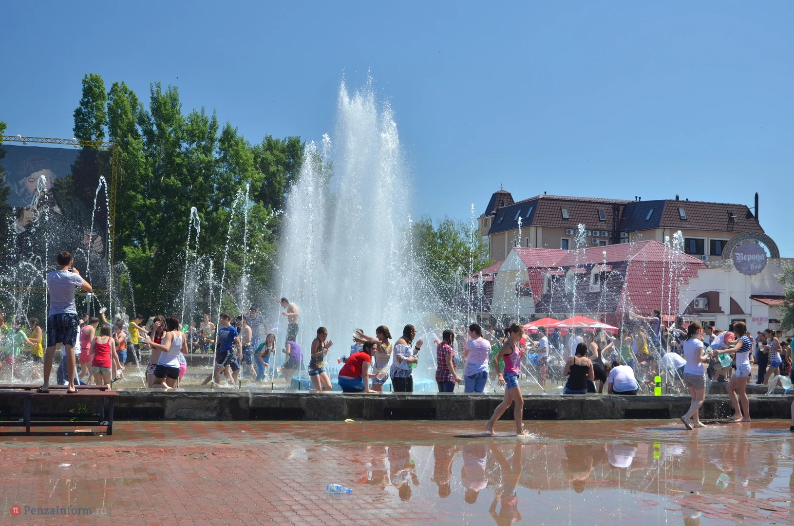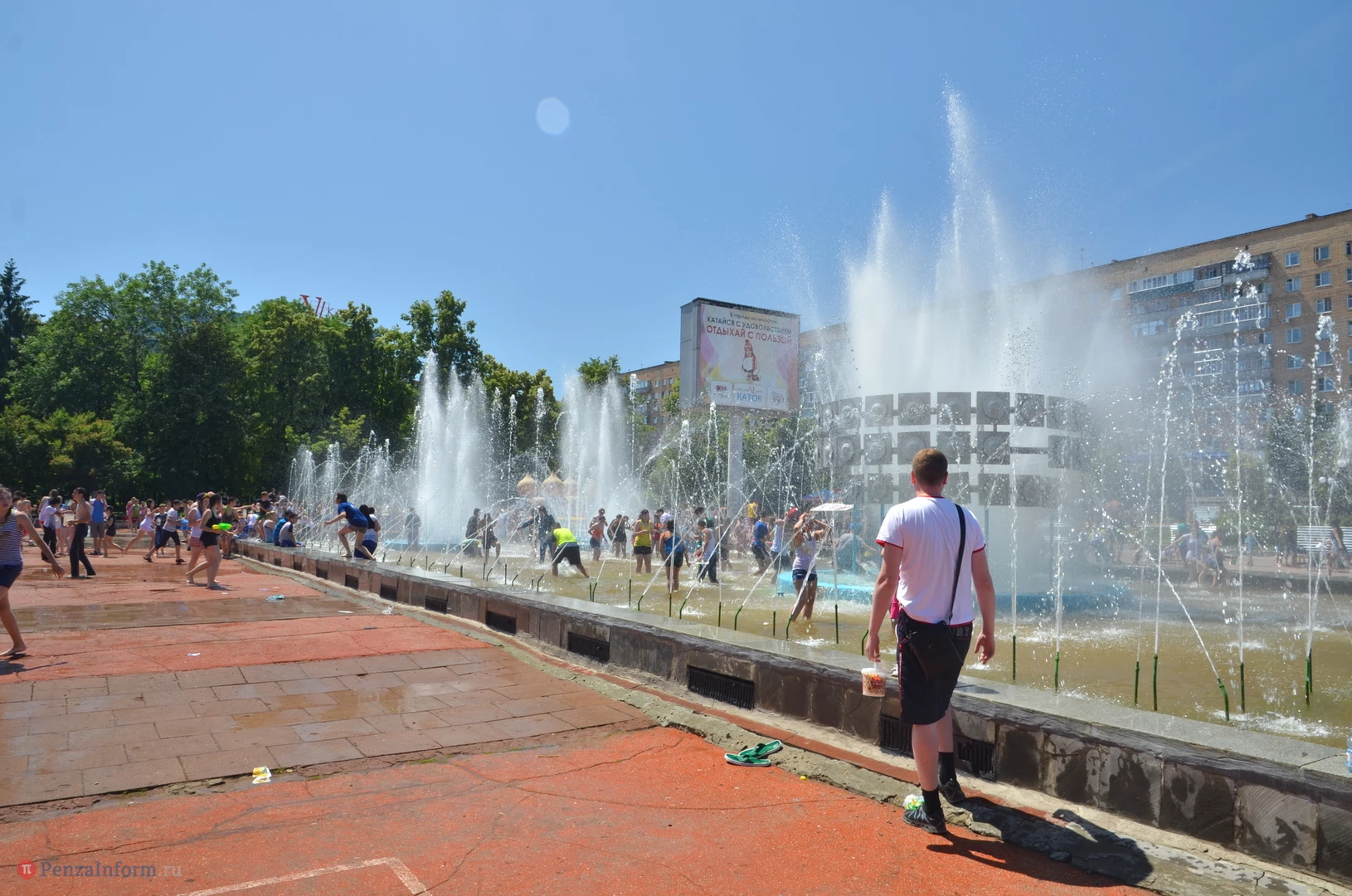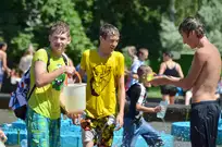 На Фонтанной площади произошло настоящее побоище. В ход шли пистолеты, бутылки, банки и тяжелая артиллерия - ведра. Вся площадь была залита водой. В раскаленном городе дети получили возможность вдоволь понарушать - побегать по фонтану, облить водой всех и вся. Самое веселье началось в час дня, когда начали иссякать боеприпасы - был включен фонтан.