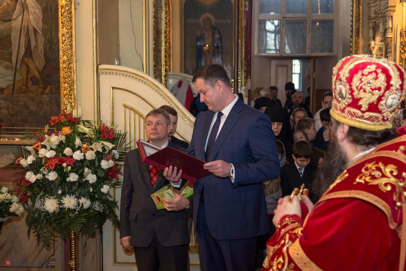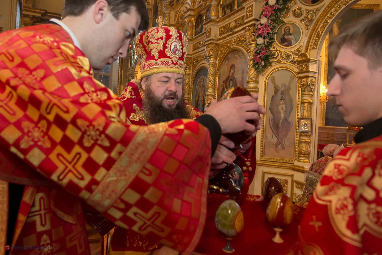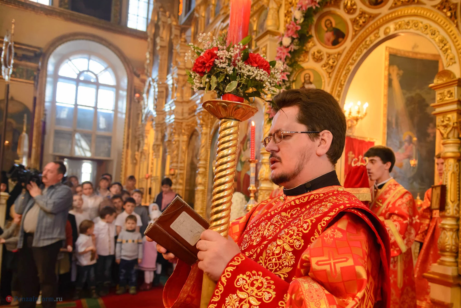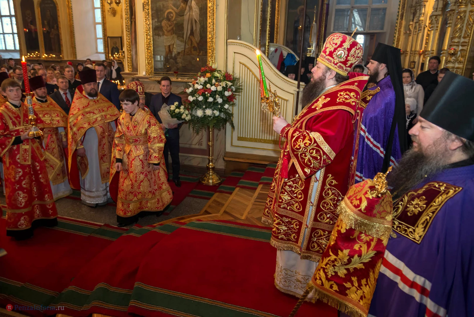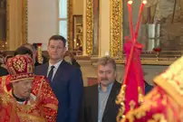 В церкви Благовещения пресвятой Богородицы прошла пасхальная служба с участием представителей власти города и области.