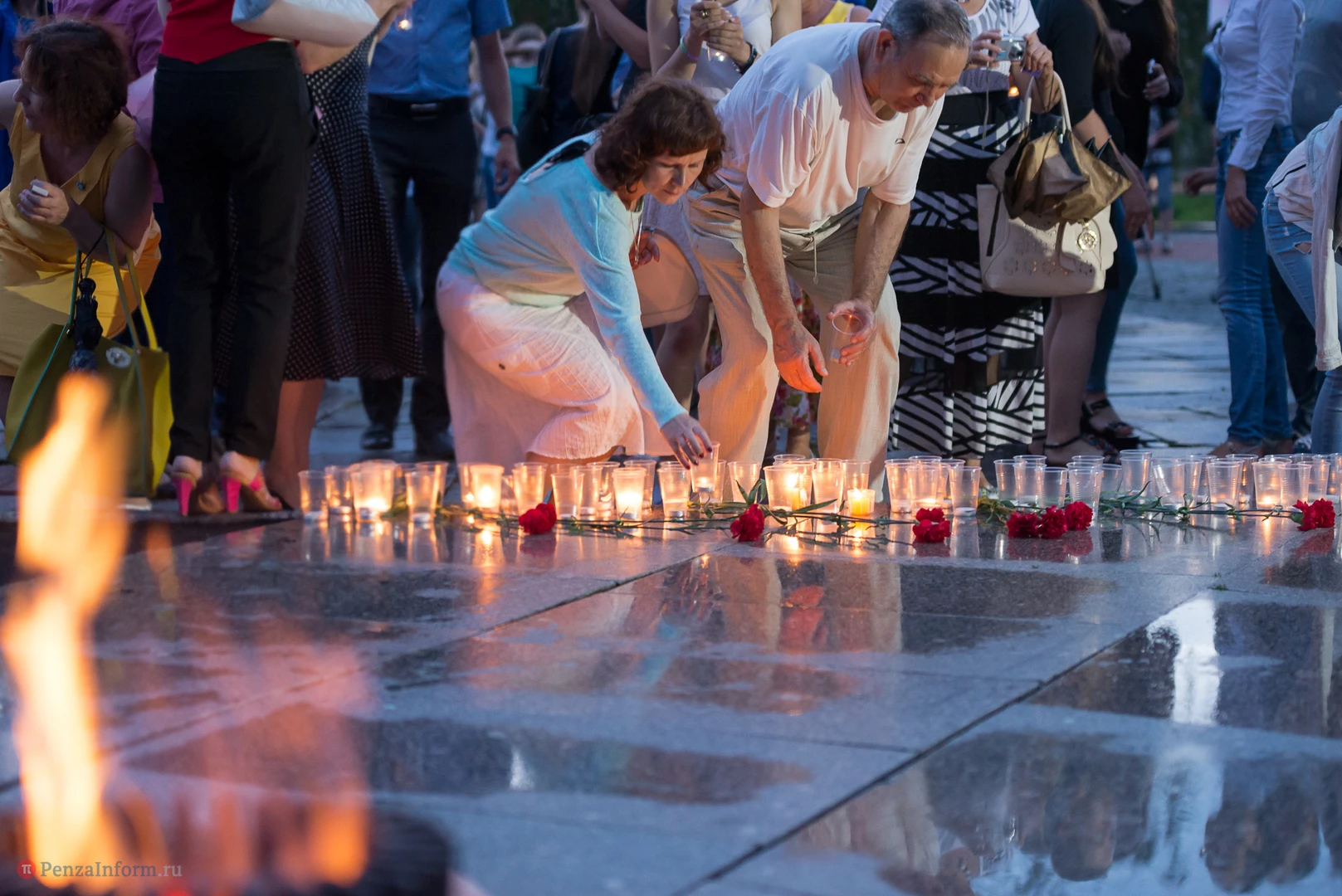 В канун отмечаемого теперь Дня памяти и скорби, вечером 21 июня у Монумента воинской и трудовой славы на площади Победы в Пензе прошла акция «Свеча памяти».