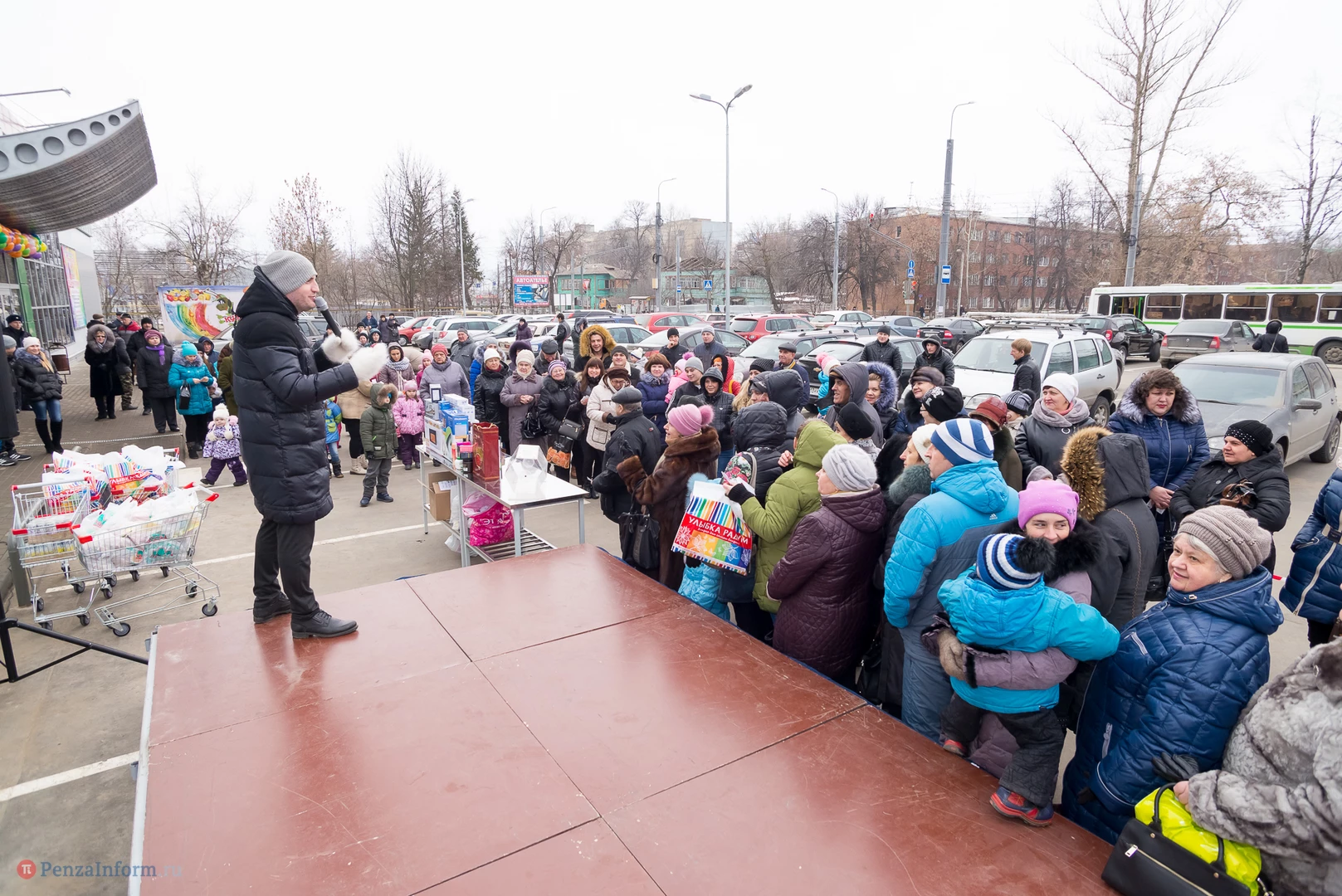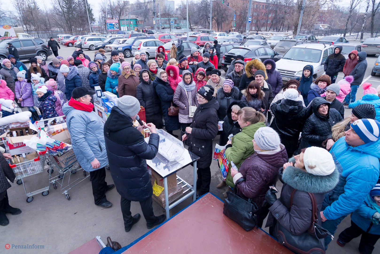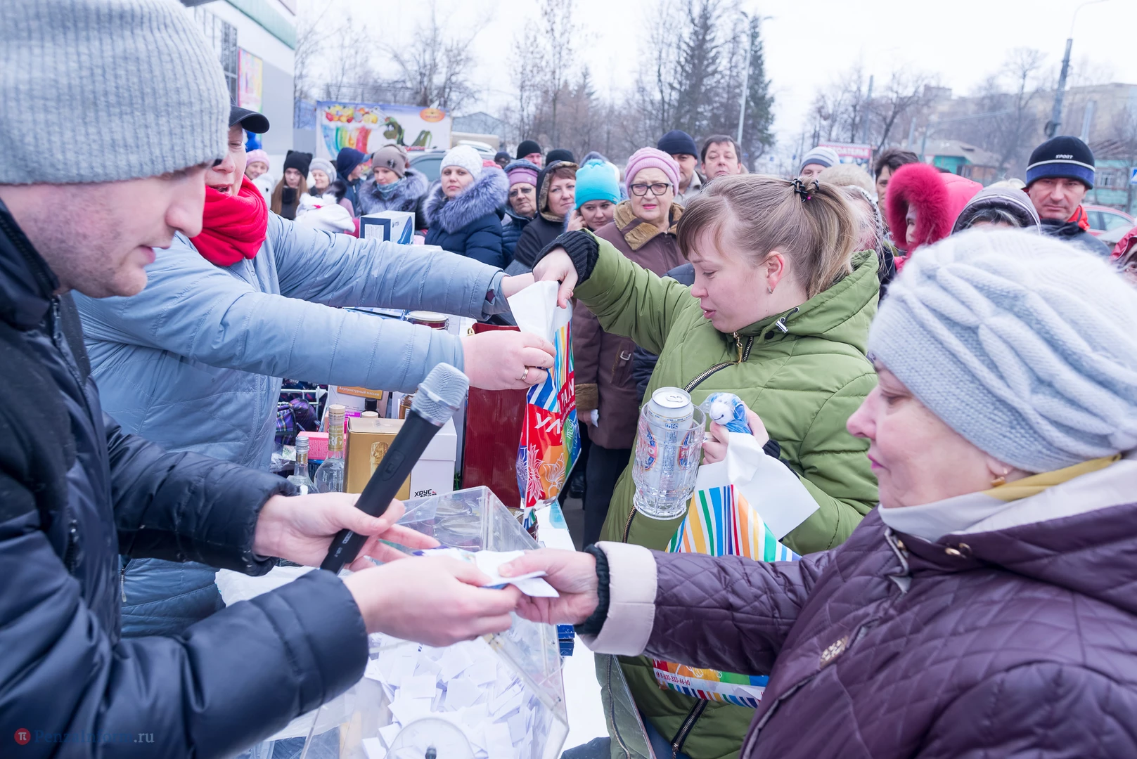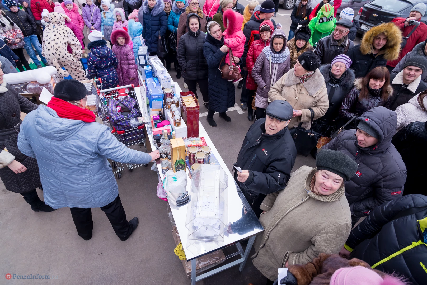 В этот день в беспроигрышную лотерею было разыграно около 450 призов: продовольственные наборы от «Каравана», подарки от «Улыбки радуги» в фирменных пакетах, утюги, фены, маникюрные наборы и микроволновка.
