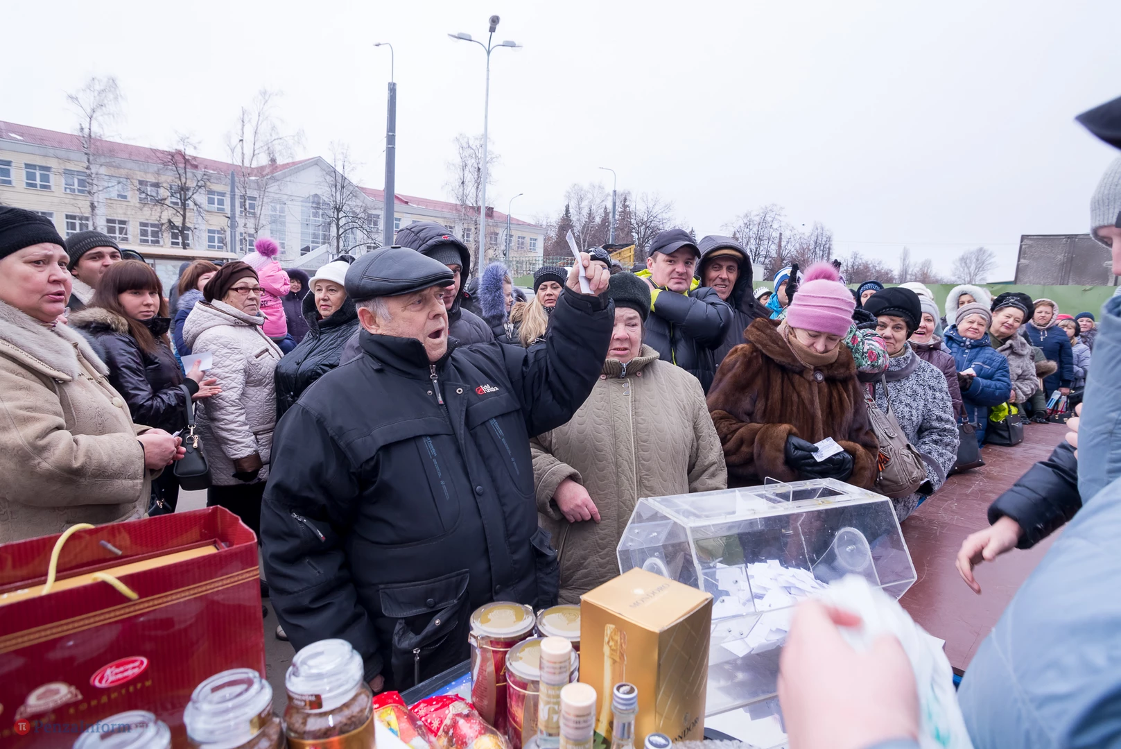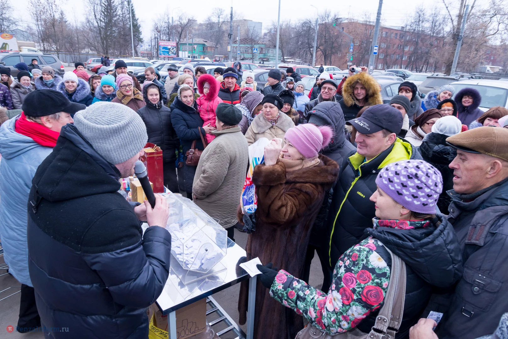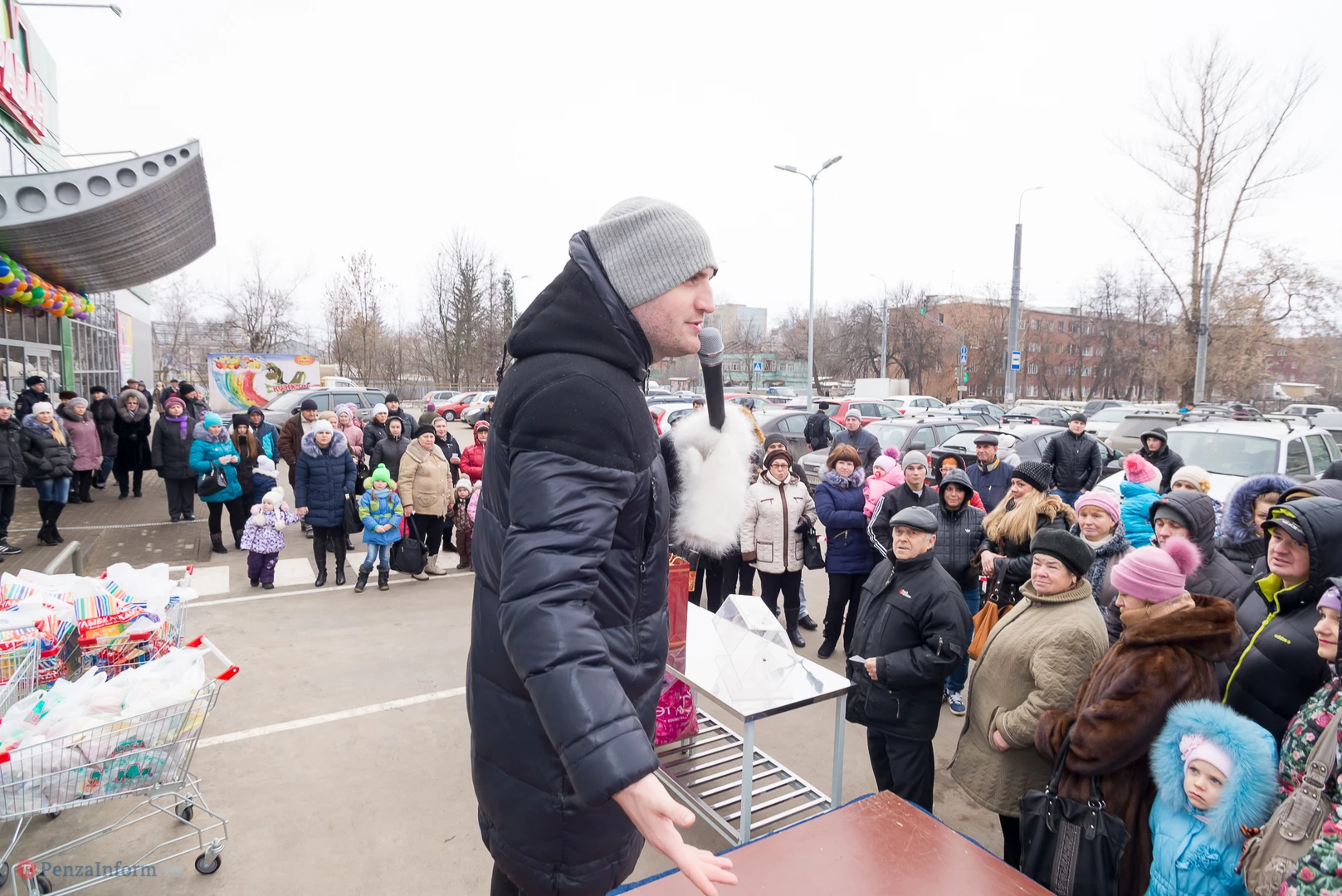 В этот день в беспроигрышную лотерею было разыграно около 450 призов: продовольственные наборы от «Каравана», подарки от «Улыбки радуги» в фирменных пакетах, утюги, фены, маникюрные наборы и микроволновка.