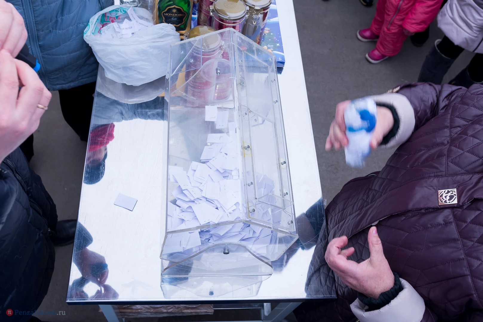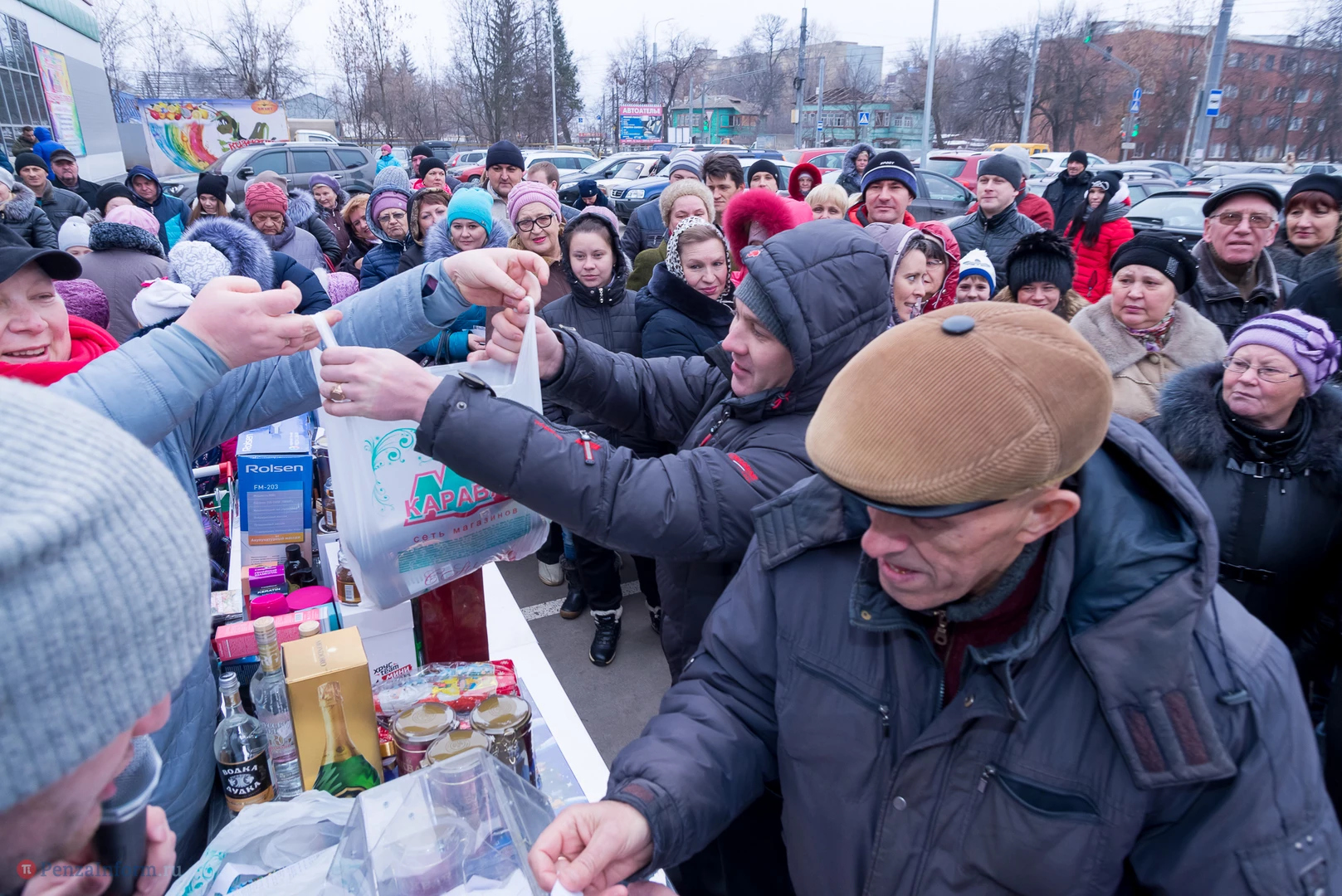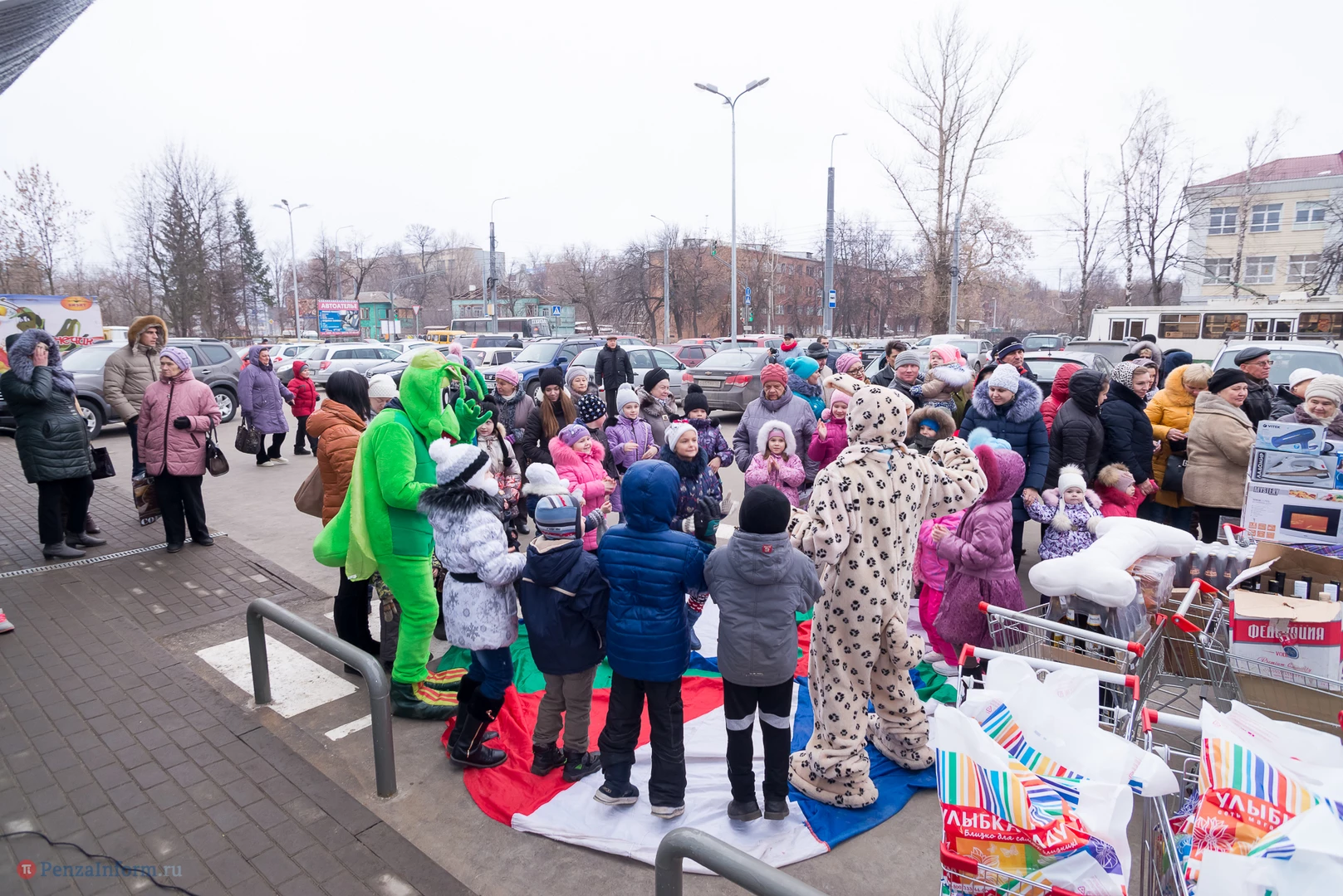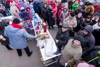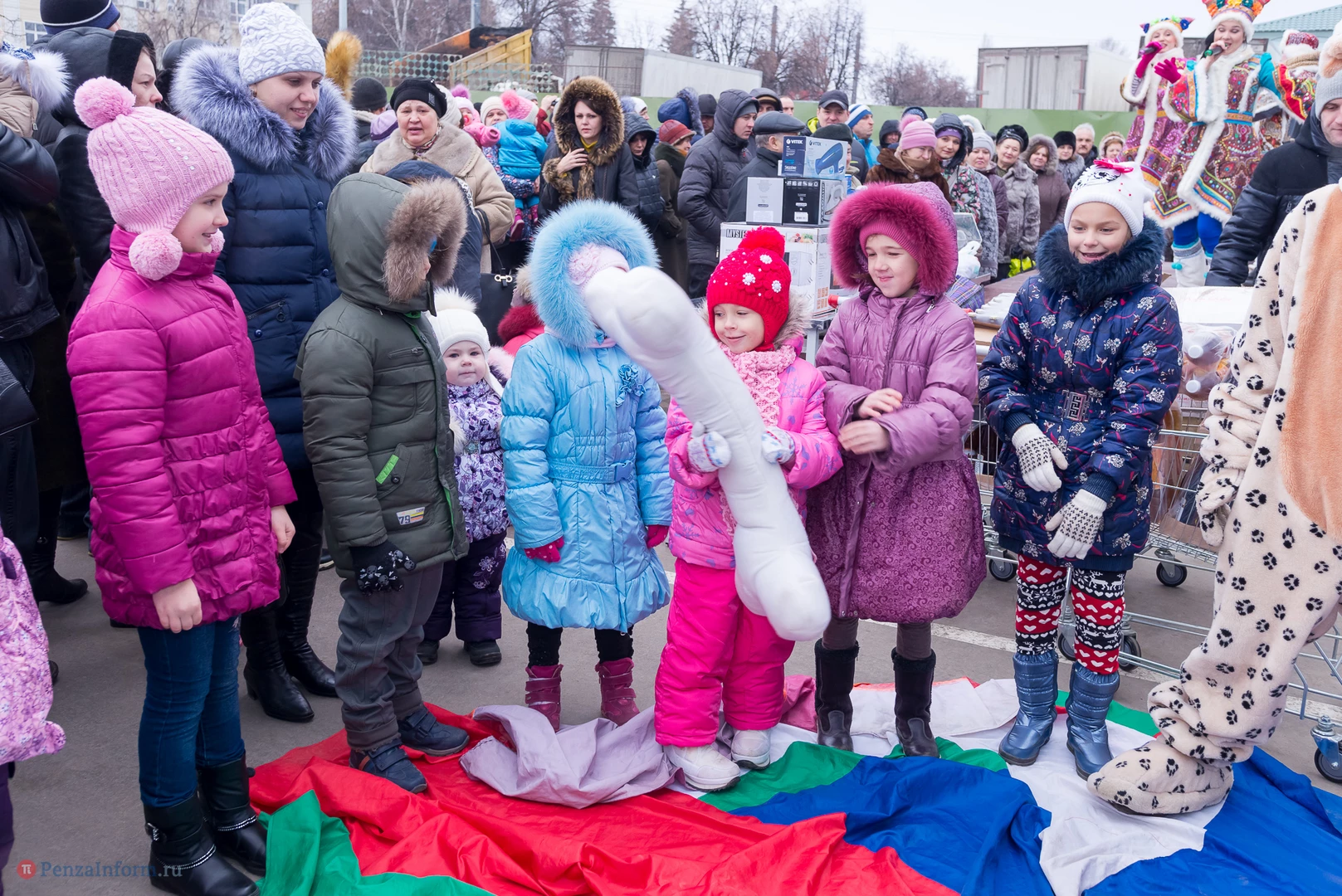 В этот день в беспроигрышную лотерею было разыграно около 450 призов: продовольственные наборы от «Каравана», подарки от «Улыбки радуги» в фирменных пакетах, утюги, фены, маникюрные наборы и микроволновка.