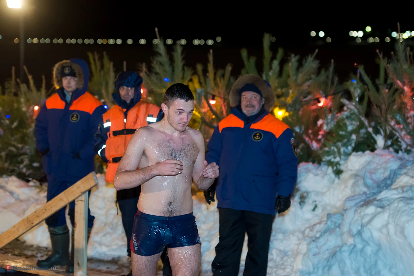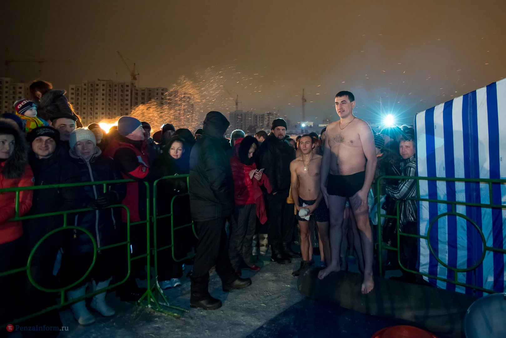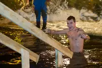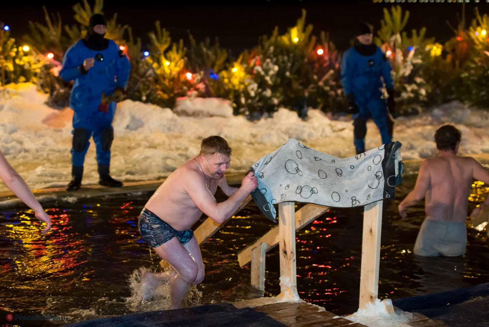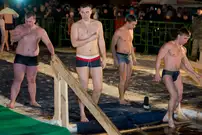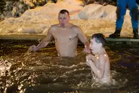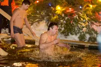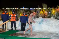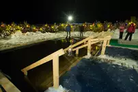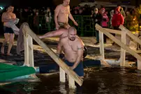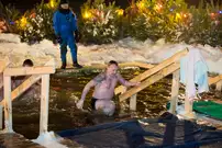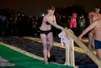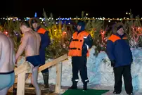 Одним из оборудованных мест крещенских купаний стала набережная Суры в Терновке. Несколько сотен горожан всех возрастов спешили окунуться в ледяную воду. А на берегу всех ждали угощение и горячий чай.