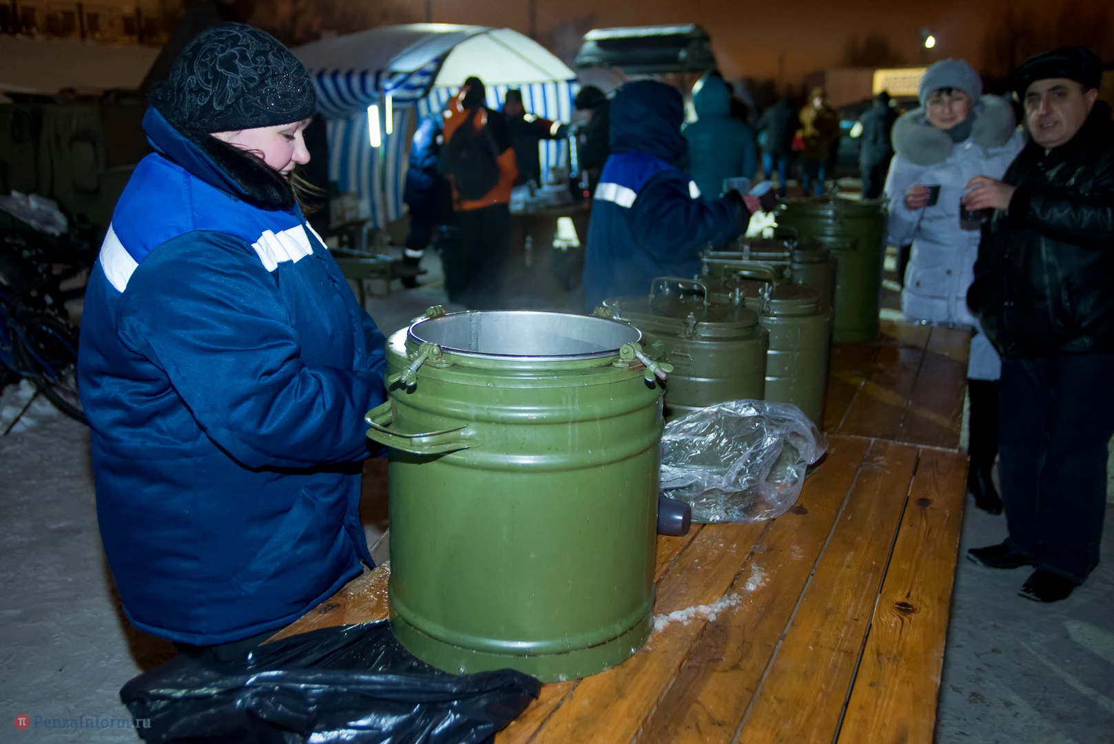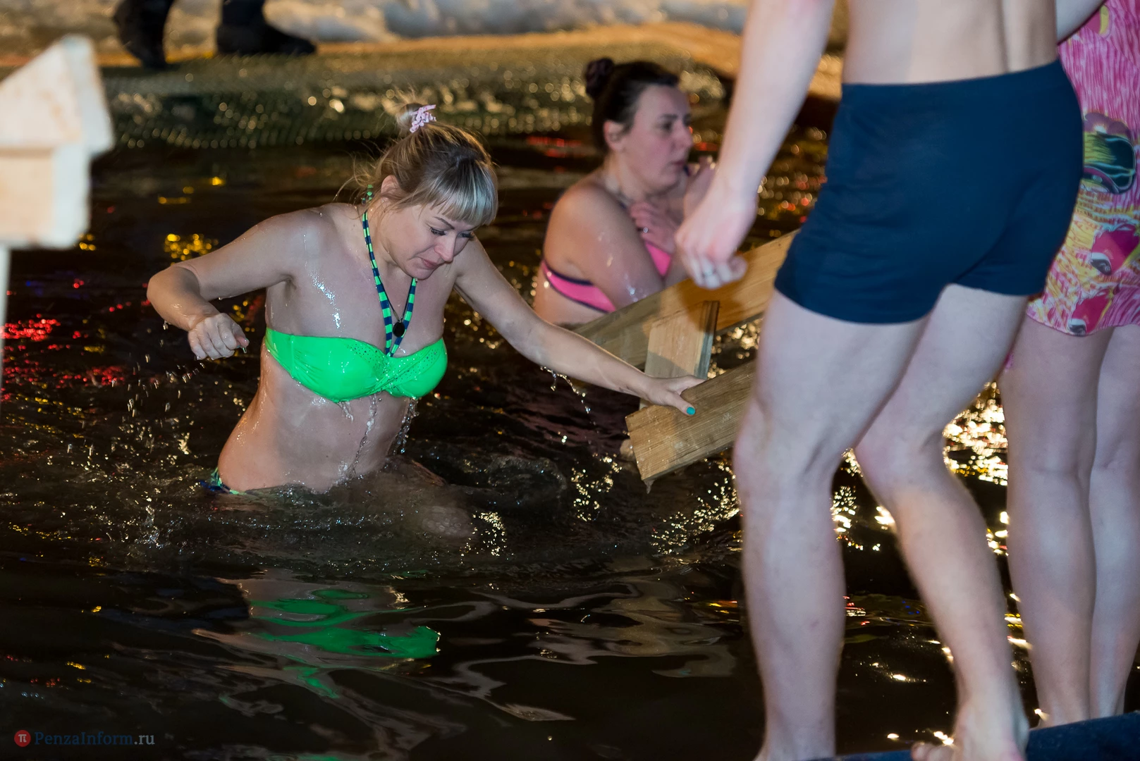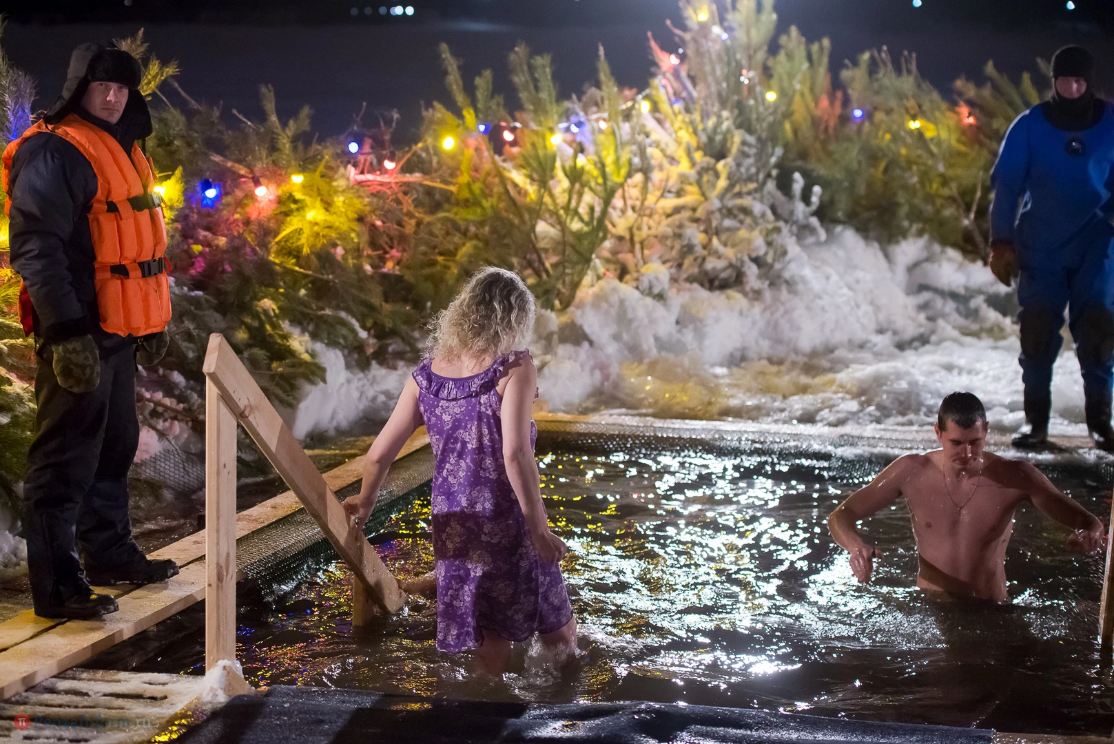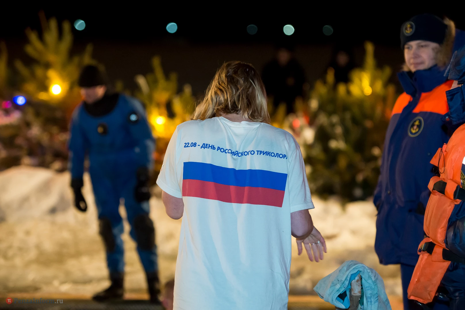 Одним из оборудованных мест крещенских купаний стала набережная Суры в Терновке. Несколько сотен горожан всех возрастов спешили окунуться в ледяную воду. А на берегу всех ждали угощение и горячий чай.