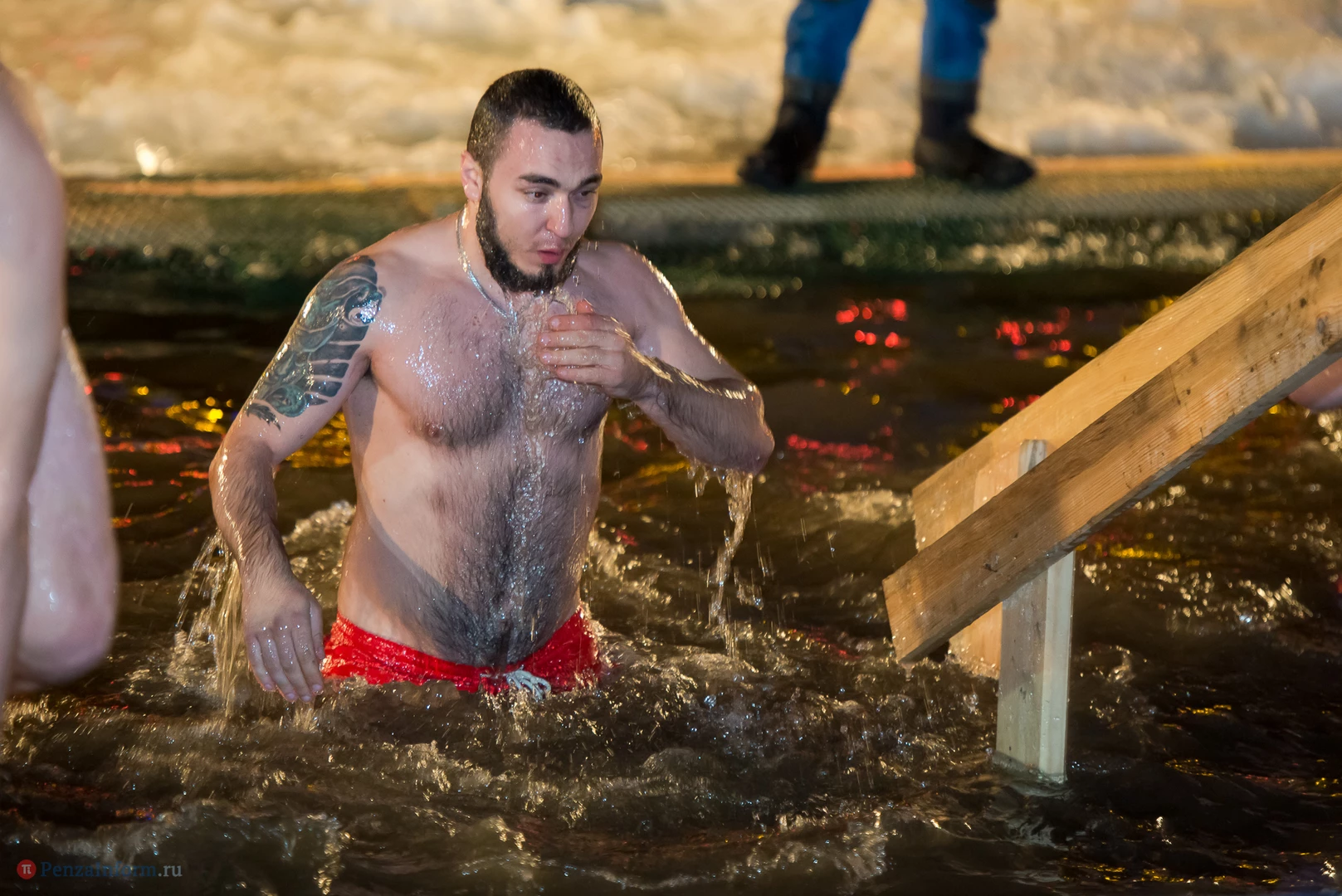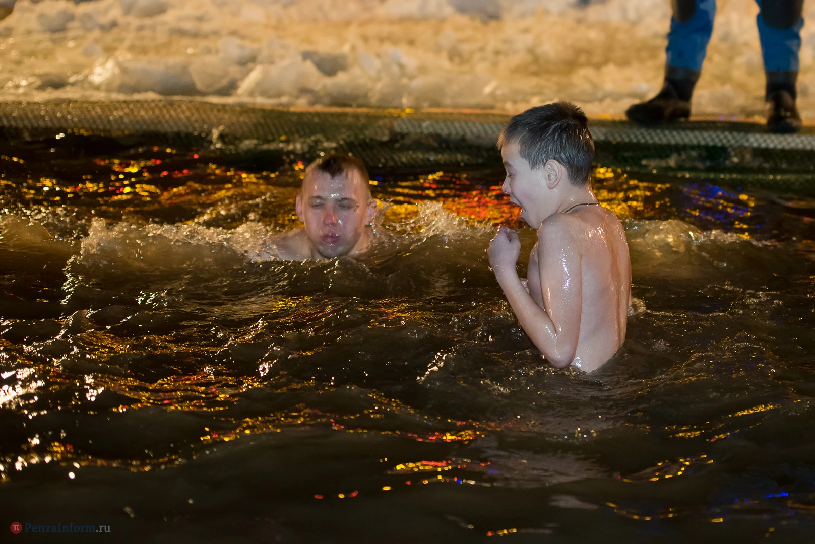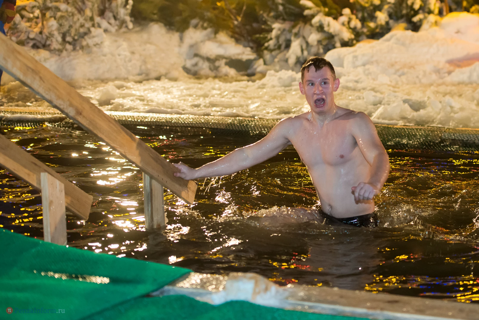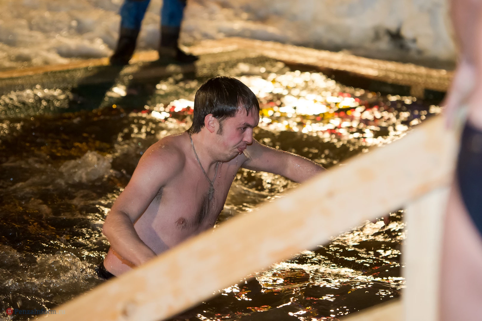 Одним из оборудованных мест крещенских купаний стала набережная Суры в Терновке. Несколько сотен горожан всех возрастов спешили окунуться в ледяную воду. А на берегу всех ждали угощение и горячий чай.