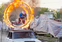 В Пензе прошли гастроли знаменитого Московского театра спортивно-зрелищных представлений «Каскадер». За свою 22-летнюю историю труппа объездила всю Россию и многие зарубежные страны. Участники автородео - только высококвалифицированные спортсмены (раллисты, кроссовики), артисты и каскадеры высшей категории.