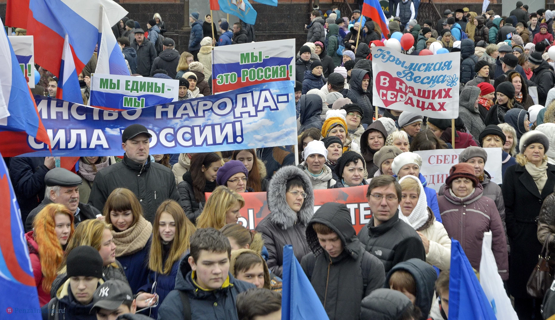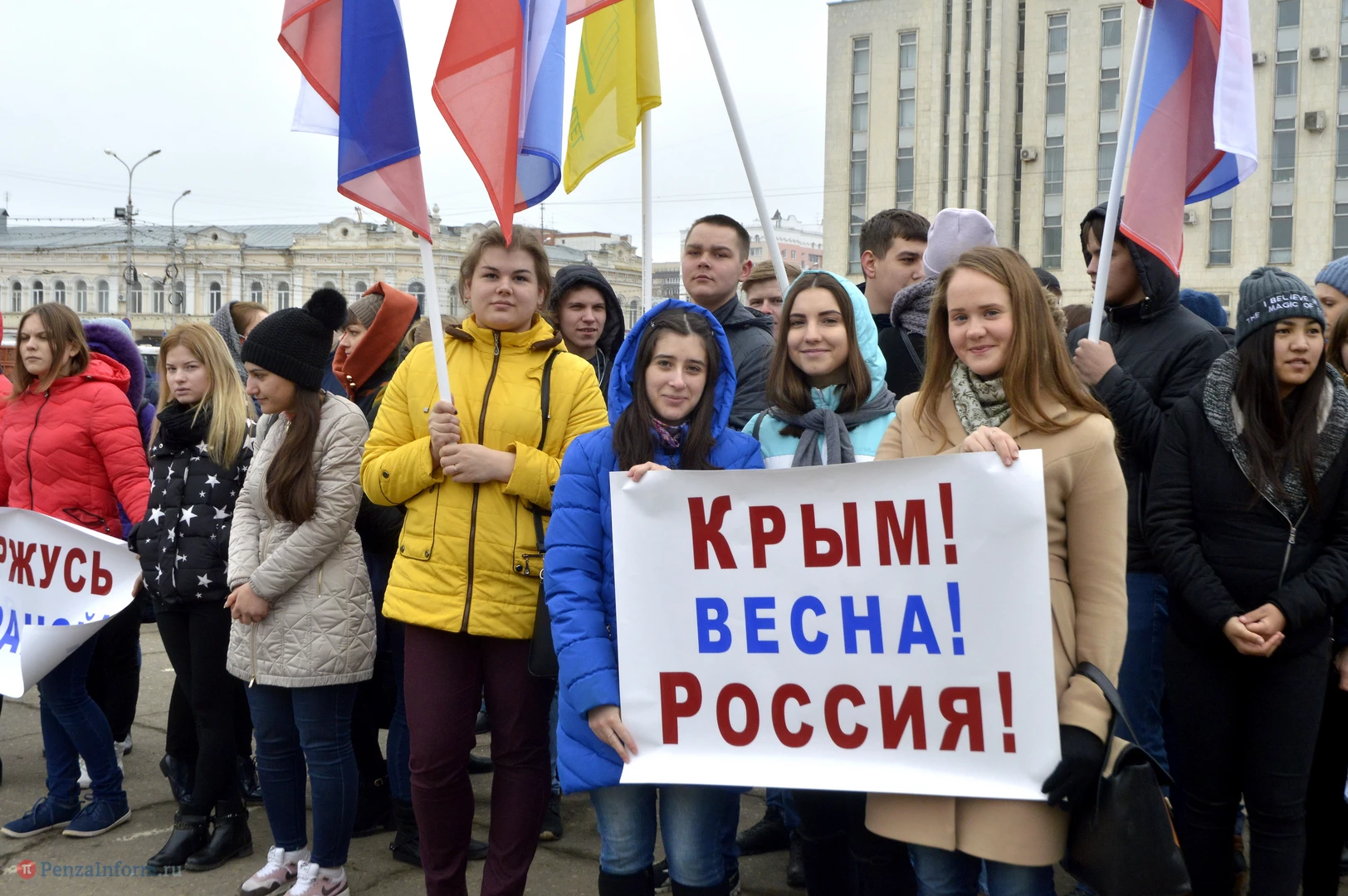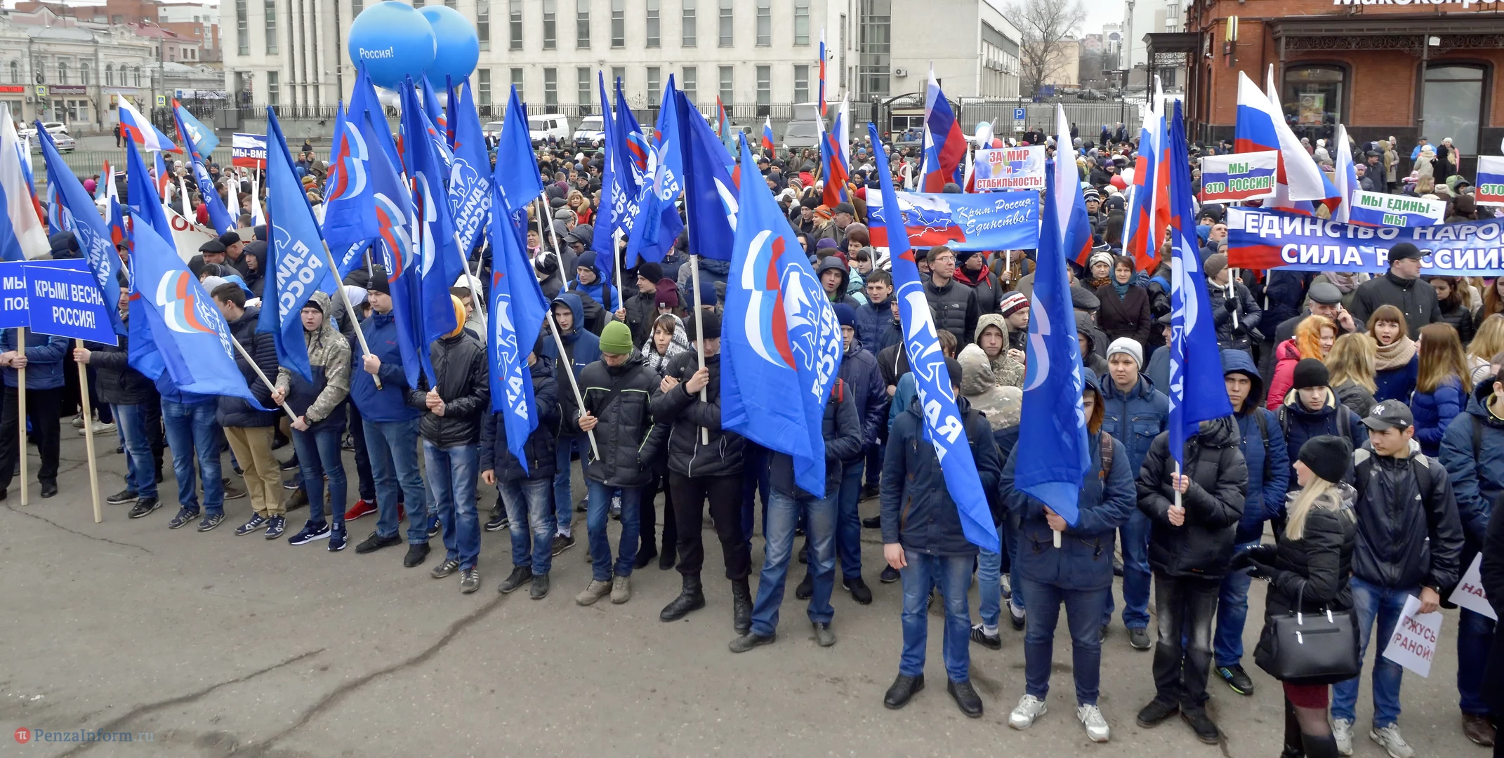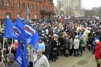 18 марта 2014 года состоялся акт воссоединения нашей страны с Крымом. В честь трехлетия этого события возле здания правительства области провели весеннюю демонстрацию.