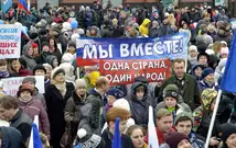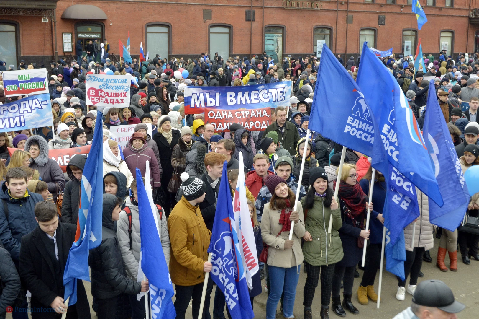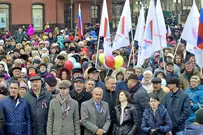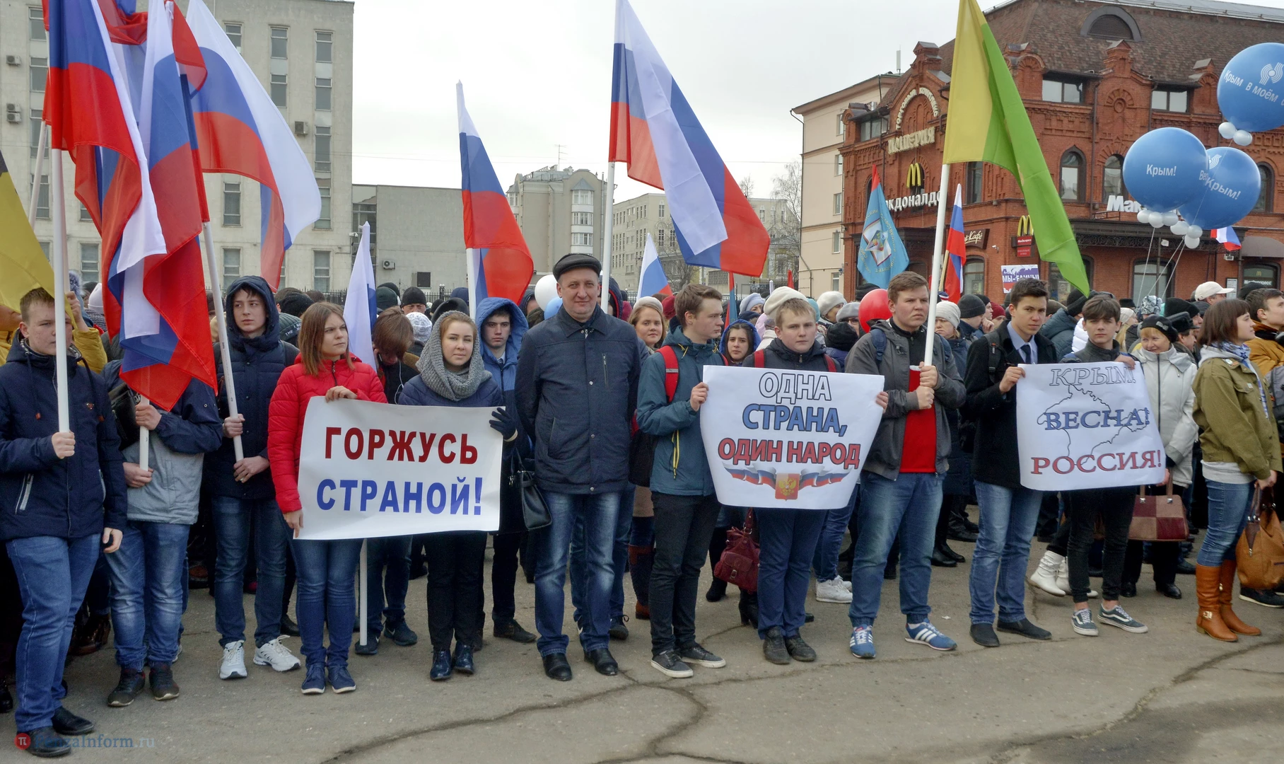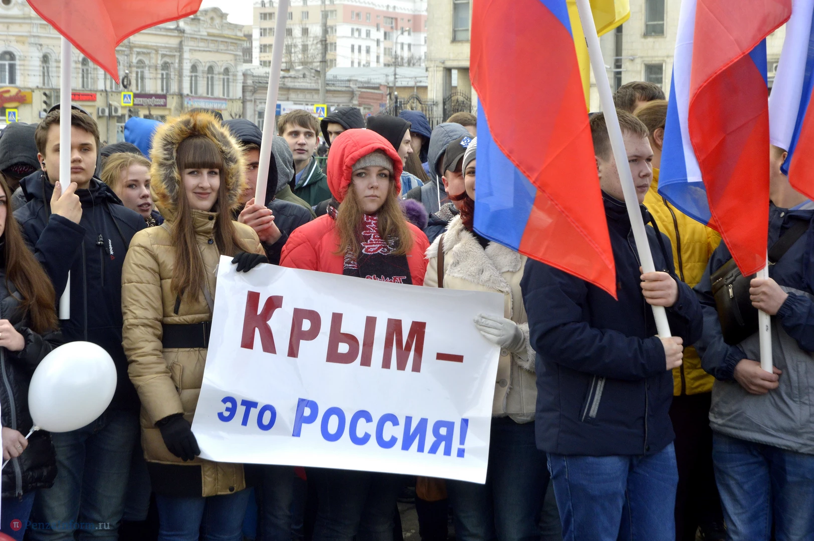 18 марта 2014 года состоялся акт воссоединения нашей страны с Крымом. В честь трехлетия этого события возле здания правительства области провели весеннюю демонстрацию.