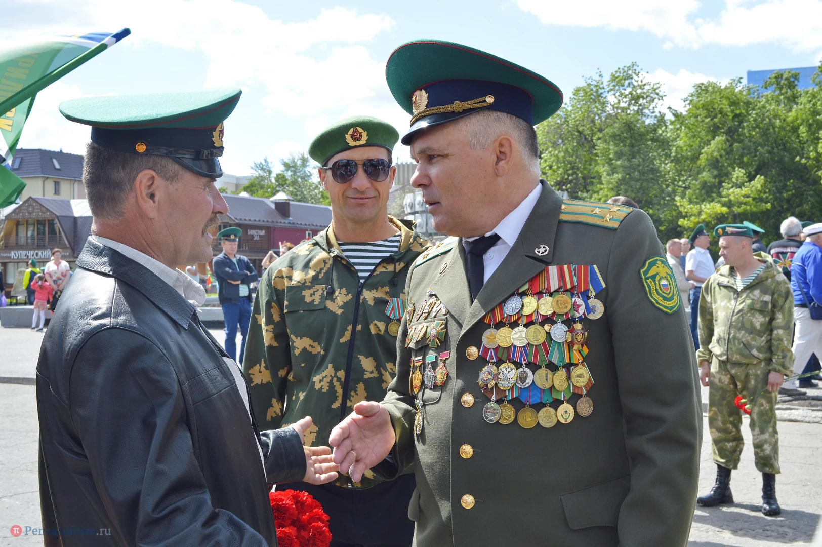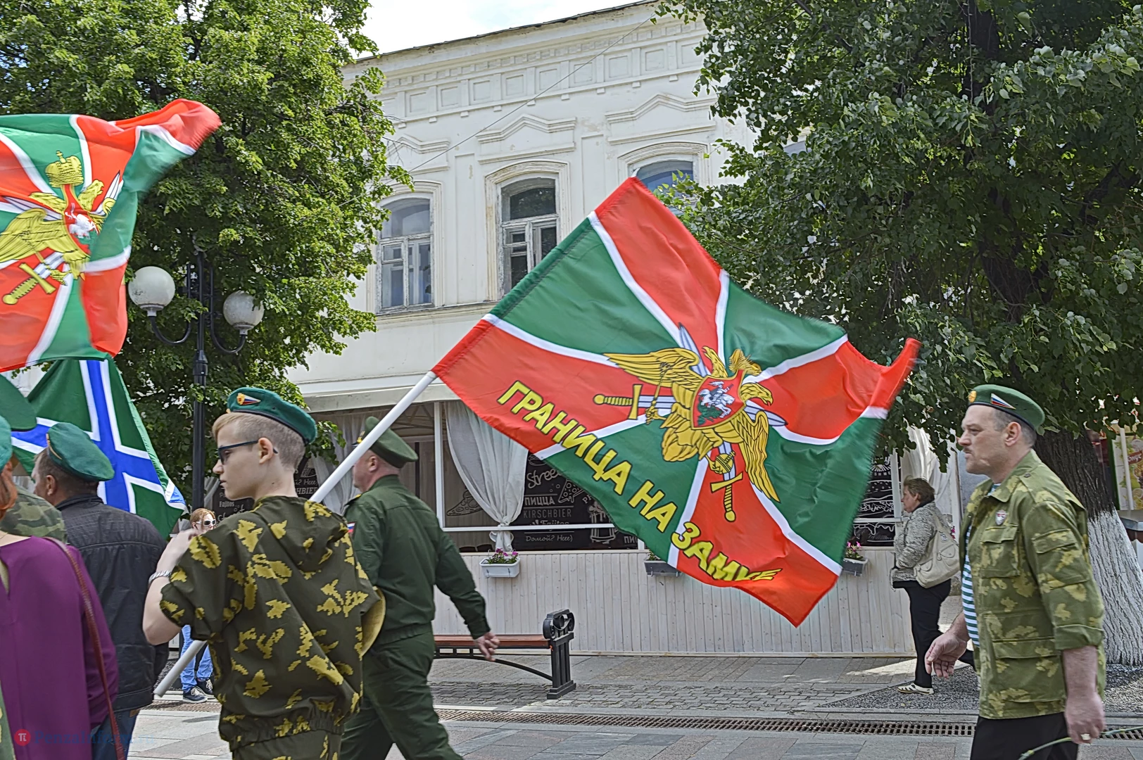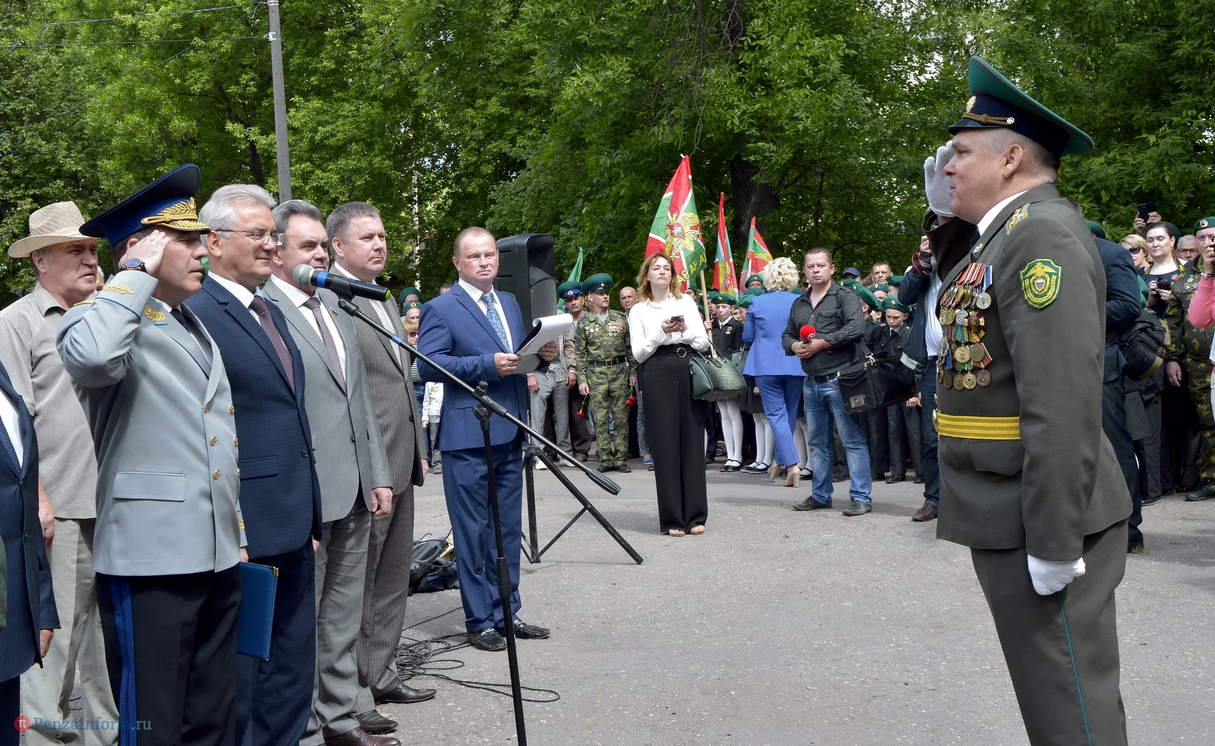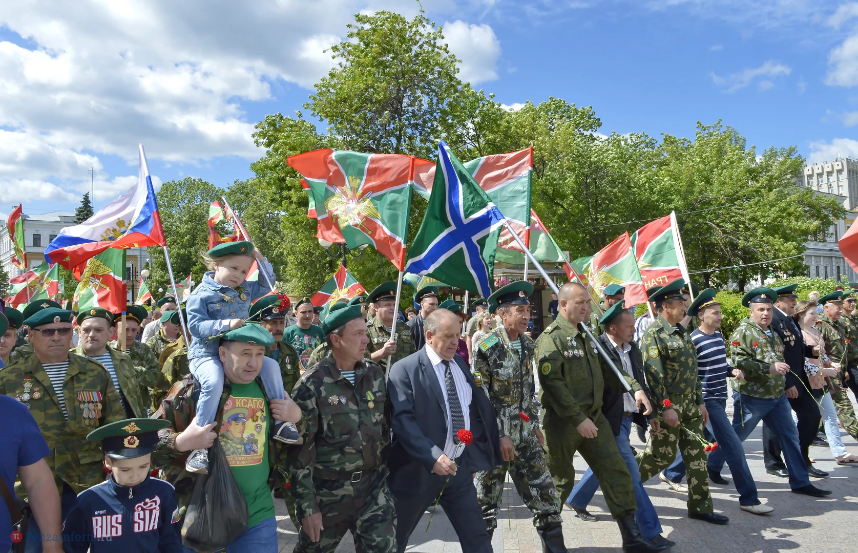 Только раз в году Фонтанная площадь в Пензе окрашивается в зеленый цвет. 28 мая задолго до начала торжественного шествия на ней собрались те, кто защищал рубежи государства. Пограничная служба ФСБ России отметила вековой юбилей.