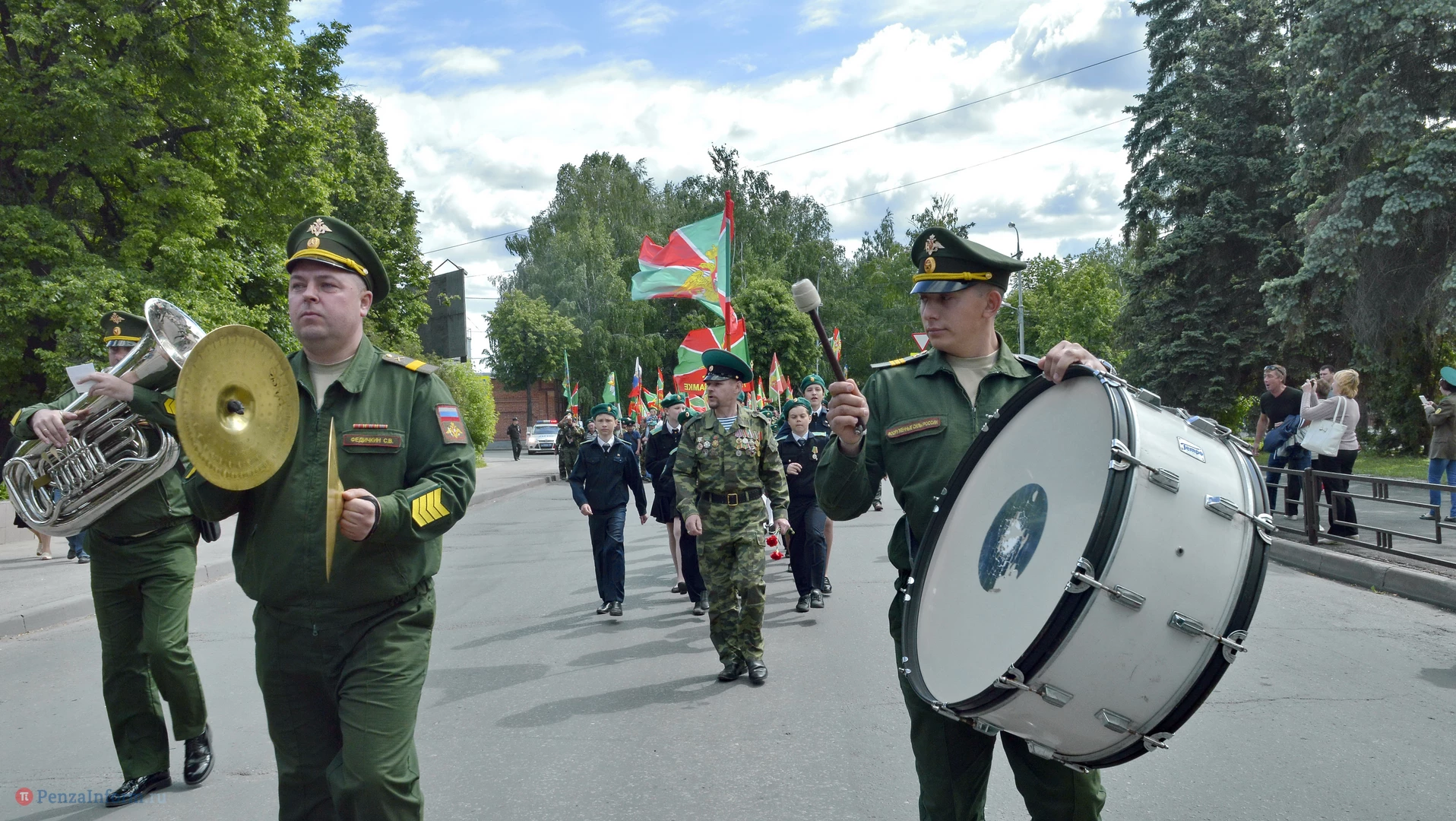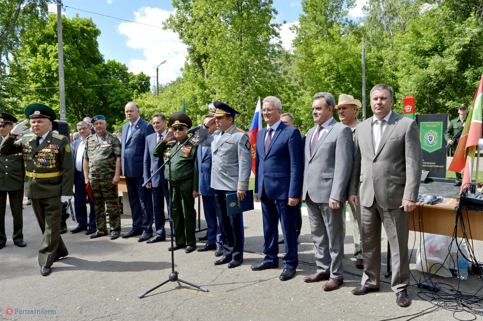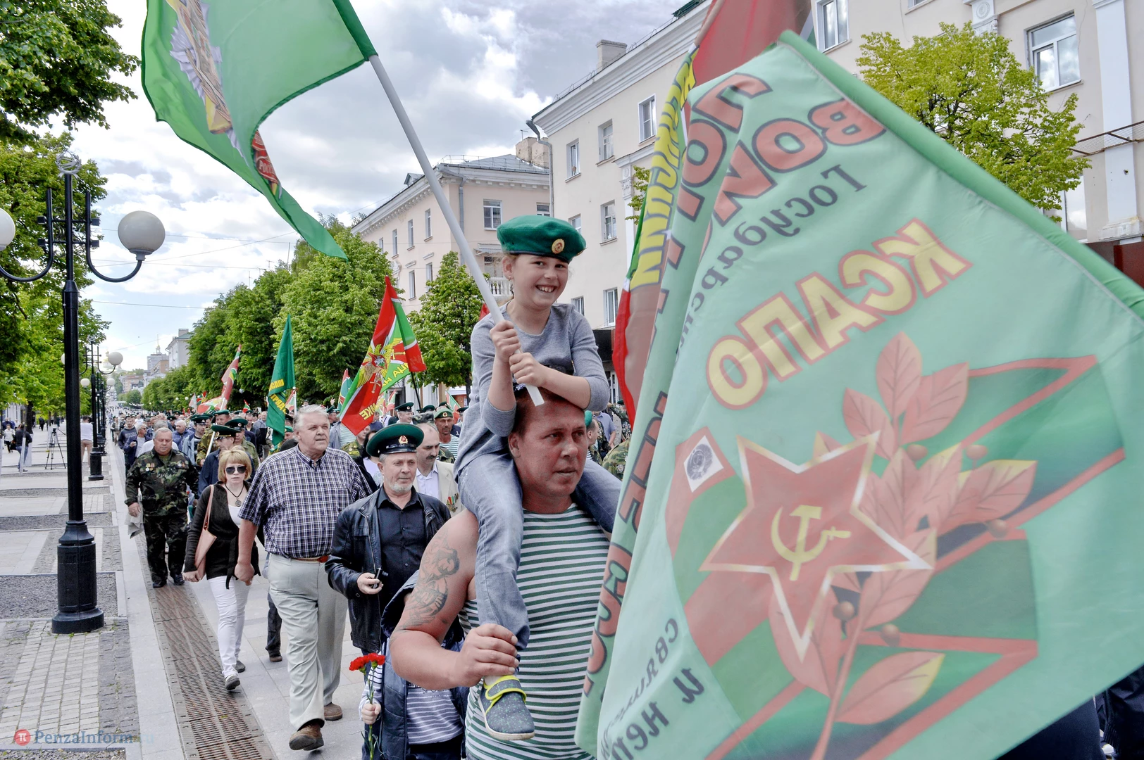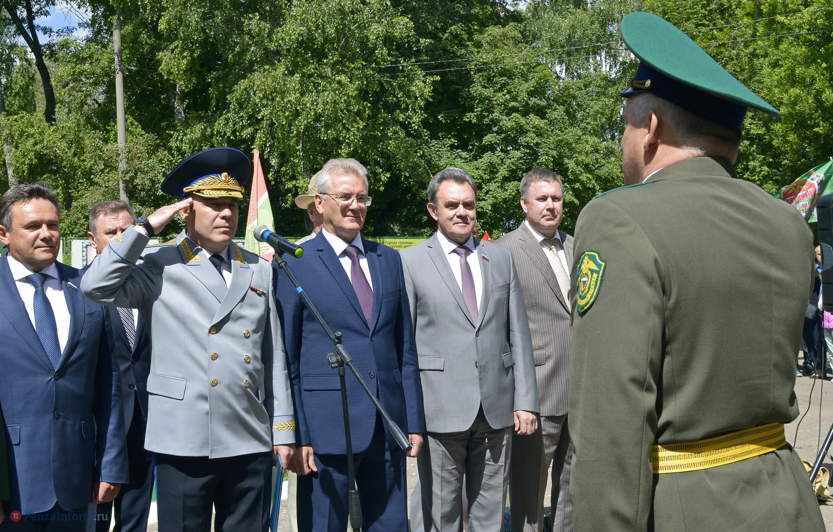 Только раз в году Фонтанная площадь в Пензе окрашивается в зеленый цвет. 28 мая задолго до начала торжественного шествия на ней собрались те, кто защищал рубежи государства. Пограничная служба ФСБ России отметила вековой юбилей.