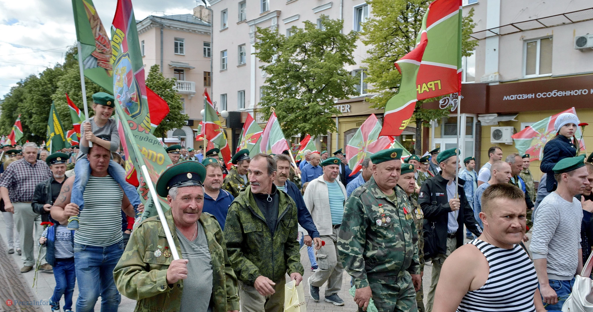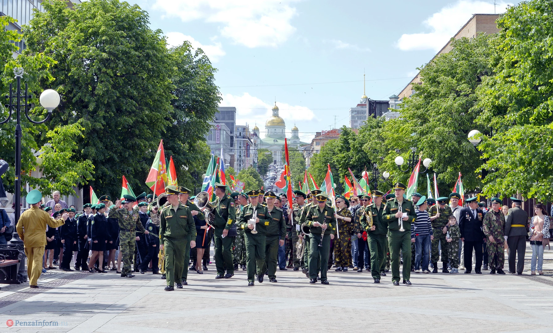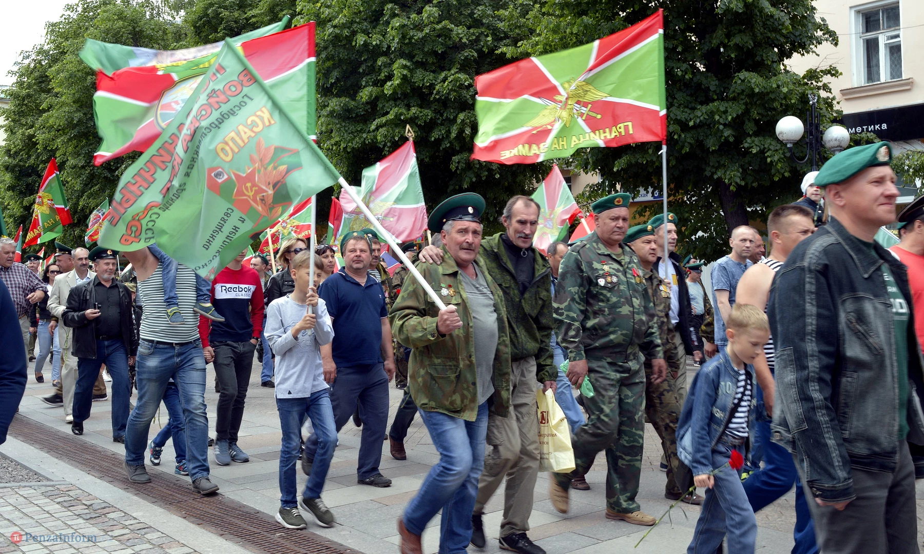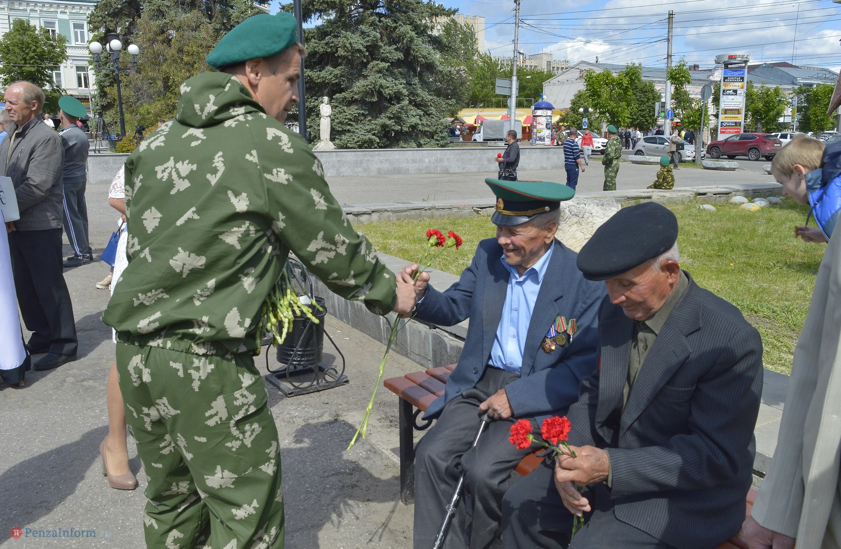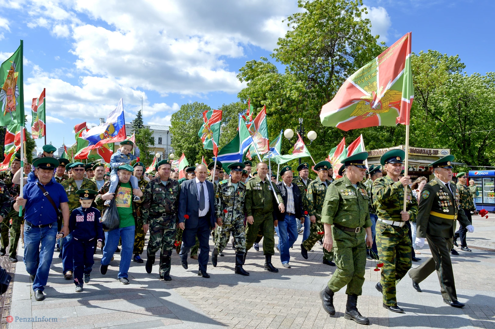 Только раз в году Фонтанная площадь в Пензе окрашивается в зеленый цвет. 28 мая задолго до начала торжественного шествия на ней собрались те, кто защищал рубежи государства. Пограничная служба ФСБ России отметила вековой юбилей.