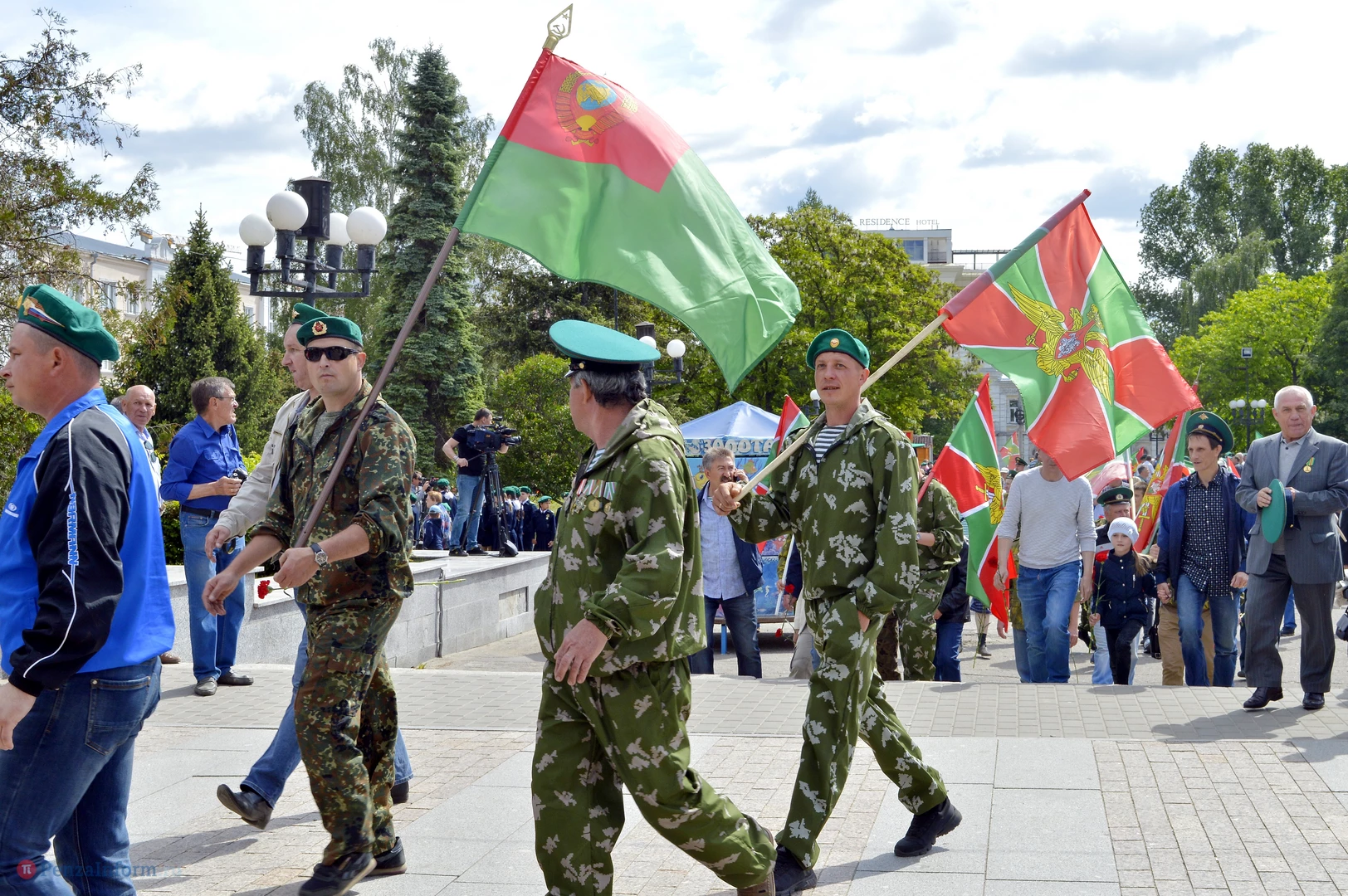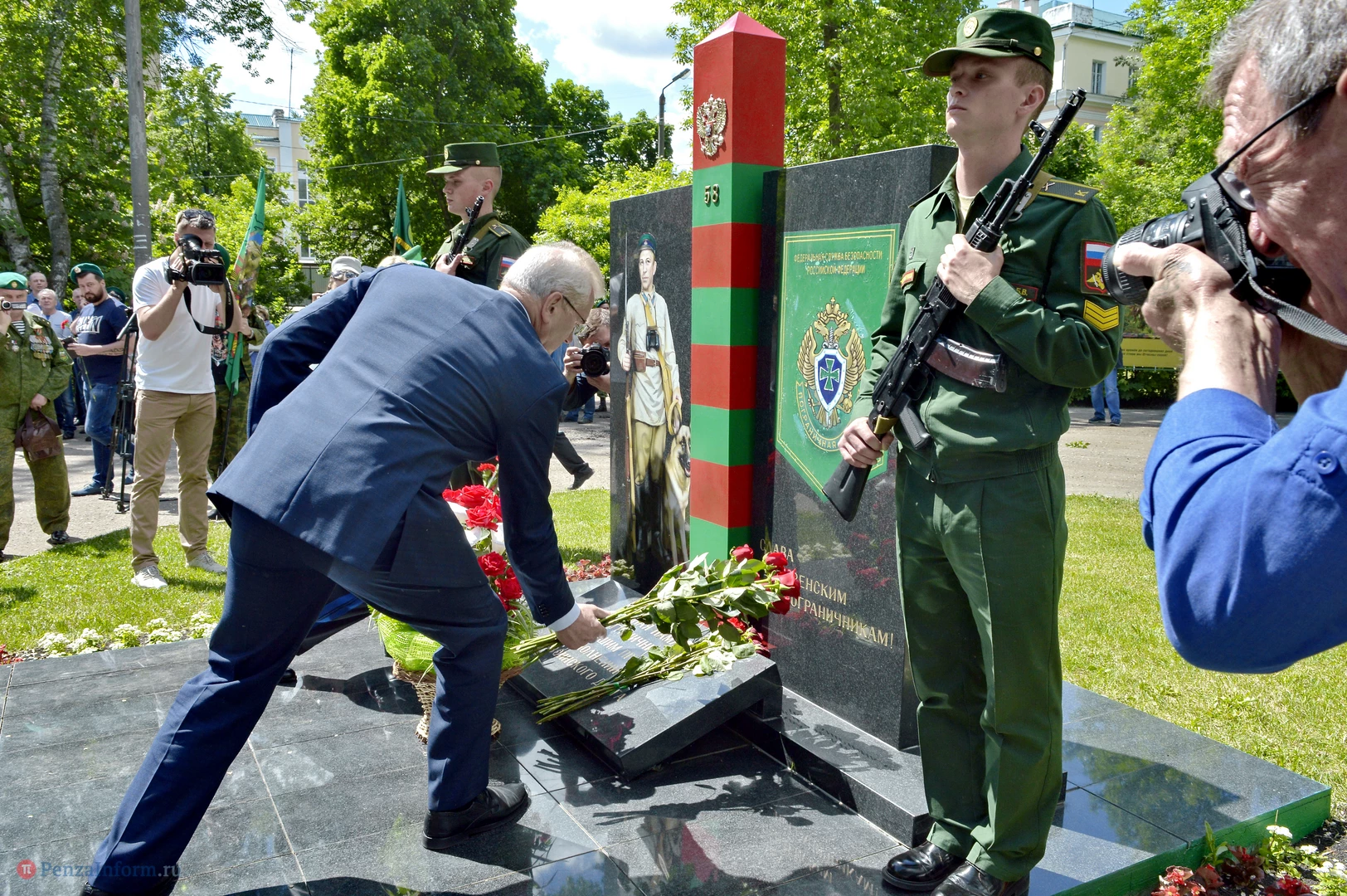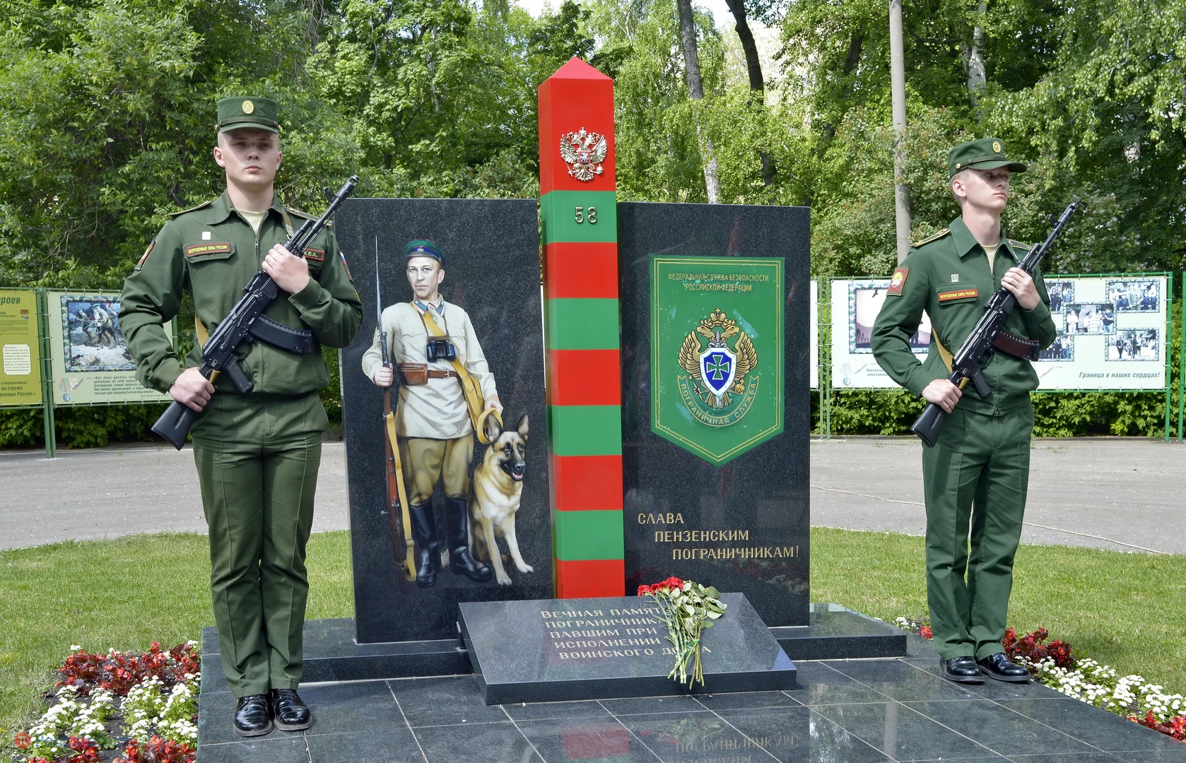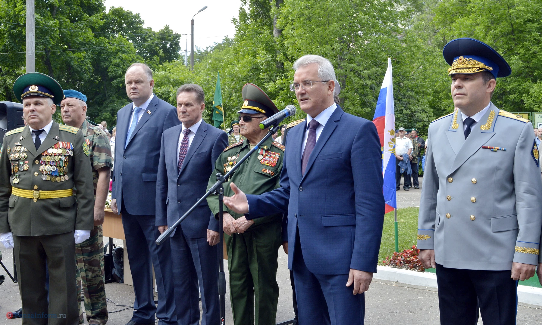 Только раз в году Фонтанная площадь в Пензе окрашивается в зеленый цвет. 28 мая задолго до начала торжественного шествия на ней собрались те, кто защищал рубежи государства. Пограничная служба ФСБ России отметила вековой юбилей.