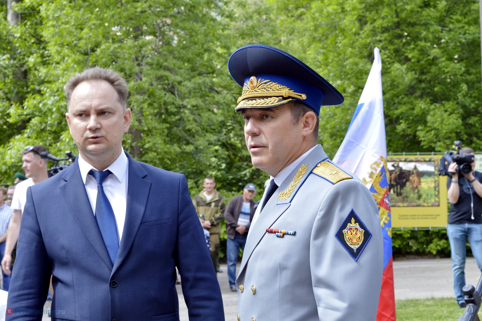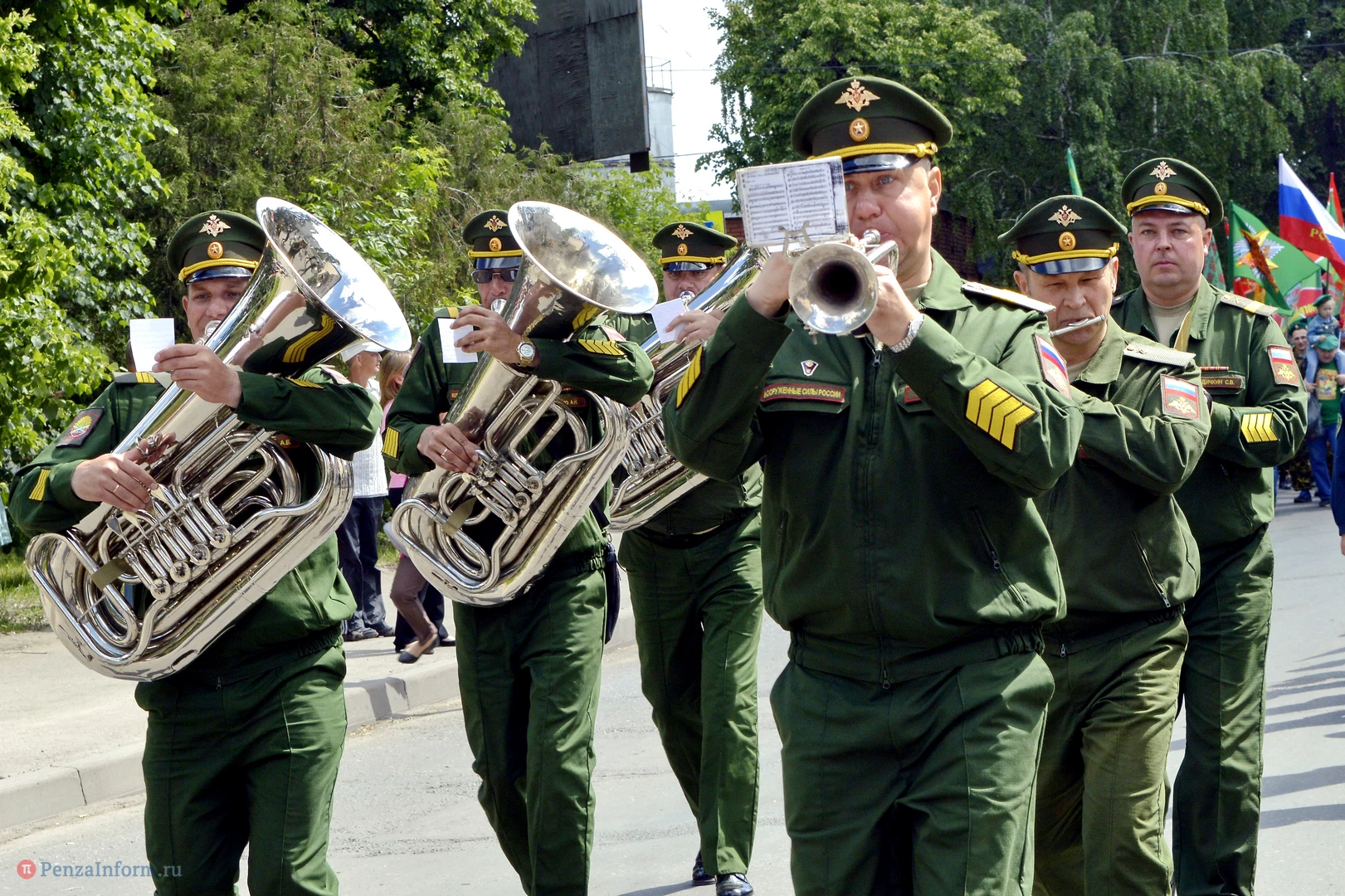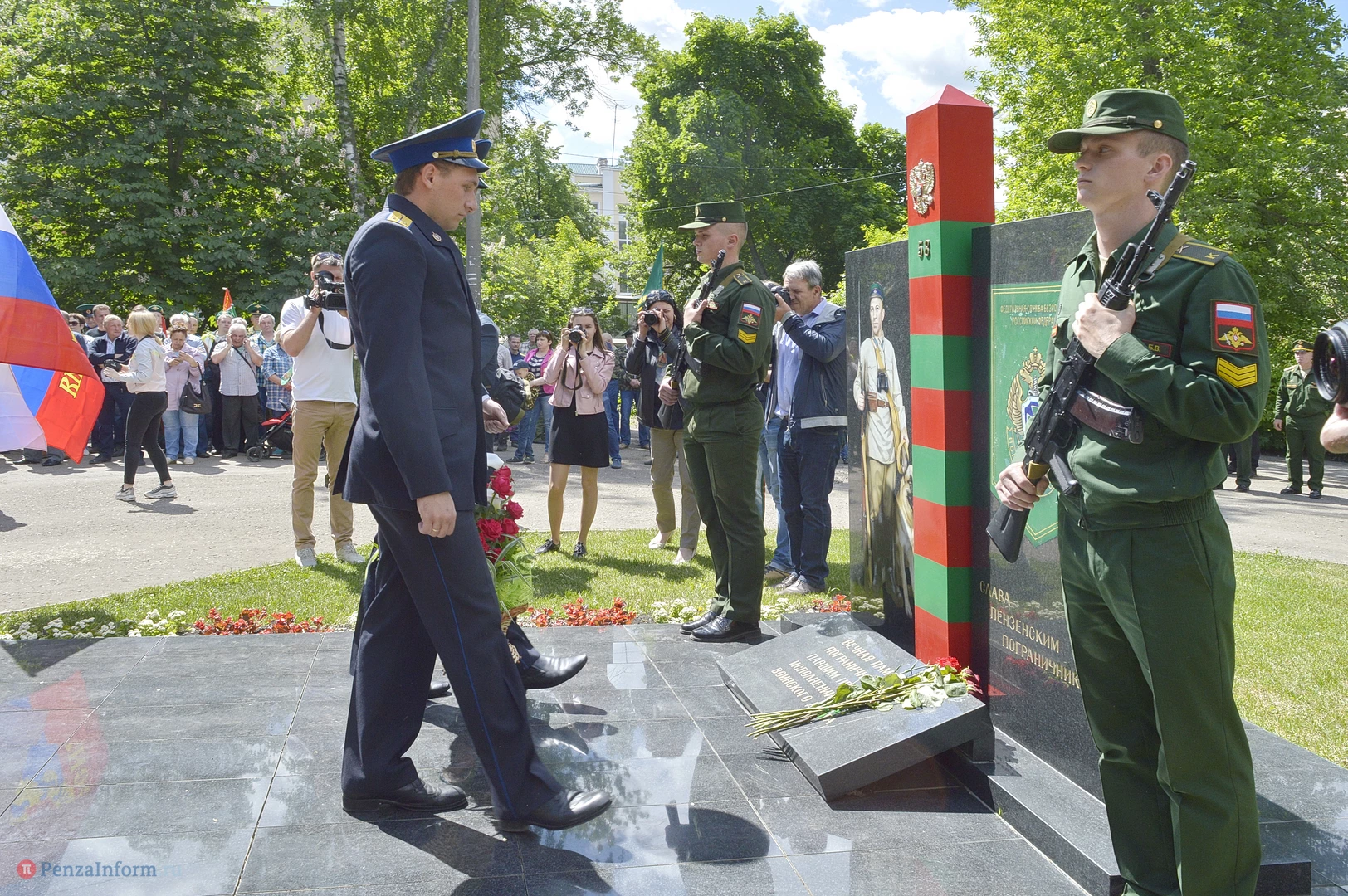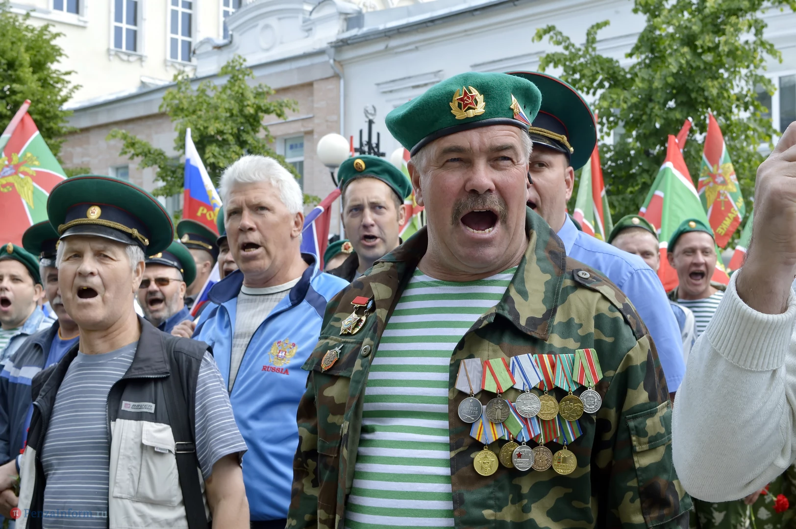 Только раз в году Фонтанная площадь в Пензе окрашивается в зеленый цвет. 28 мая задолго до начала торжественного шествия на ней собрались те, кто защищал рубежи государства. Пограничная служба ФСБ России отметила вековой юбилей.