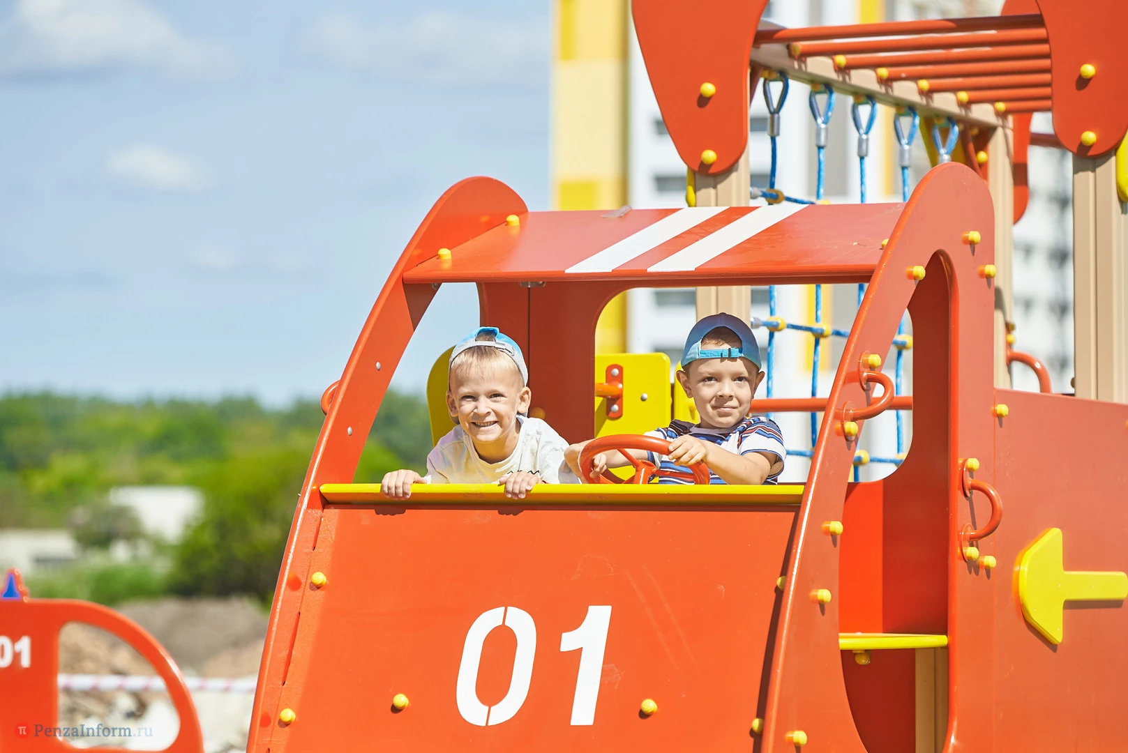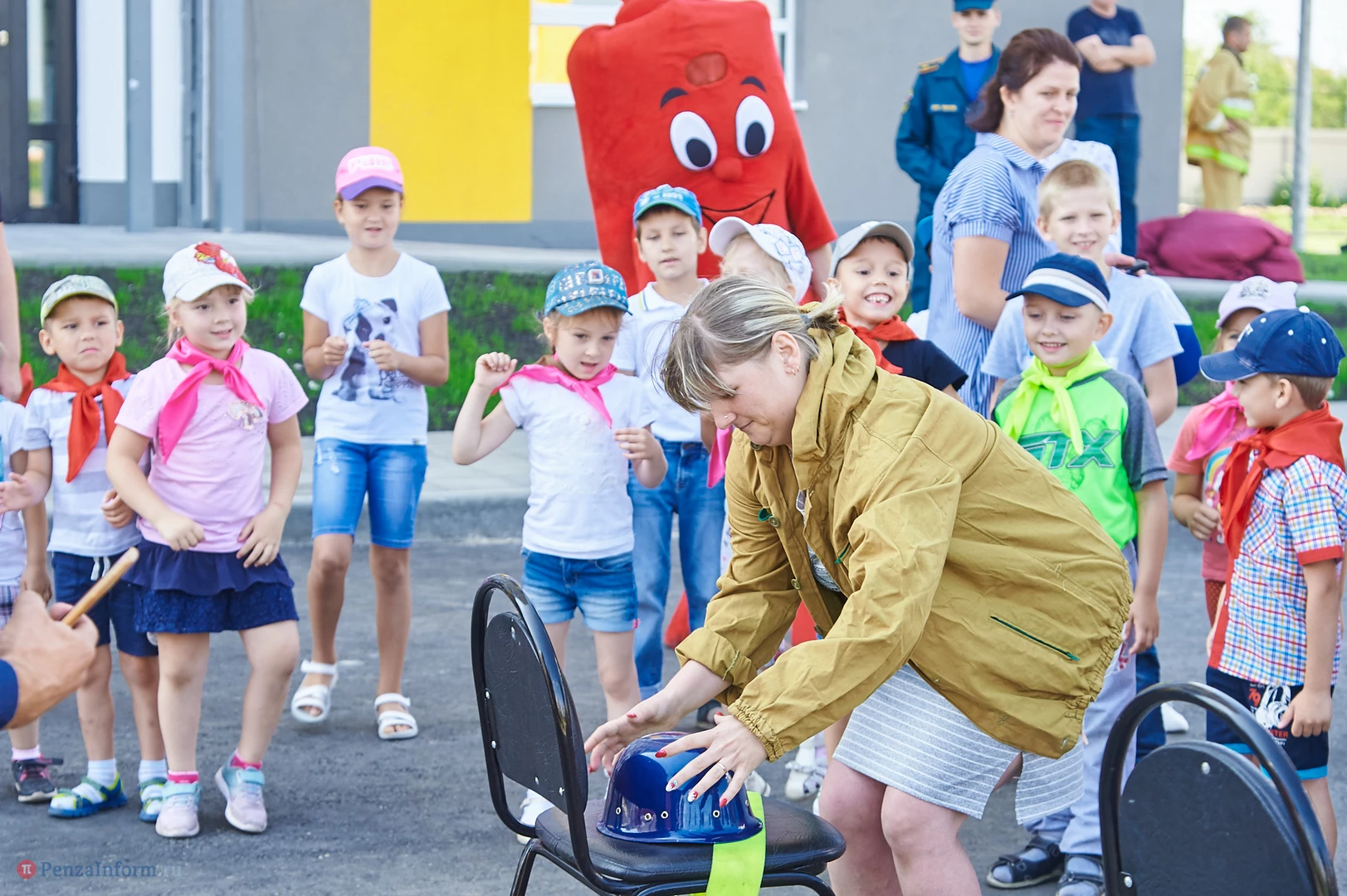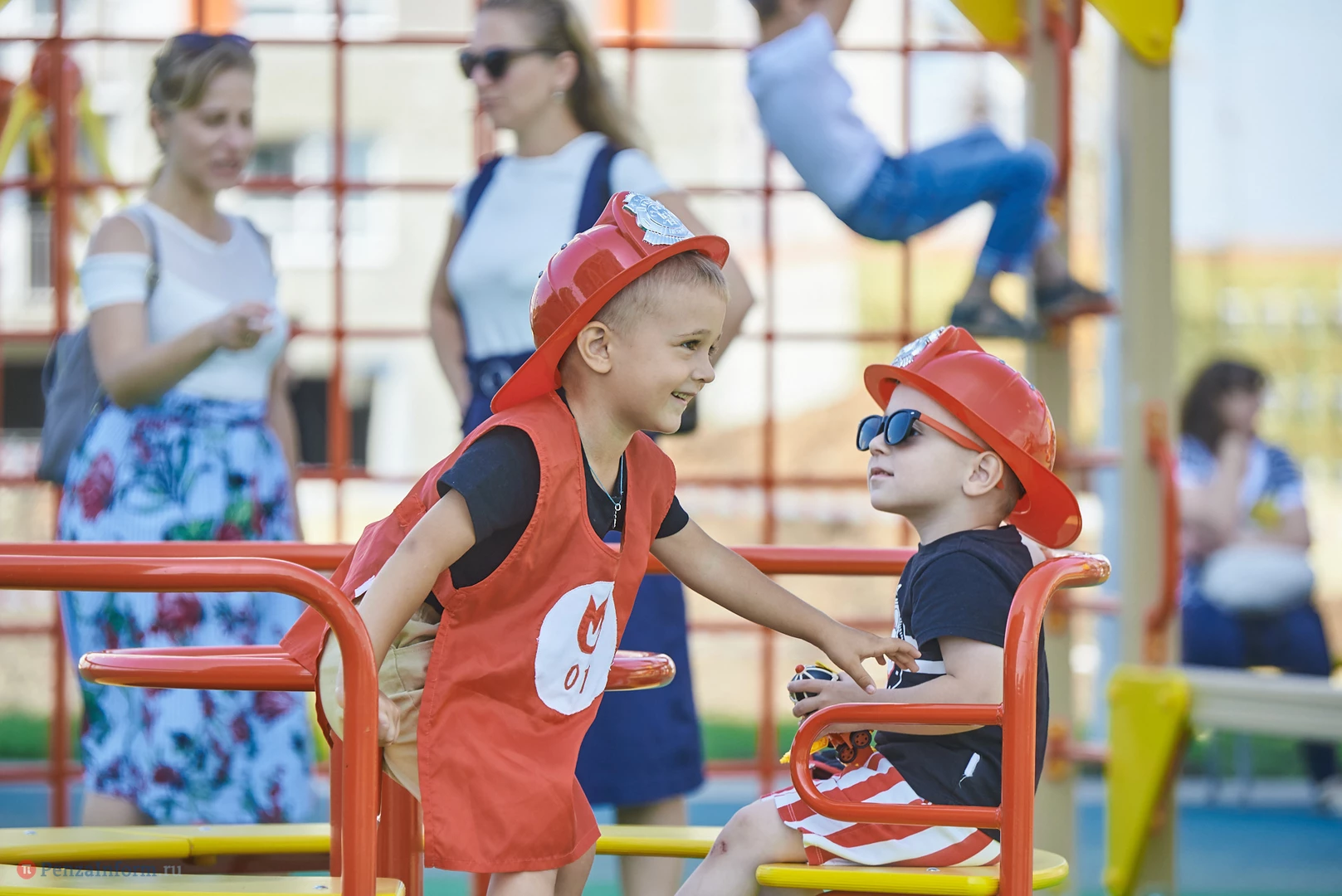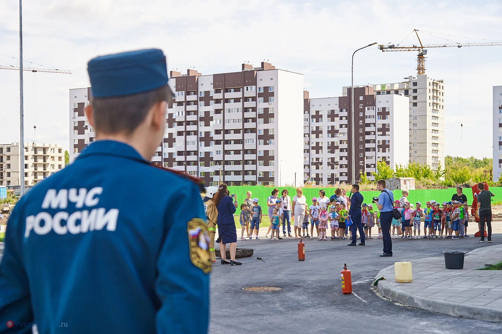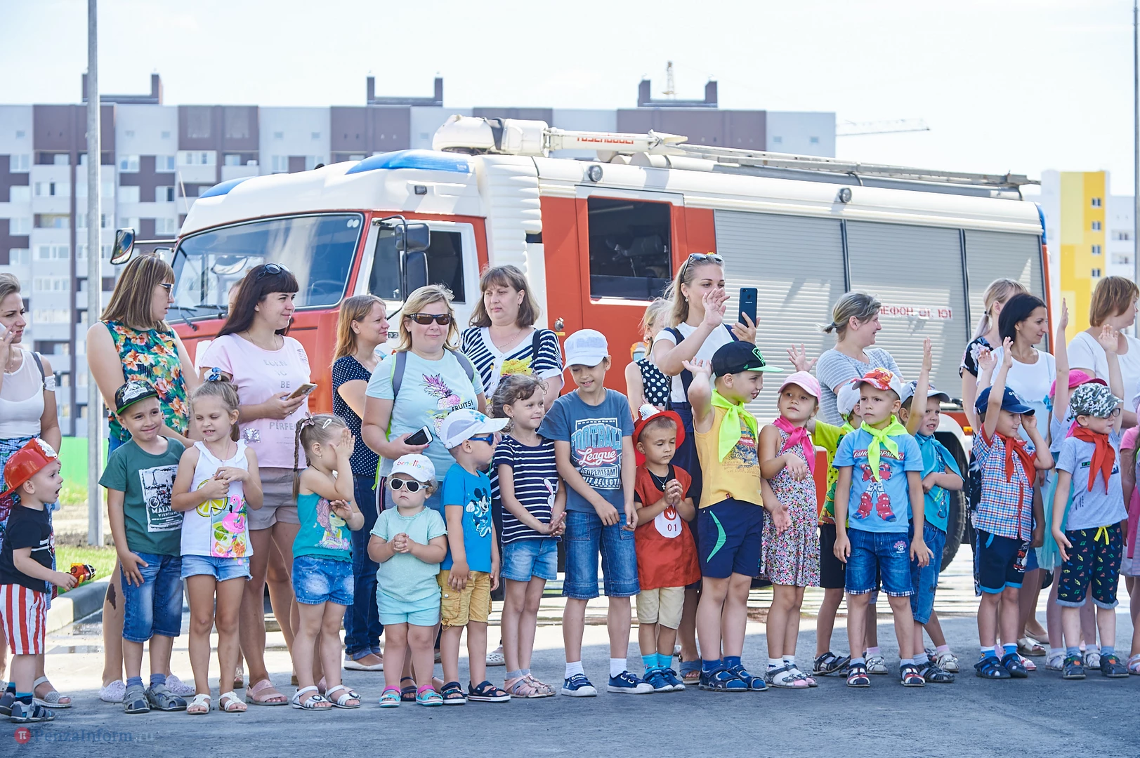 На новую тематическую детскую площадку на ул. Генерала Глазунова, где малыши катаются на пожарных машинках, приехал настоящий пожарный автомобиль. Он прибыл не потому, что что-то произошло, а чтобы сотрудники МЧС провели мастер-класс по безопасности для детей и их родителей.