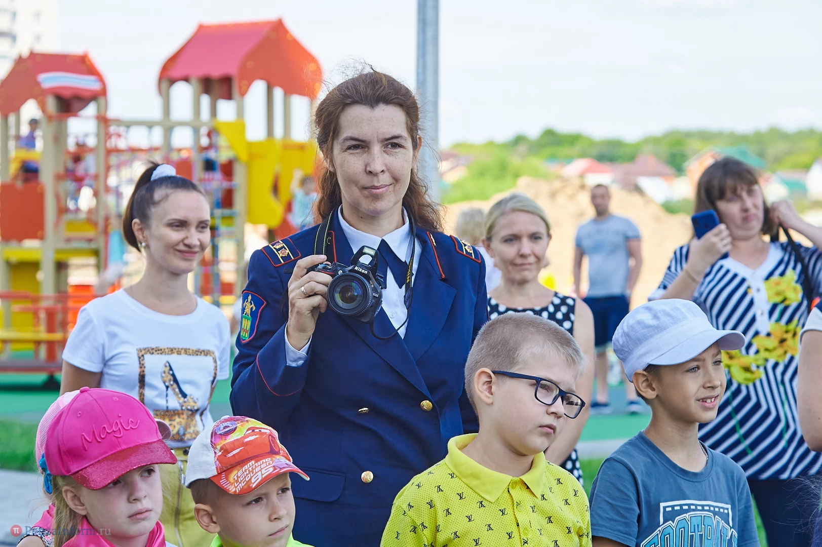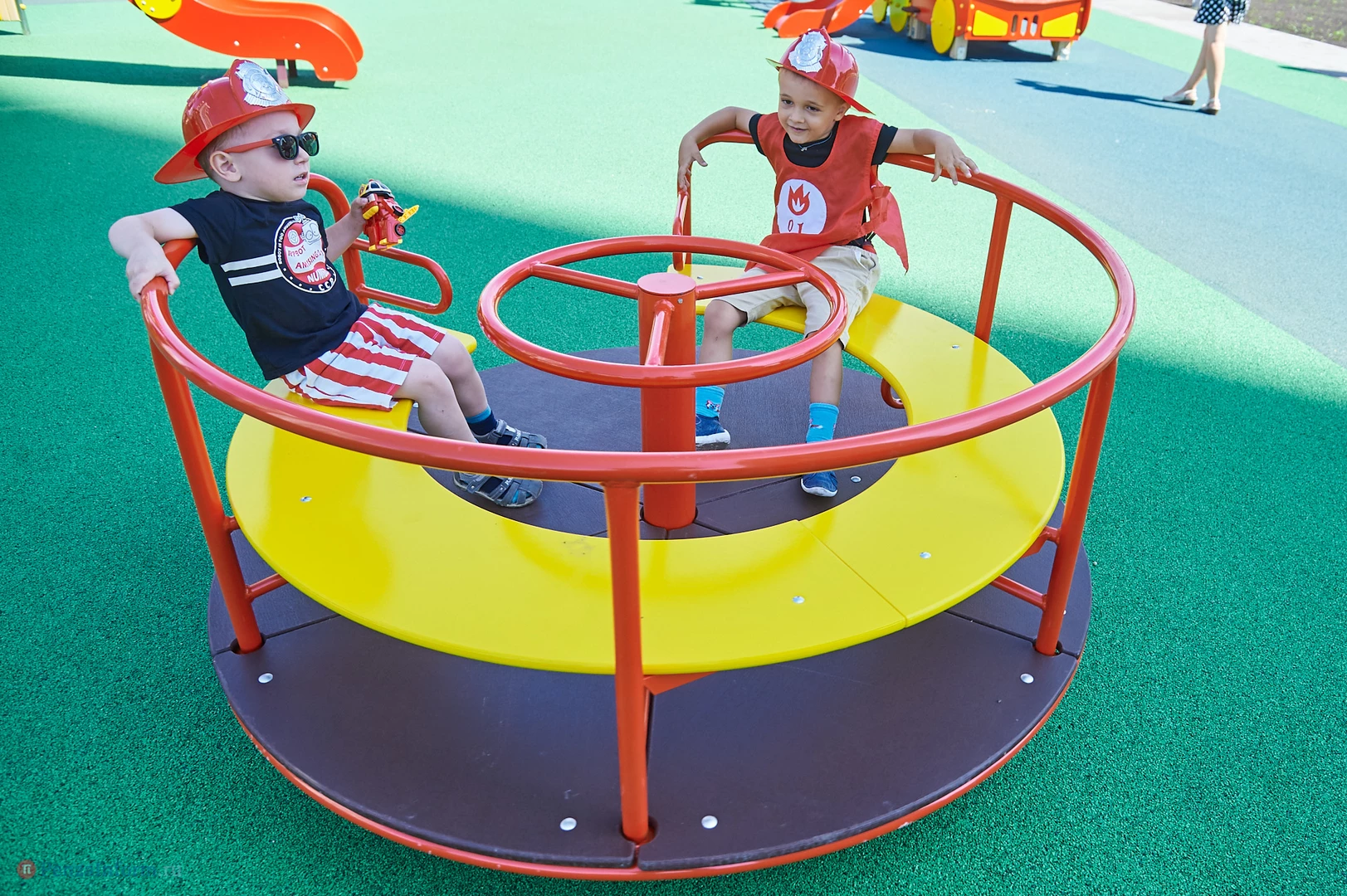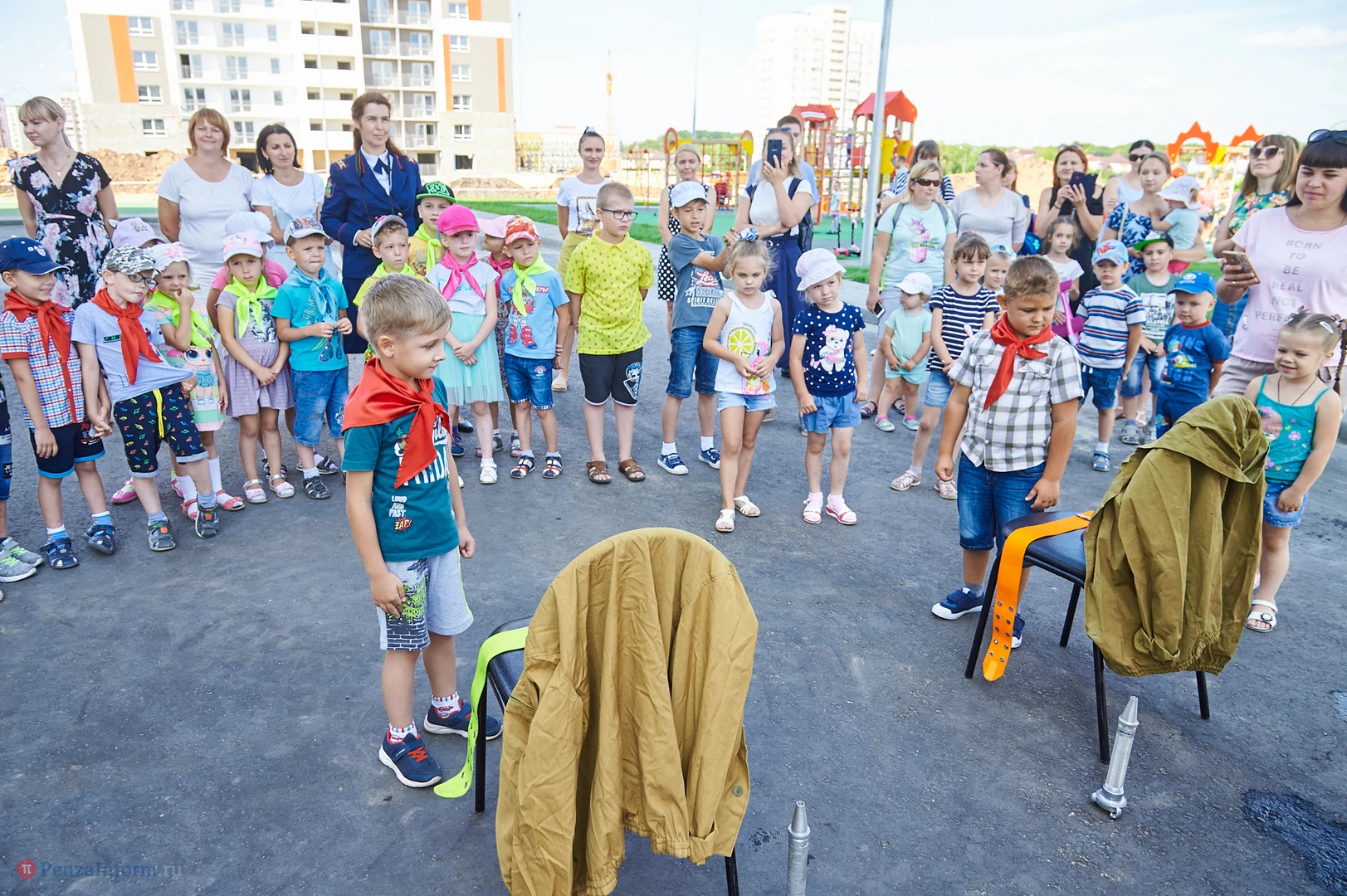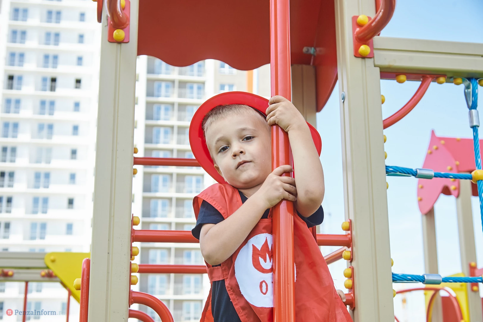 На новую тематическую детскую площадку на ул. Генерала Глазунова, где малыши катаются на пожарных машинках, приехал настоящий пожарный автомобиль. Он прибыл не потому, что что-то произошло, а чтобы сотрудники МЧС провели мастер-класс по безопасности для детей и их родителей.