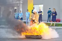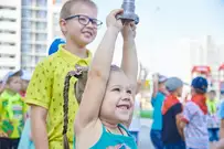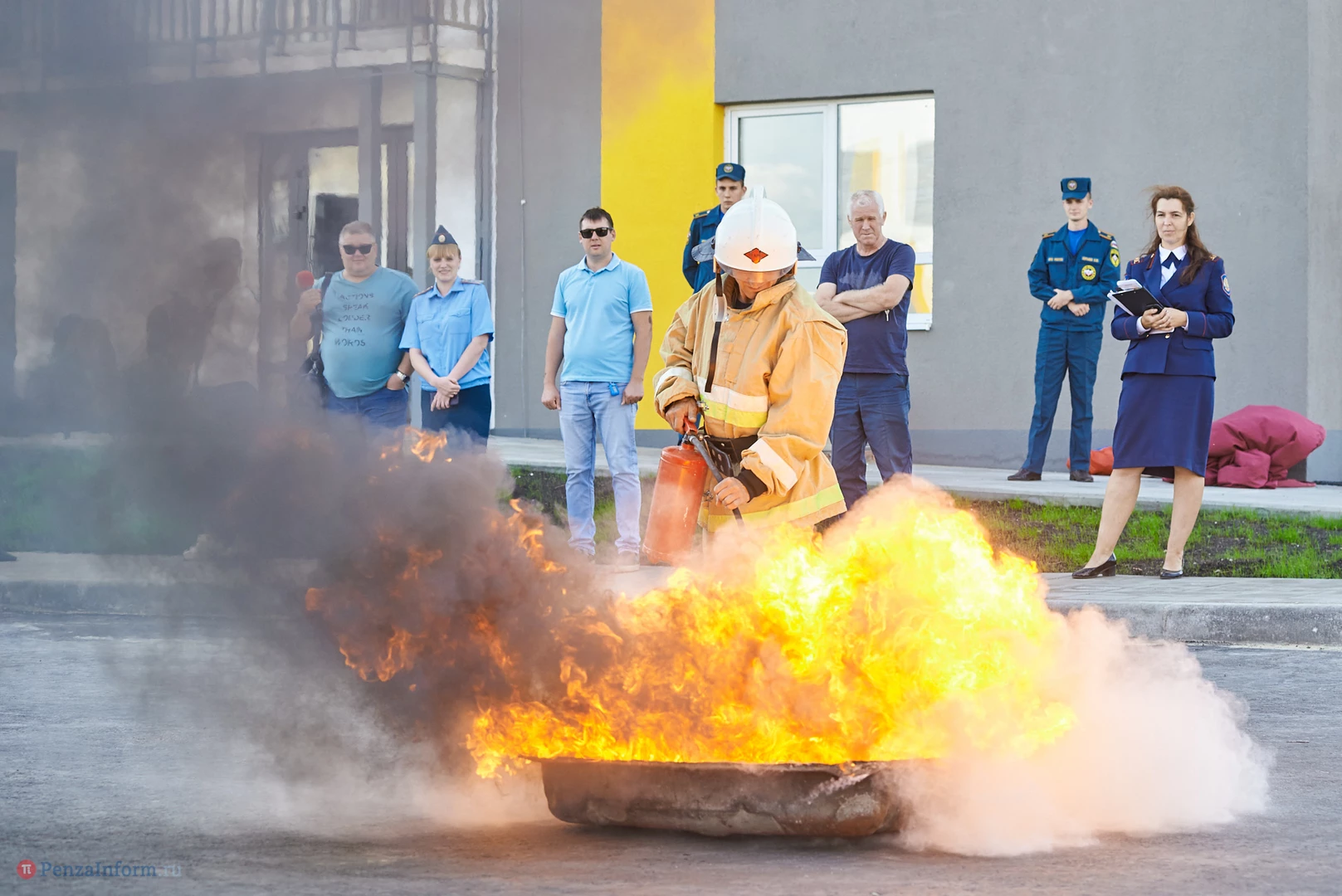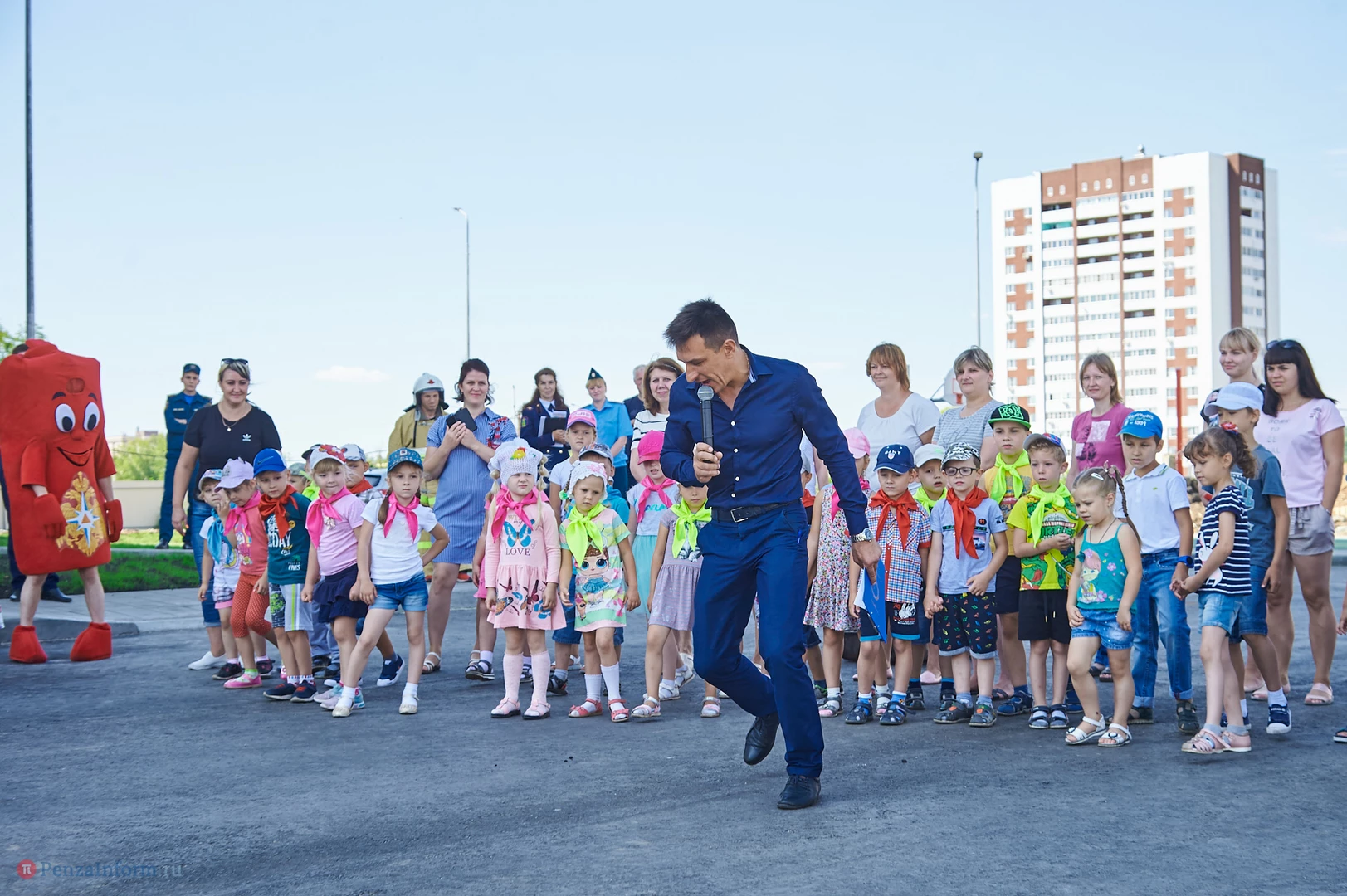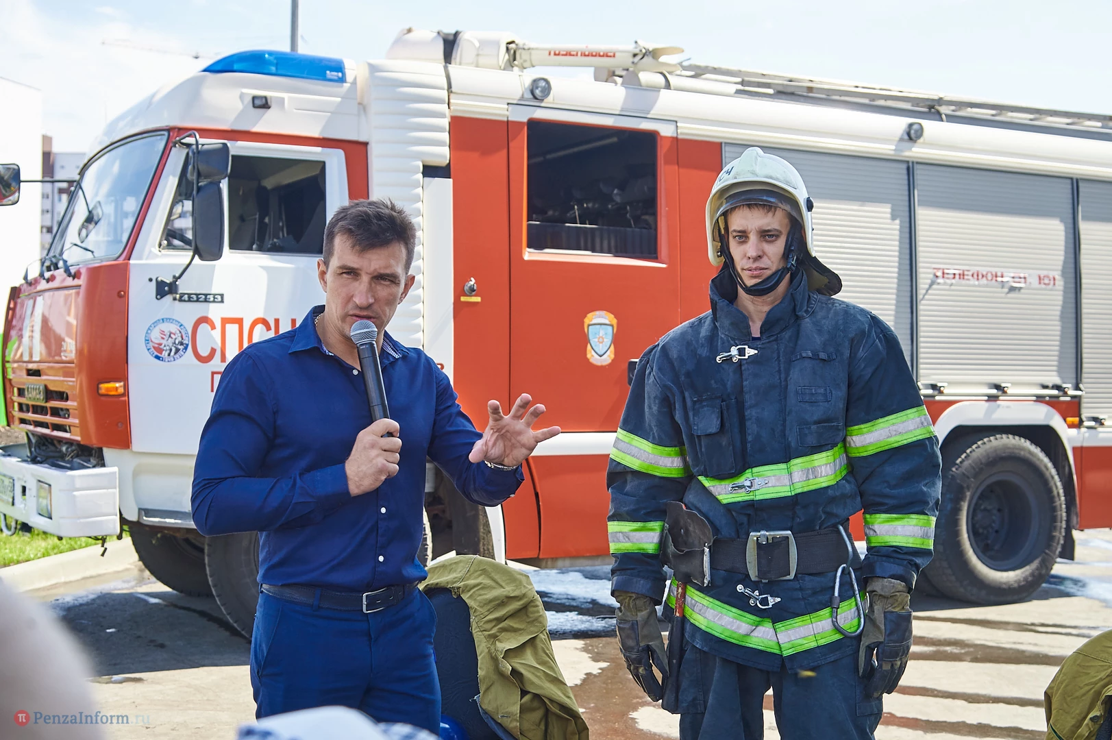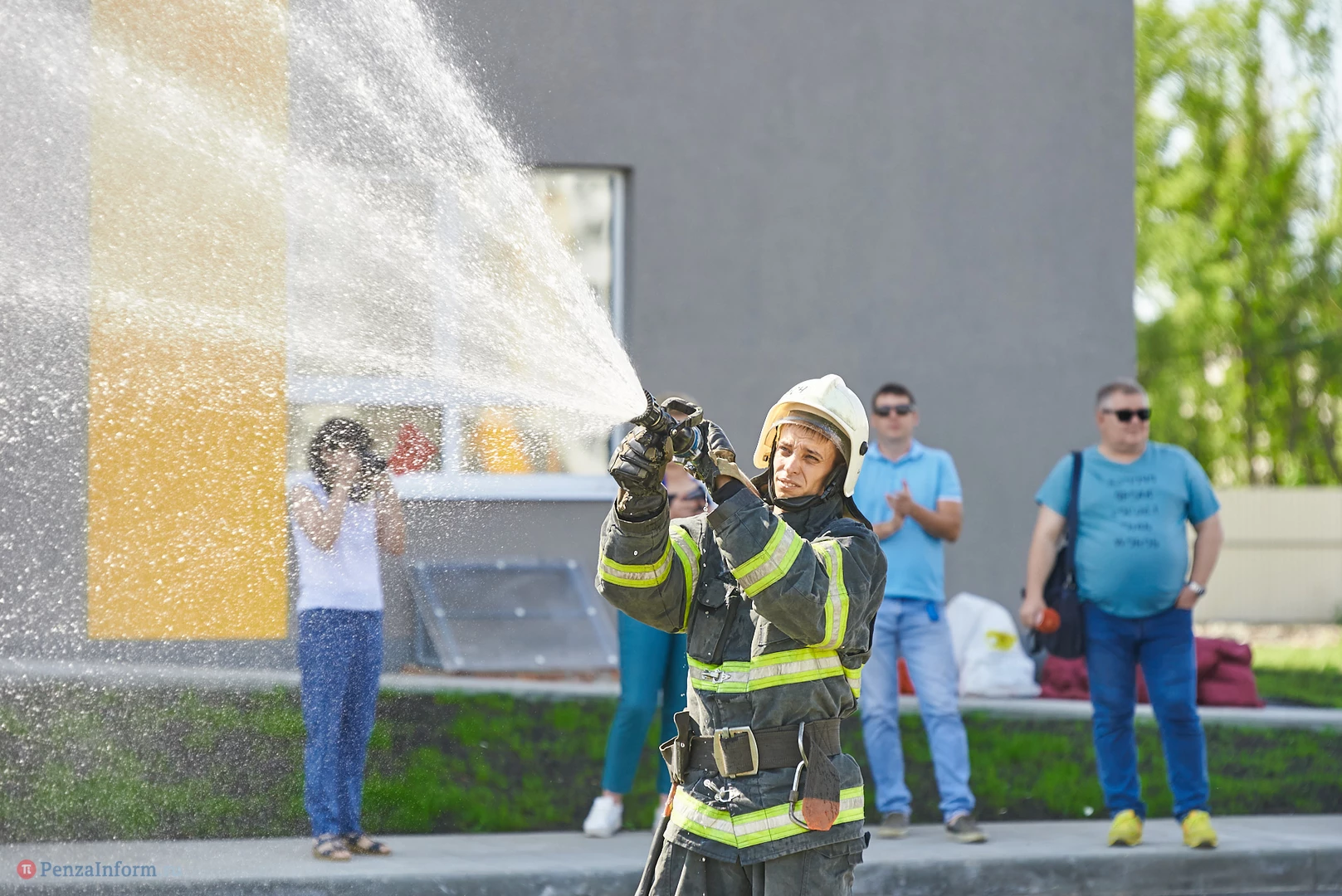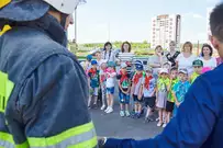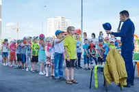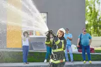 Участники мероприятия смогли посмотреть, как работает брандспойт, как специалисты ликвидируют возгорание с помощью огнетушителей и, конечно, поиграть с ведущим в занимательные игры.