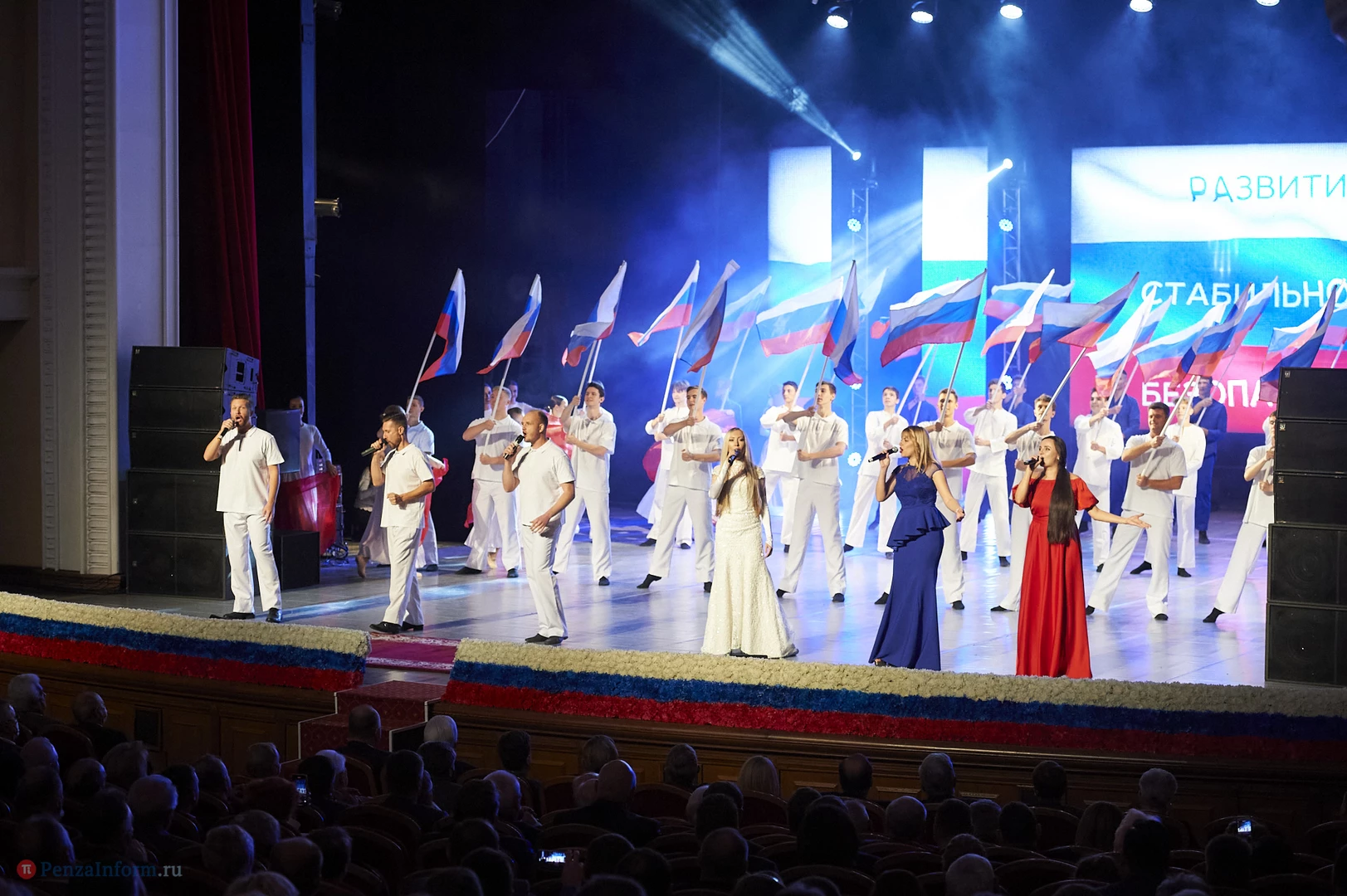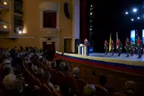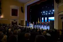 Приглашенных гостей и прессы собрался полный зал. После инаугурации и многочисленных поздравлений со сцены артисты представили праздничную программу.