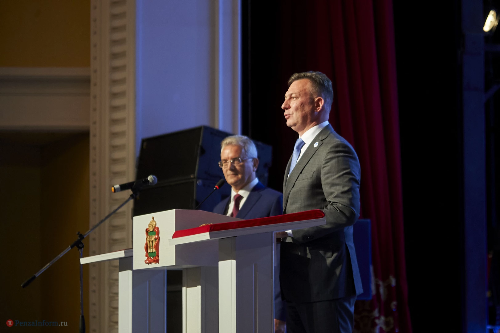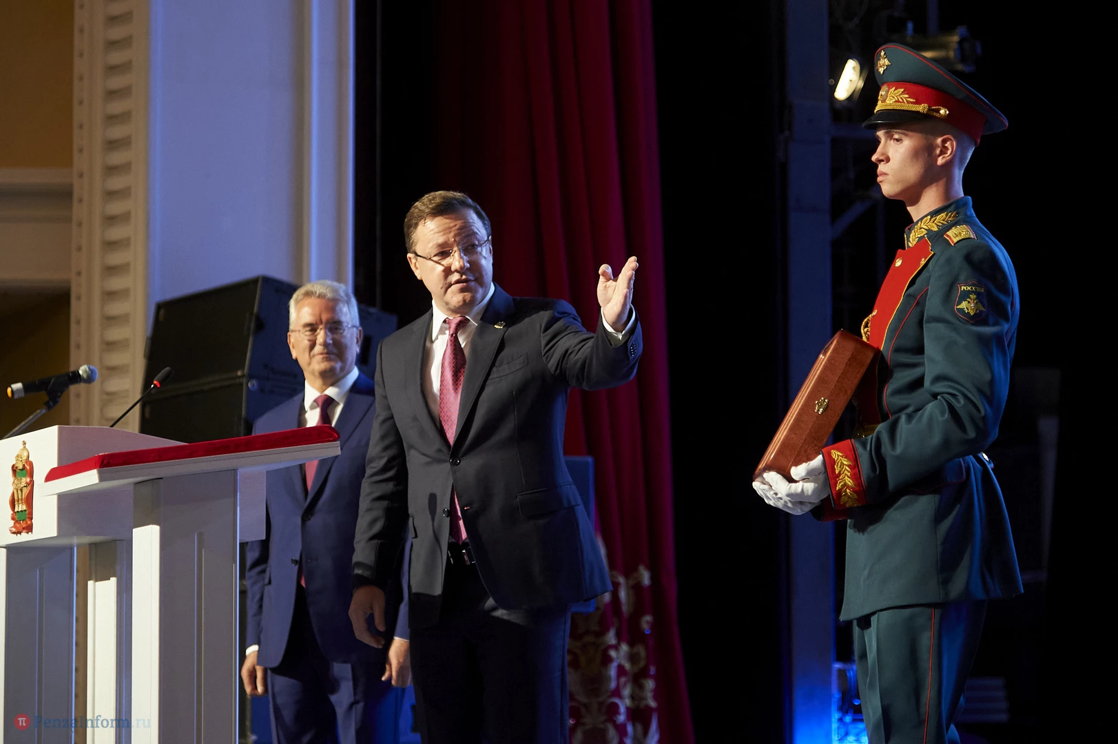 Иван Белозерцев торжественно вступил в должность губернатора Пензенской области. Инаугурацию провели в здании драматического театра. Мероприятие прошло с соблюдением необходимых мер безопасности: на входе установили пензенский дезинфекционный туннель Mizotty, измеряли температуру и выдавали маски.
