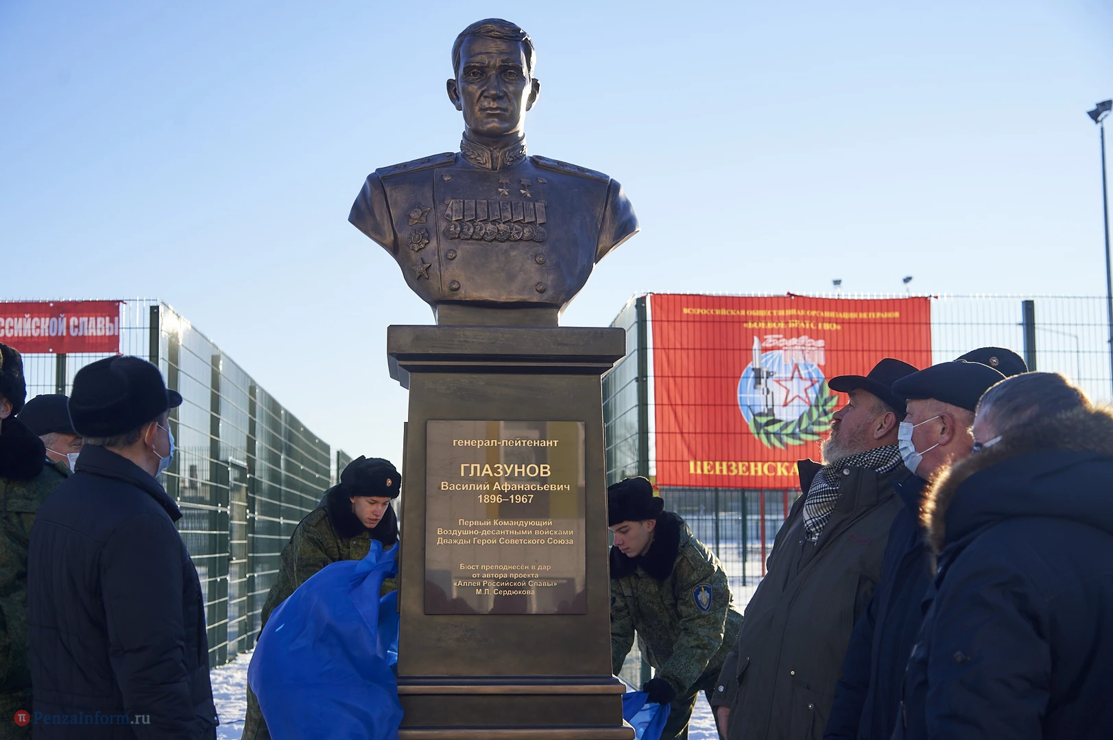 Возле пензенской школы № 78, которая названа в честь генерала Василия Глазунова и находится на улице его имени, прошло торжественное открытие бюста основателя воздушно-десантных войск. Памятник - дар автора всероссийского проекта «Аллея Российской Славы» Михаила Сердюкова.