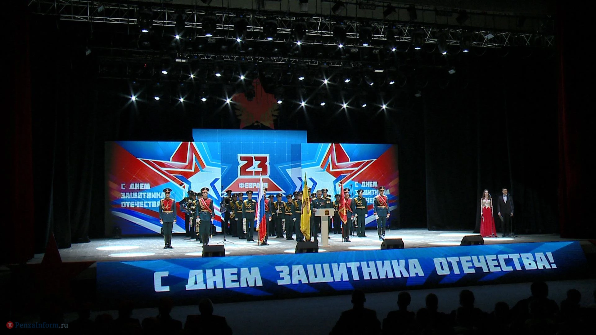 Состоялся торжественный вечер, посвященный Дню защитника Отечества. Гостей в фойе ККЗ «Пенза» встречал оркестр и студенты, изображавшие бойцов Страны Советов. Затем пензенцы переместились в зал, где прозвучали официальные речи и поздравления, а также провели церемонию награждения. В завершение для зрителей устроили праздничный концерт.