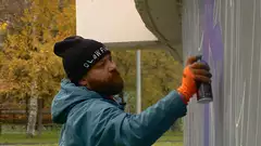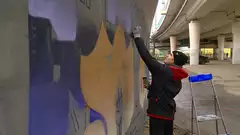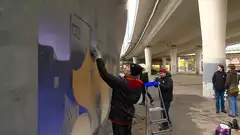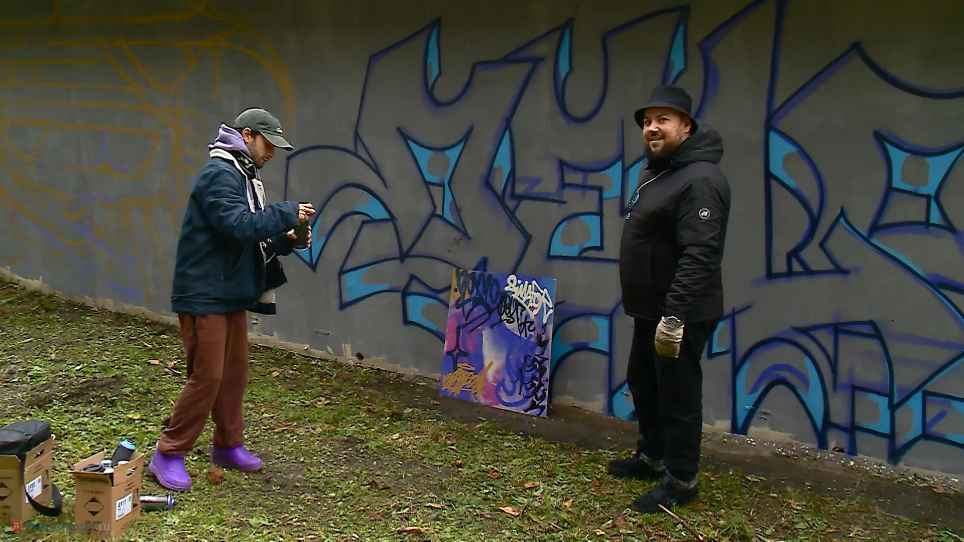«Все объединено палитрой: два фиолетовых цвета, два бежевых, синий и голубой. Все рисуют в общей цветовой гамме, как бы кто ни отступил в стилистике - все будет единой картиной», - сообщил организатор мероприятия Никита Логинов.