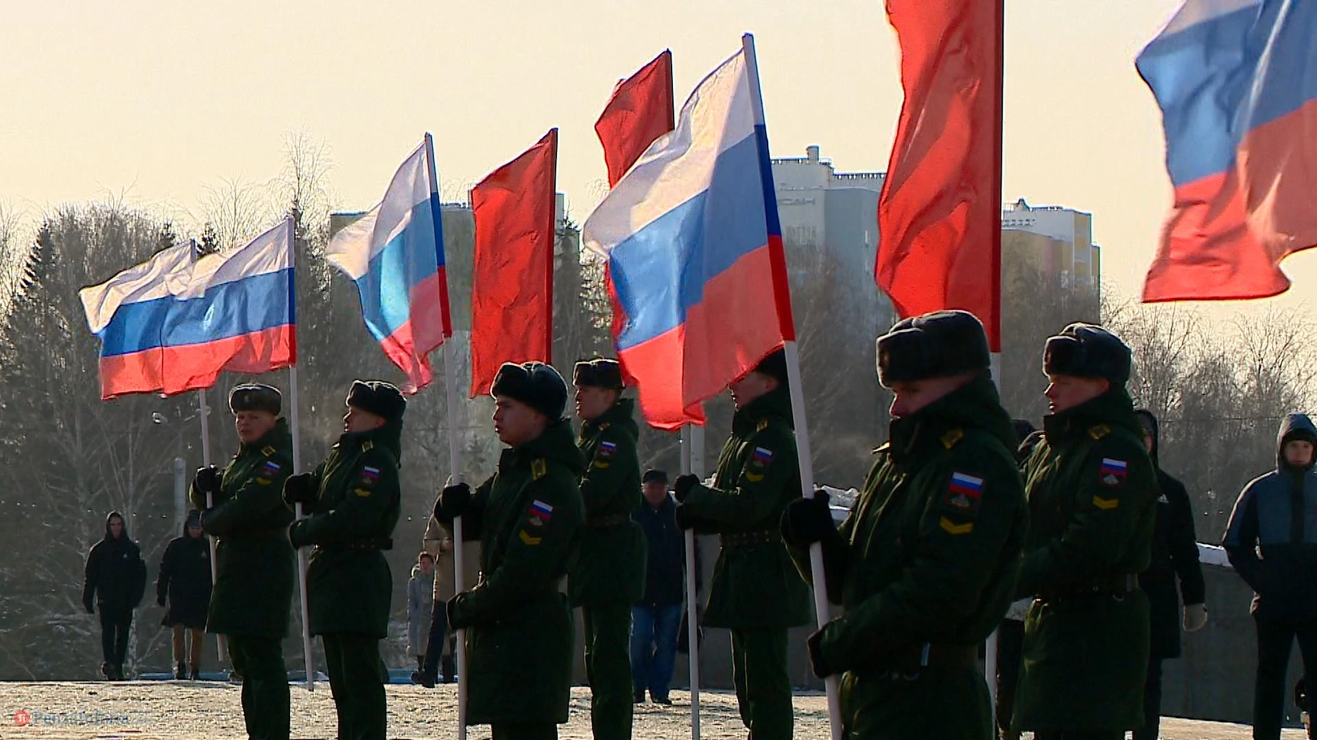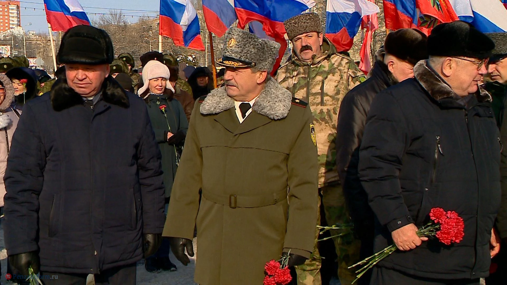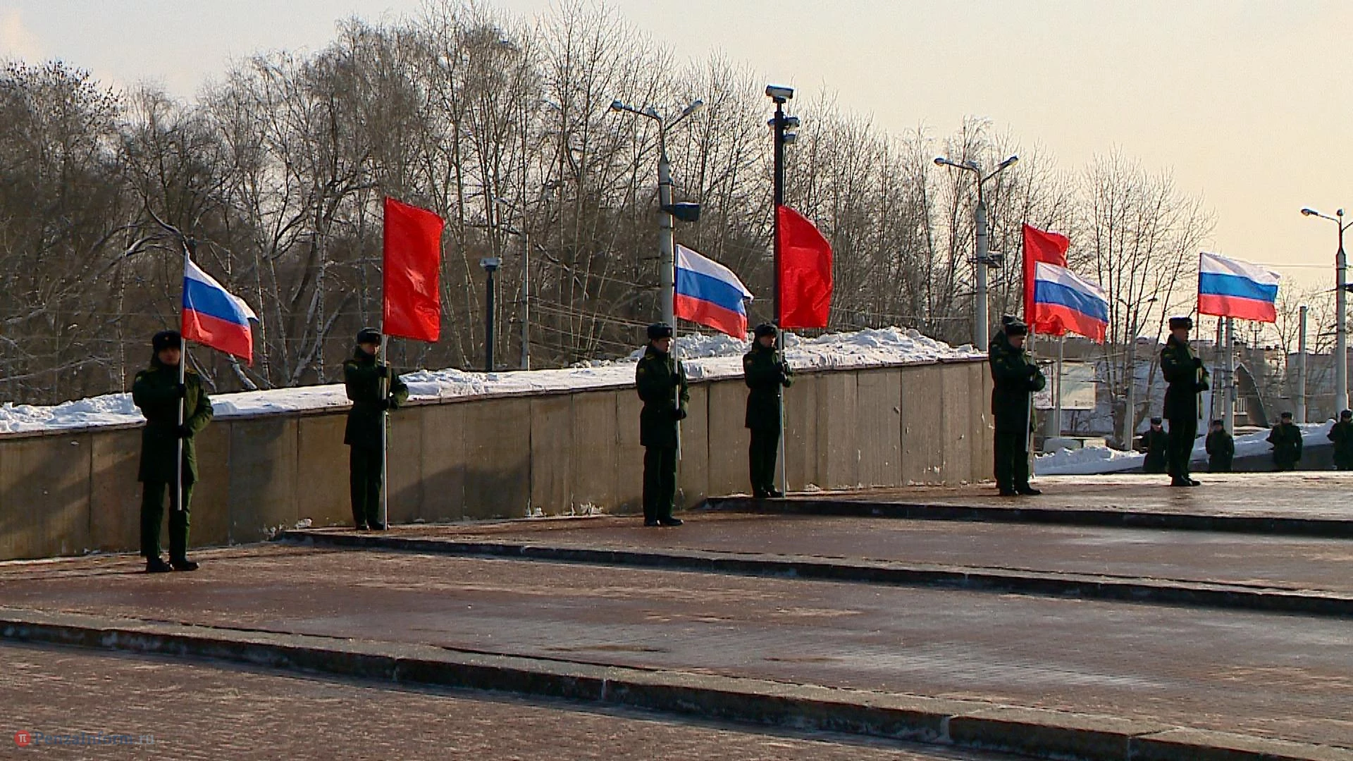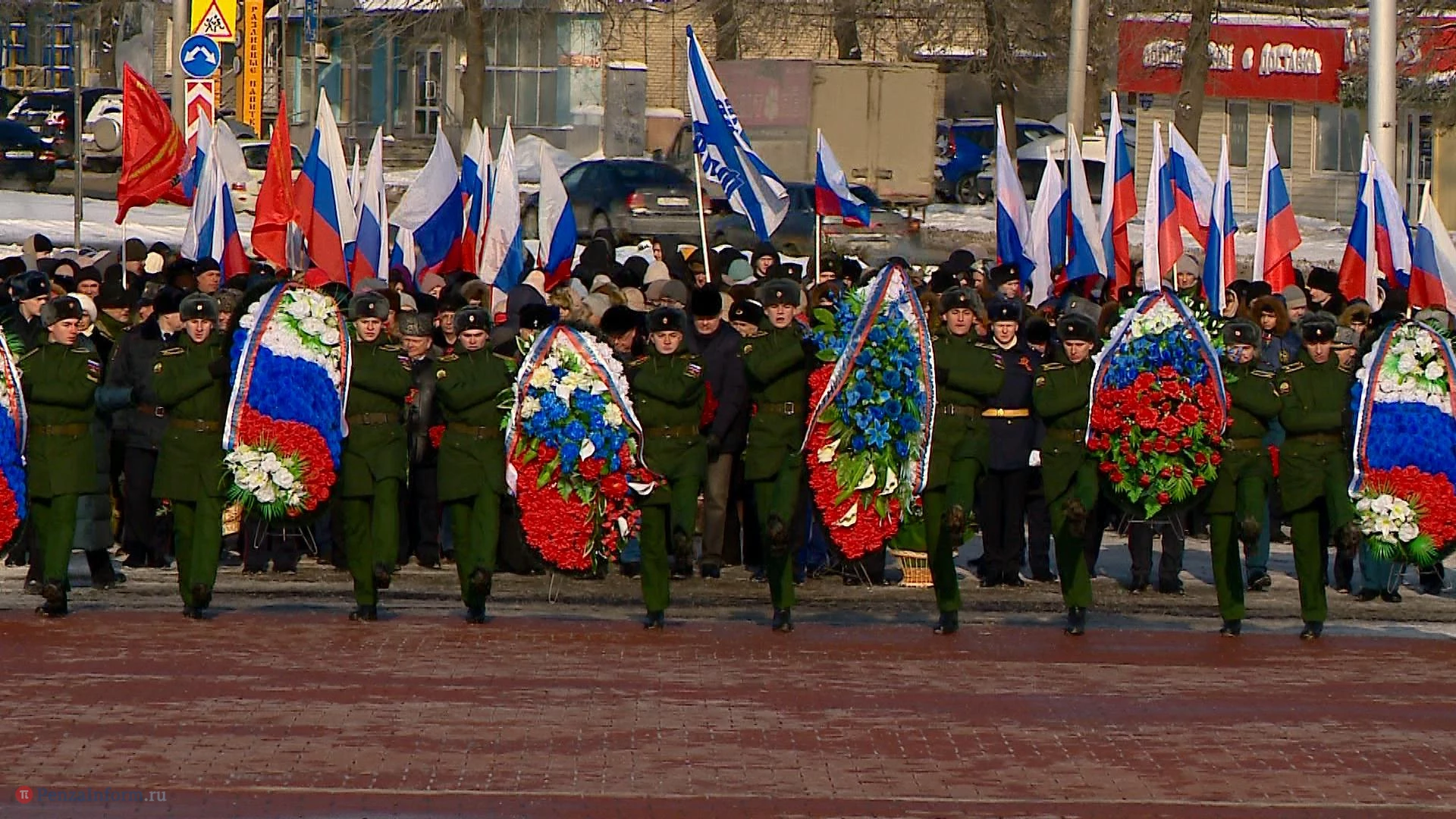 Торжественное возложение цветов и венков к Вечному огню у Монумента воинской и трудовой славы пензенцев традиционно проходило без официальных речей. Все началось с минуты молчания и оружейного салюта. Среди пришедших к памятнику особо выделялись люди в шинелях и бушлатах. А на улице Каракозова вдоль проезжей части собрались участники праздничного автопробега. Колонна из почти двух десятков машин отправилась в путь по центральным улицам и проспектам города.