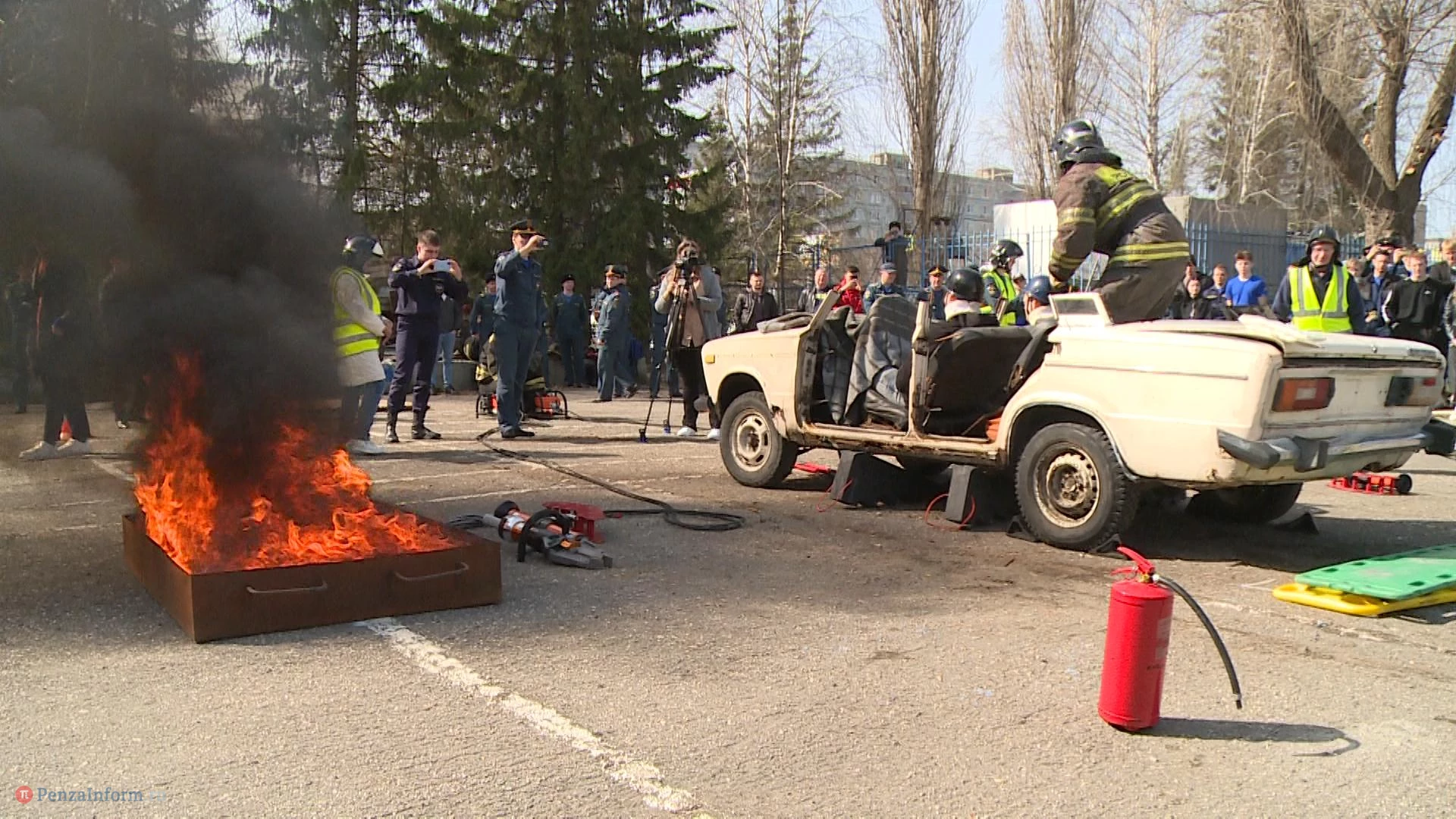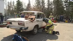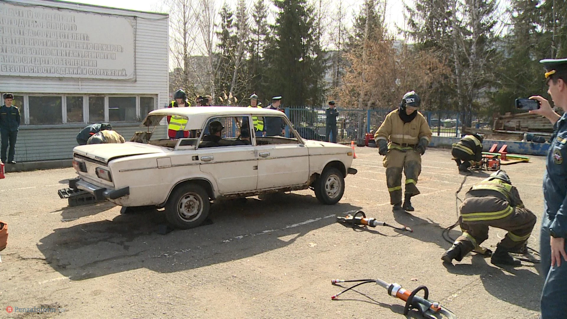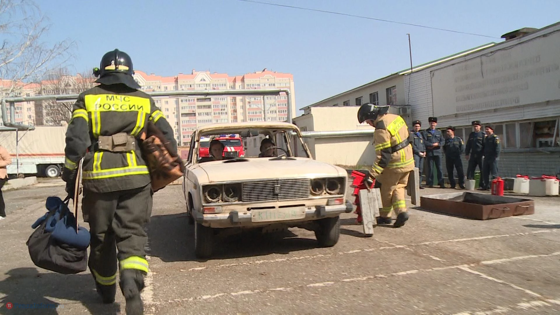 В Пензе прошел 1-й этап соревнований на звание лучшей команды главного управления МЧС России по области в ликвидации последствий ДТП на автомобильном транспорте. В качестве машины, из которой нужно было вызволять пострадавших, выбрали классику - ВАЗ-2106. Роль жертв сыграли двое студентов, пришедших посмотреть на зрелищные состязания.