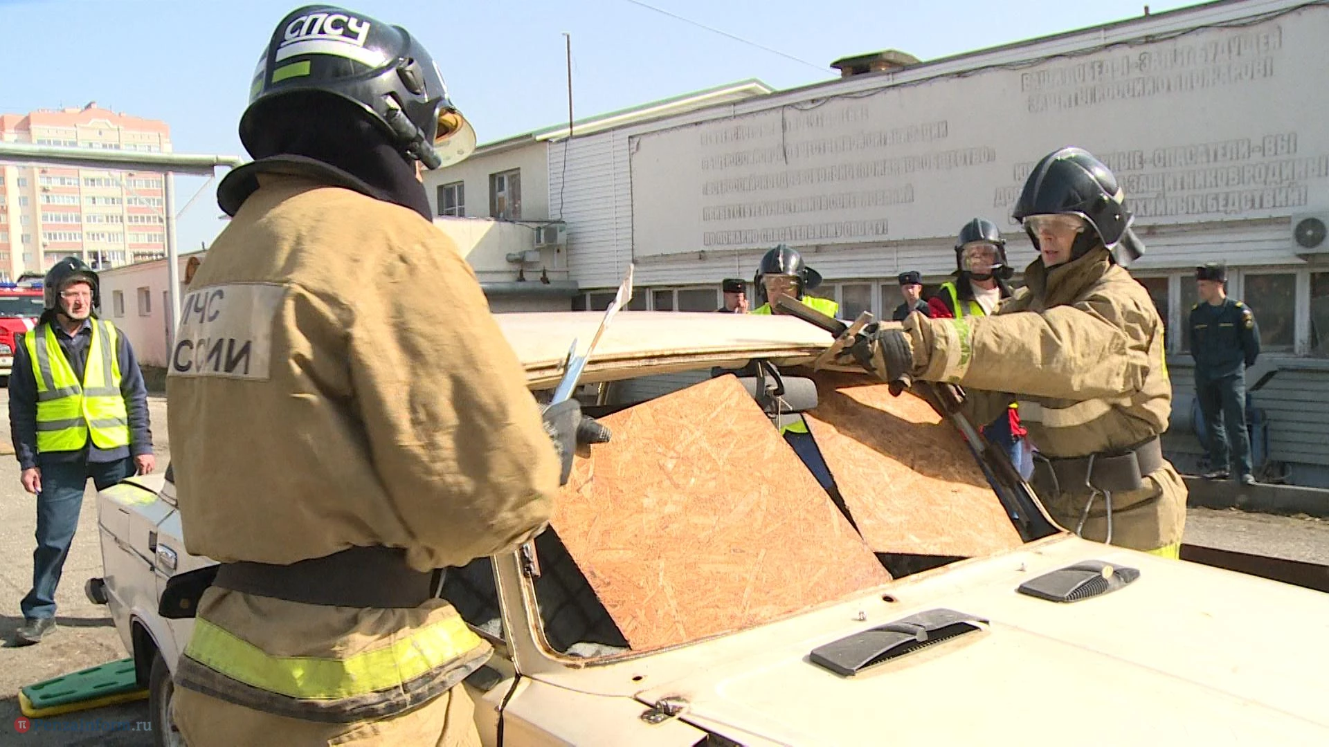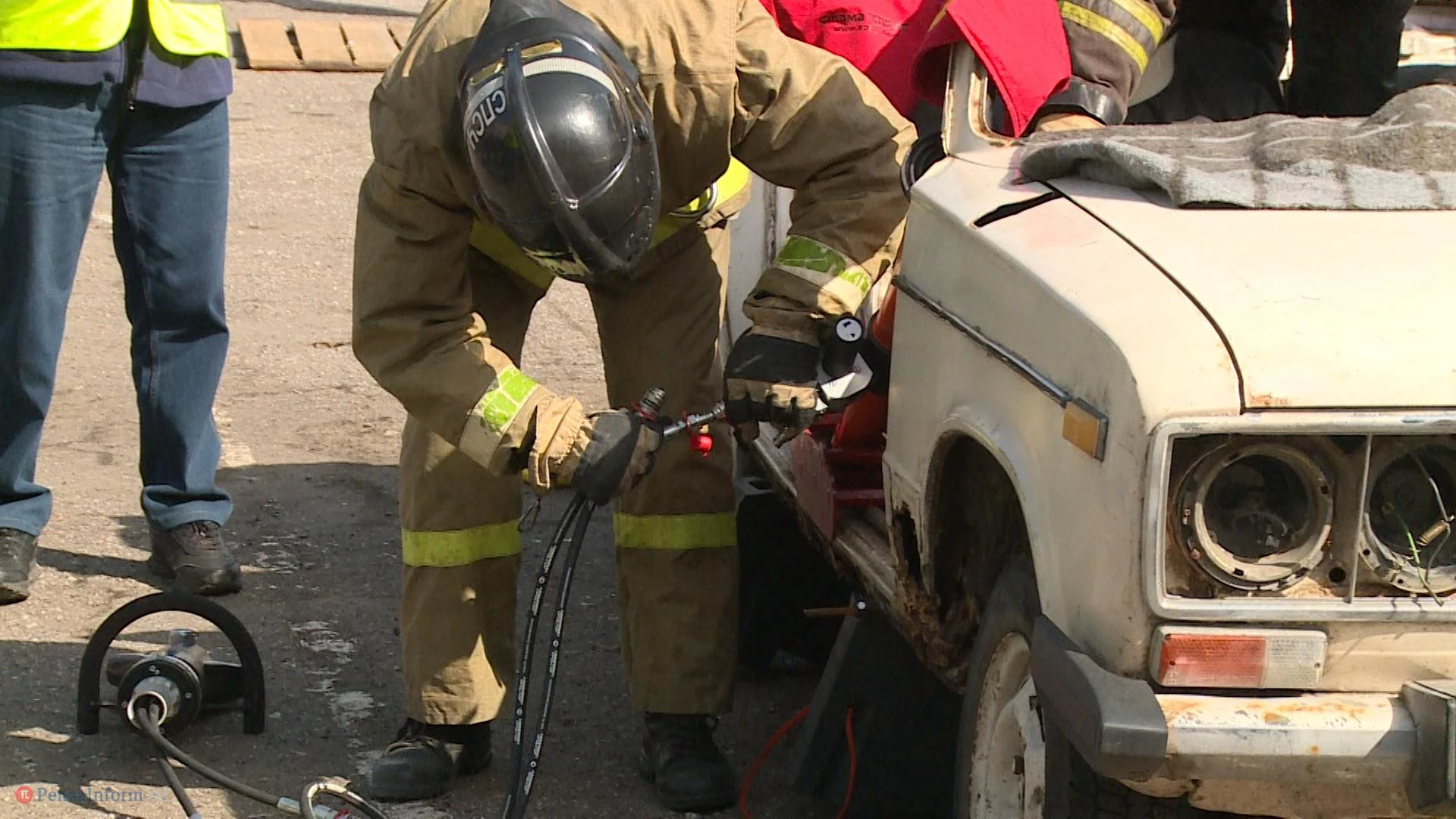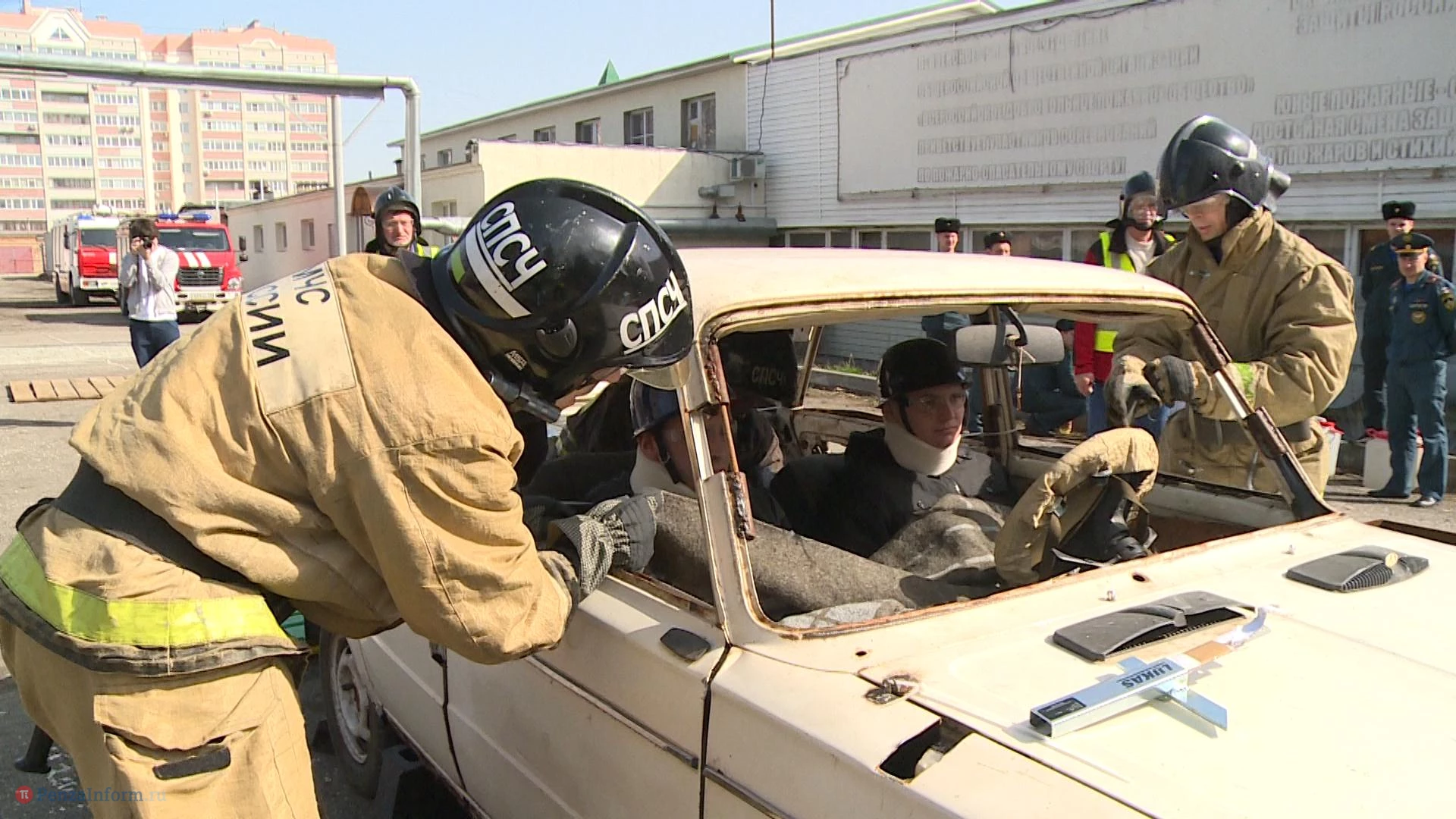 В Пензе прошел 1-й этап соревнований на звание лучшей команды главного управления МЧС России по области в ликвидации последствий ДТП на автомобильном транспорте. В качестве машины, из которой нужно было вызволять пострадавших, выбрали классику - ВАЗ-2106. Роль жертв сыграли двое студентов, пришедших посмотреть на зрелищные состязания.