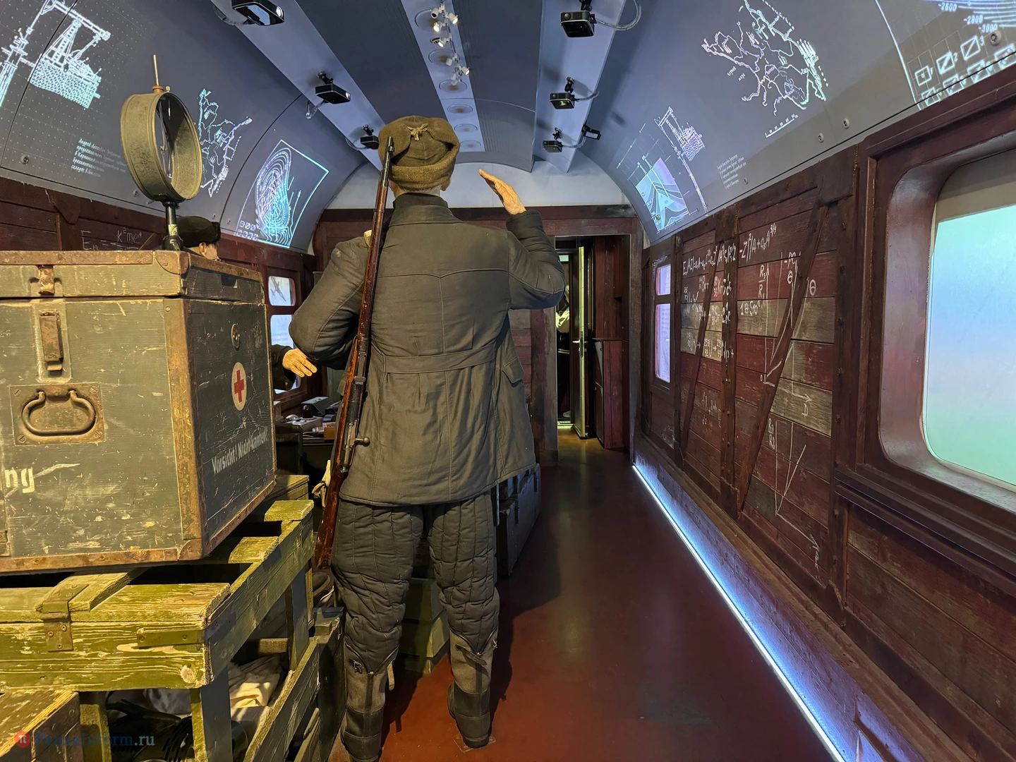 Здесь есть экскурс в историю банно-прачечных поездов, отображение одной из самых трагических страниц истории войны - блокады Ленинграда, военный штаб, бронепоезд и многое другое. А потом - весна 1945 года, когда выжившие люди, прошедшие страшное испытание, возвращаются домой.