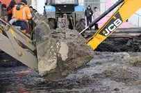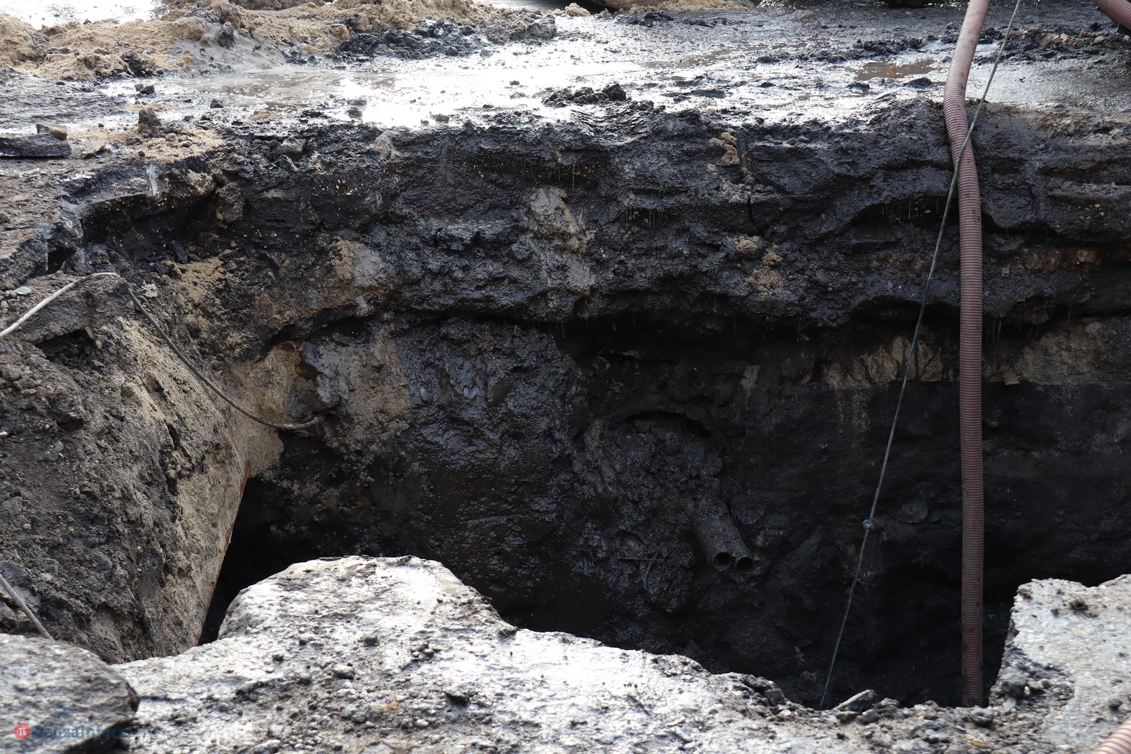 Коммунальная авария случилась вечером в воскресенье, 8 декабря, на перекрестке рядом с ТЦ «САНиМАРТ». Как объяснили ресурсники, из-за движения грунта в связи с морозом повредилась чугунная труба диаметром 600 мм.